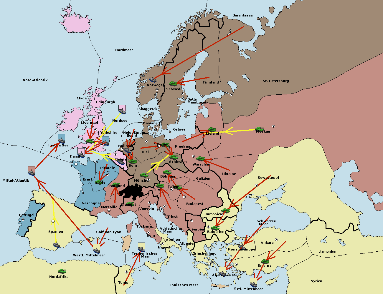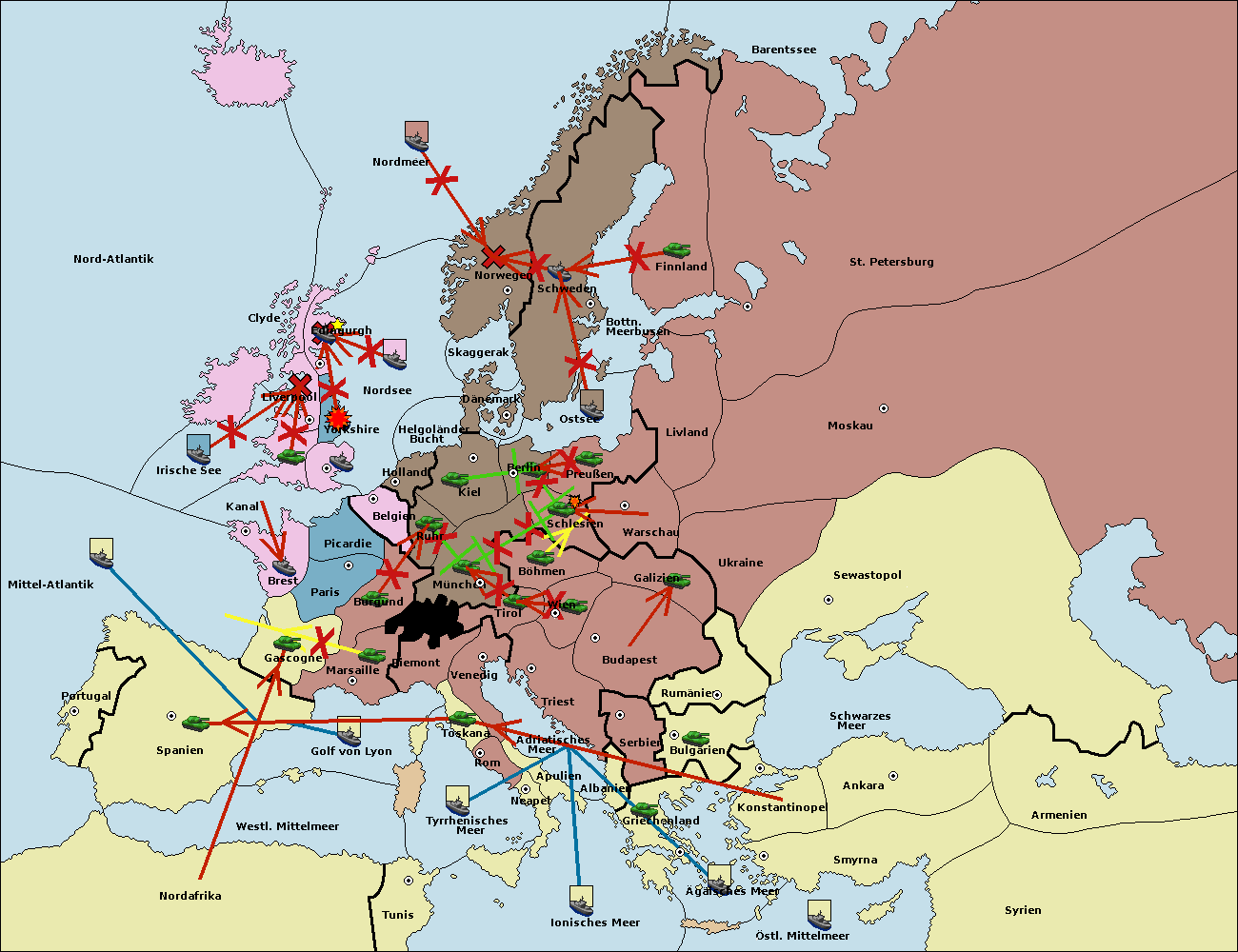 • Die Flotte in London move nach Nordsee. (gescheitert)