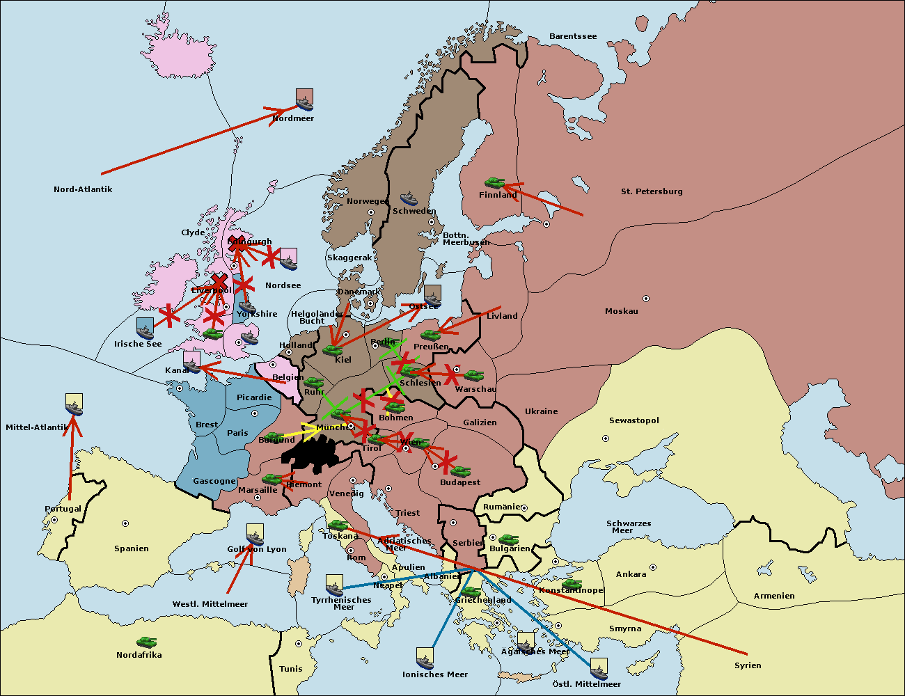 • Die Armee in München move nach Kiel. (gescheitert) (verdrängt)