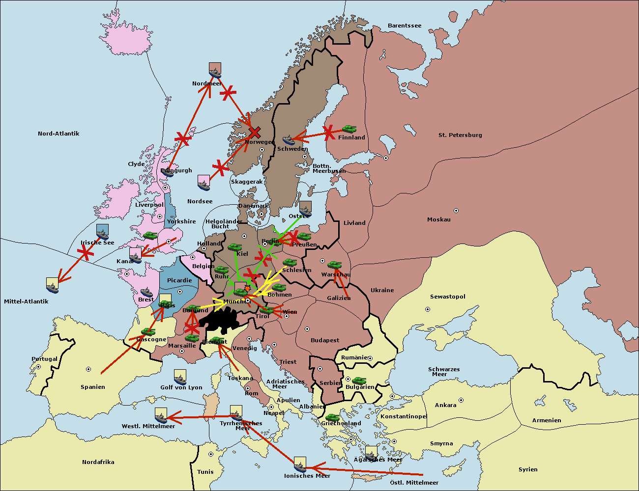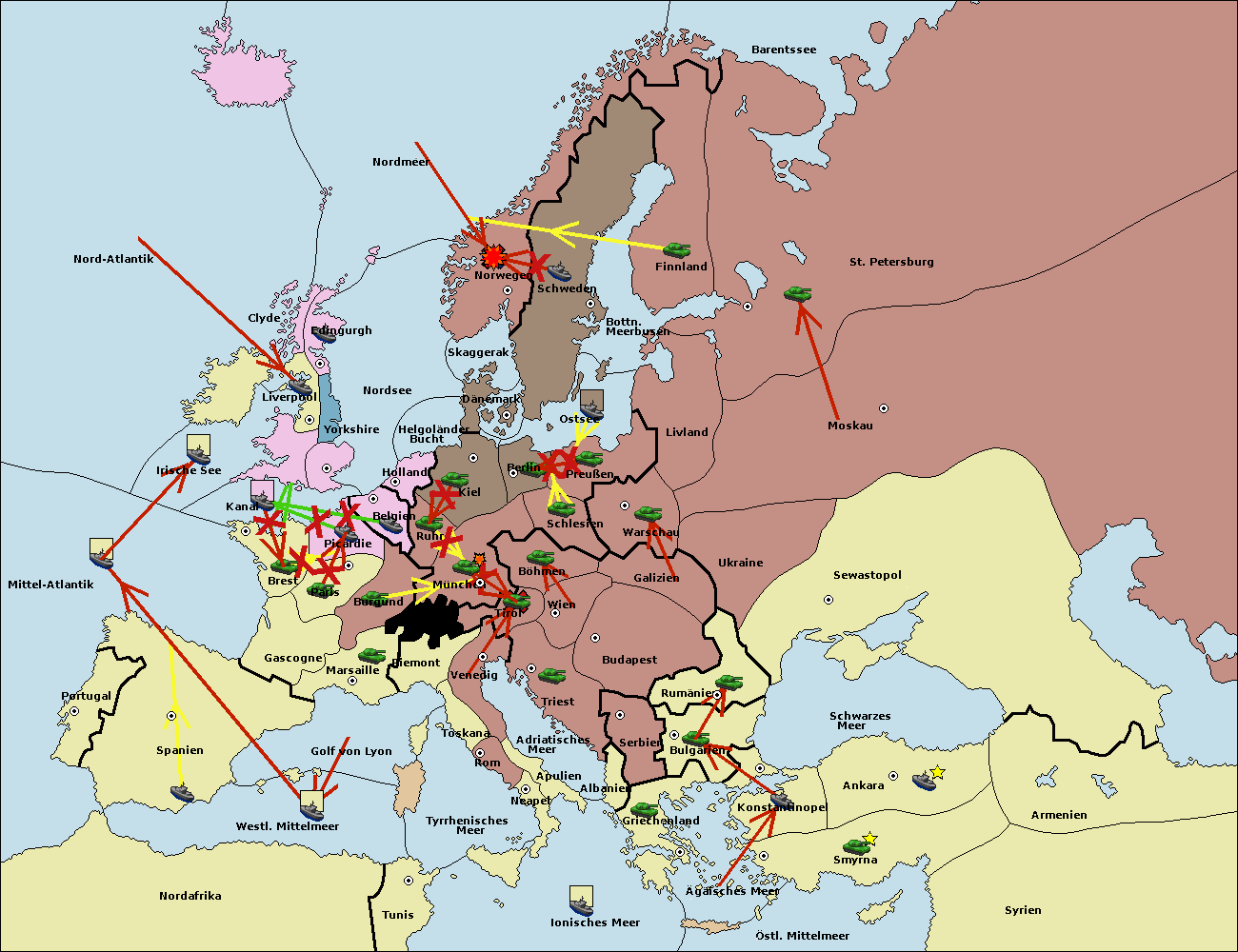 • Die Flotte in Norwegen support hold nach Schweden. (gescheitert)