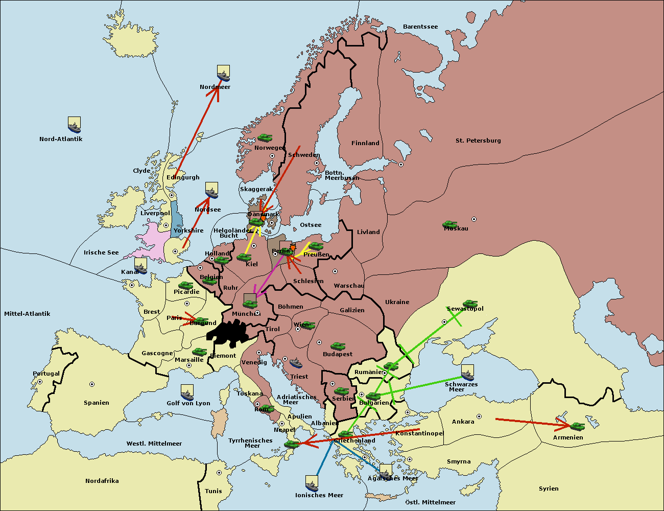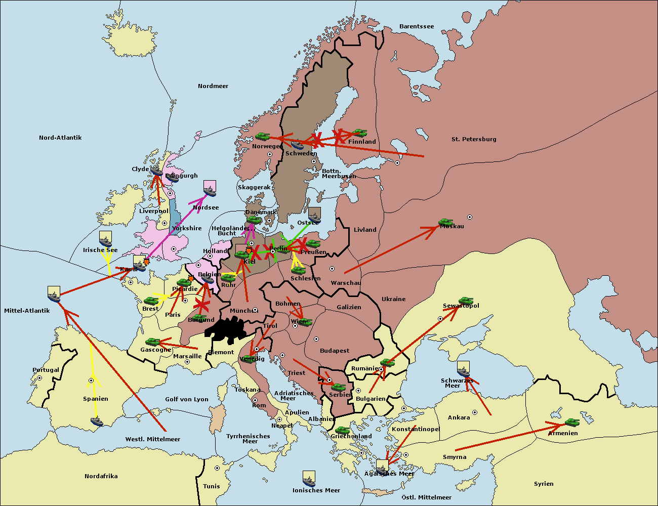 • Die Armee in Kiel support move nach Berlin von Schlesien. (gescheitert)