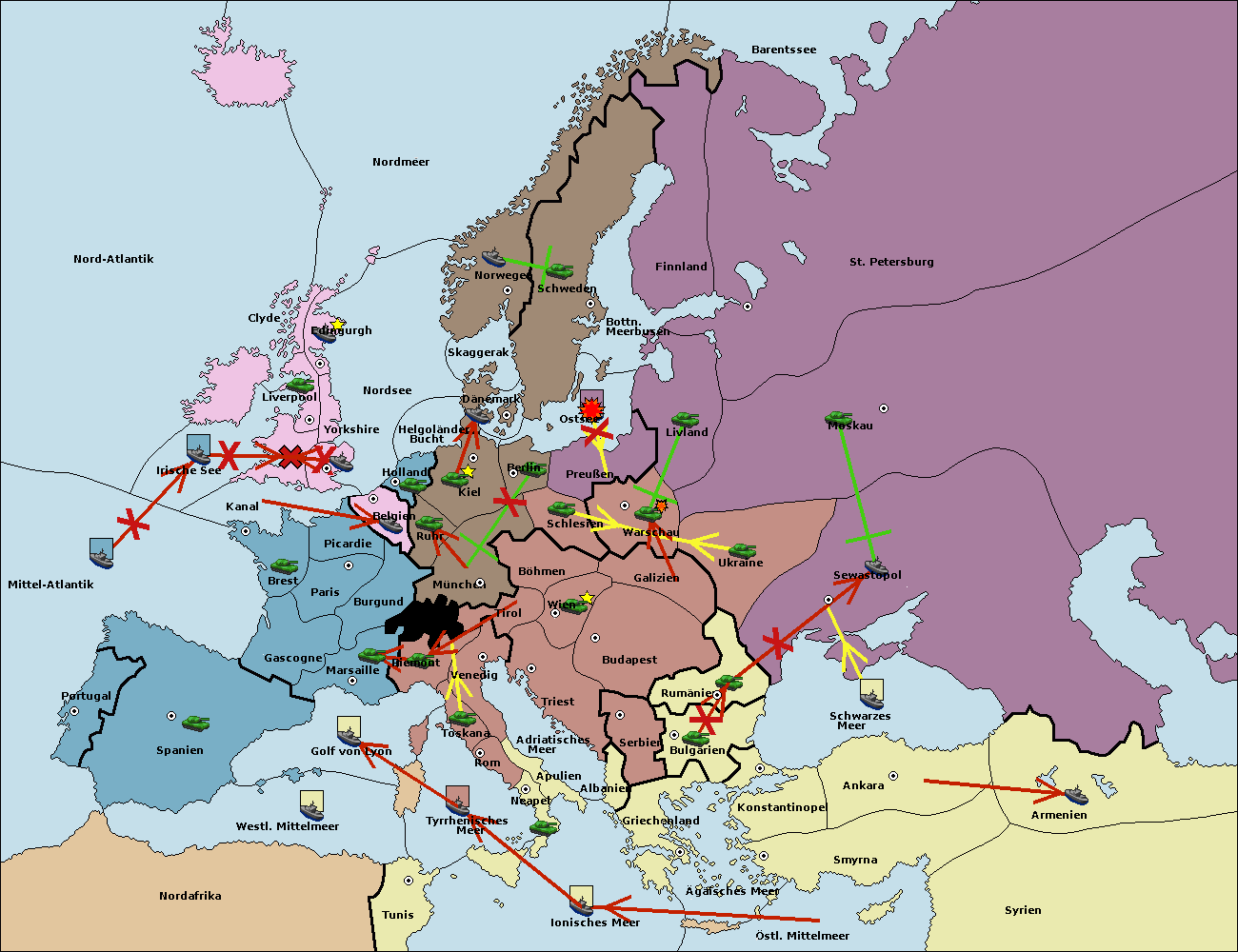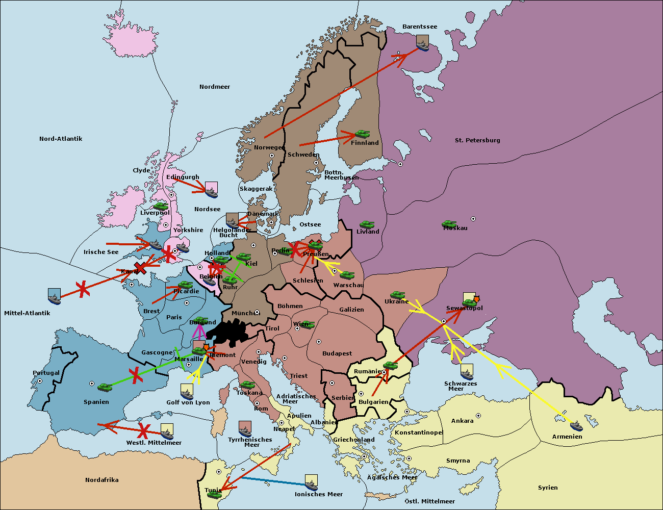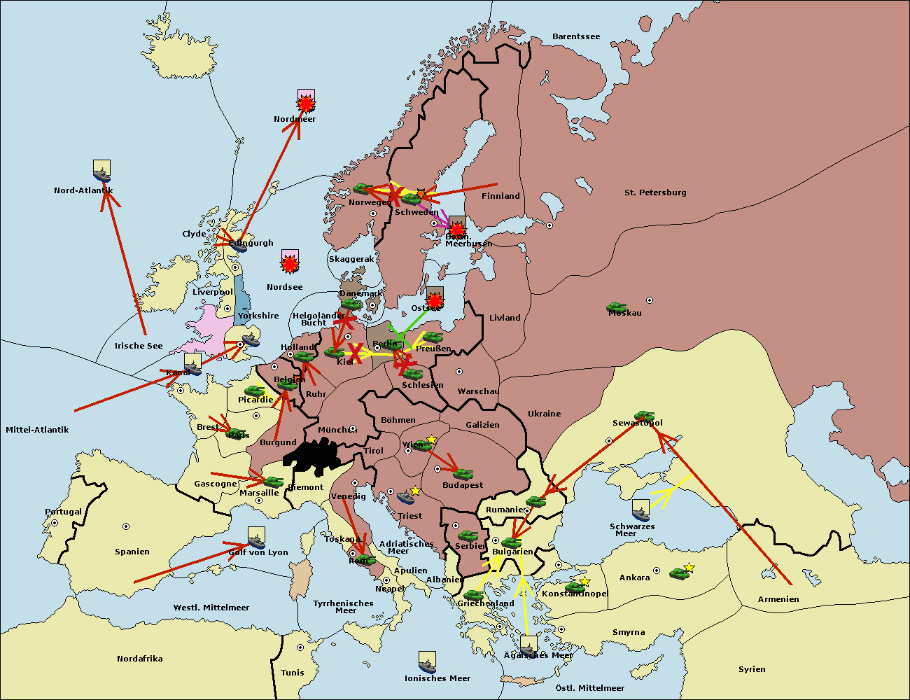 • Die Flotte in Ostsee support hold nach Preußen. (gescheitert)