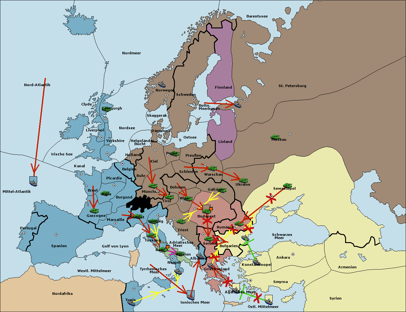 • Die Armee in Budapest support move nach Serbien von Triest. (gescheitert)