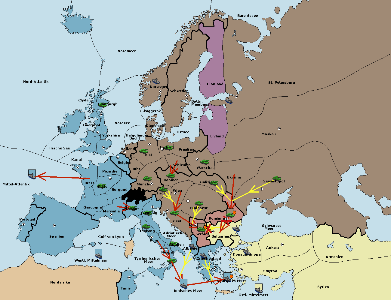 • Die Flotte in Rumänien support move nach Bulgarien von Serbien. (gescheitert)