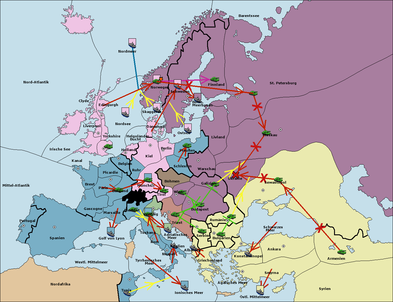 • Die Armee in St. Petersburg move nach Norwegen. (gescheitert)