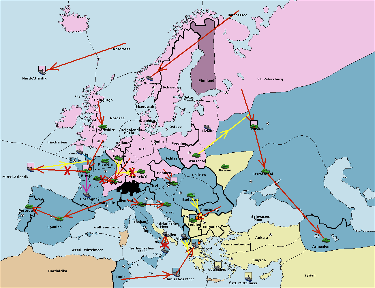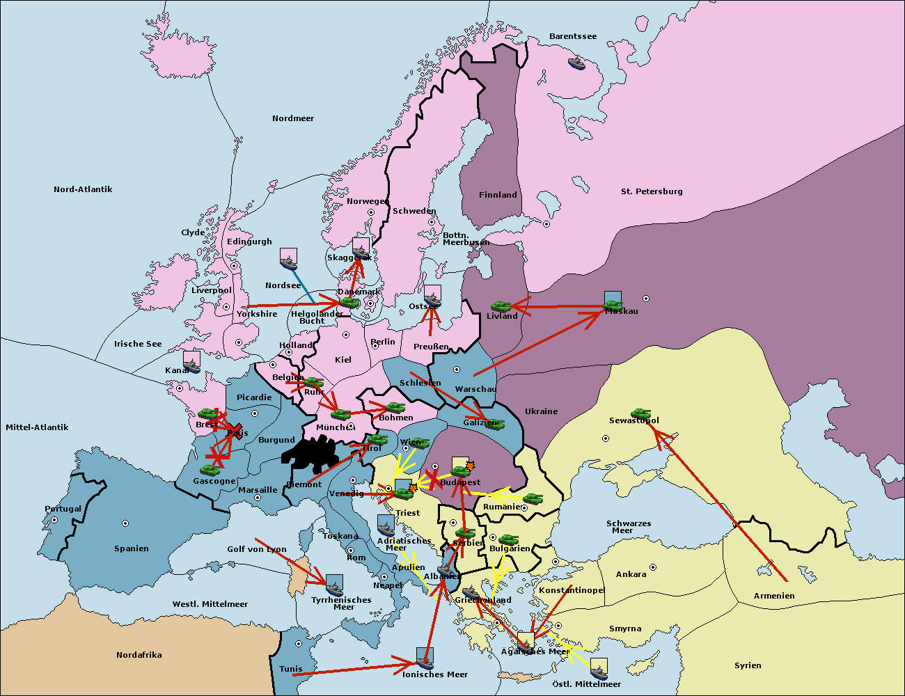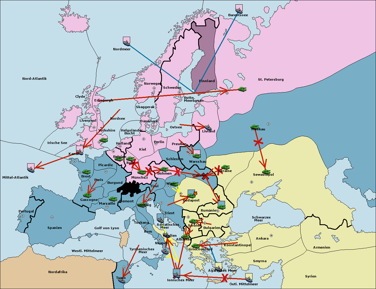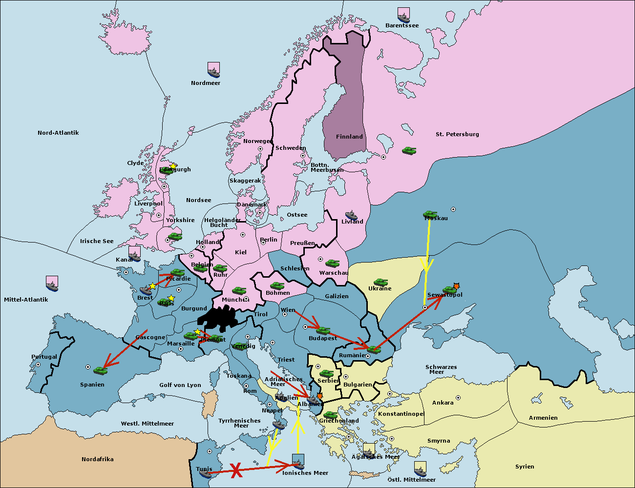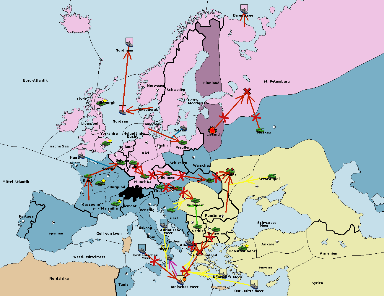 • Die Flotte in Bulgarien (Südküste) move nach Konstantinopel. (gescheitert)