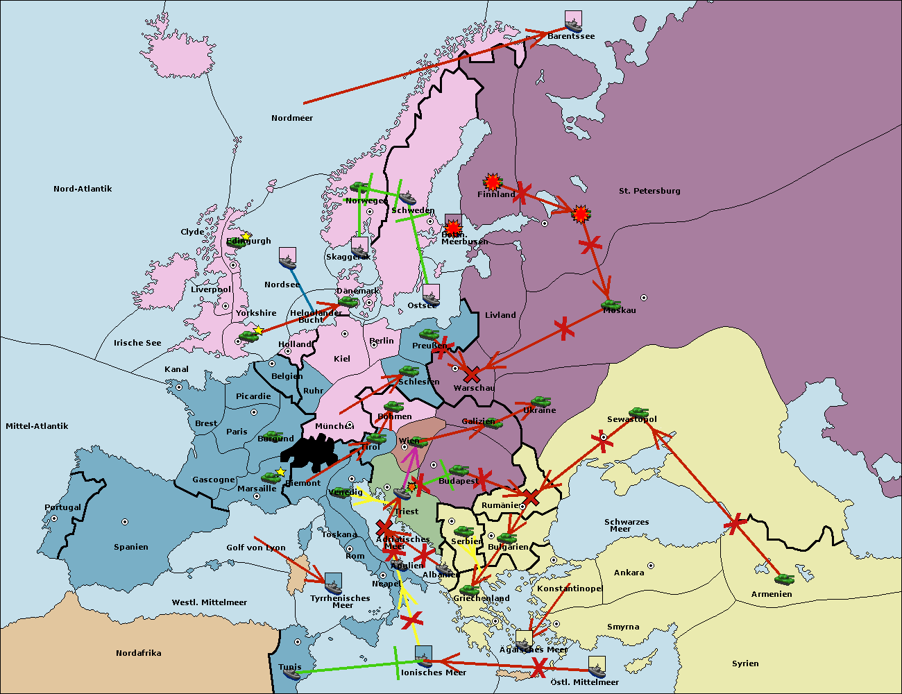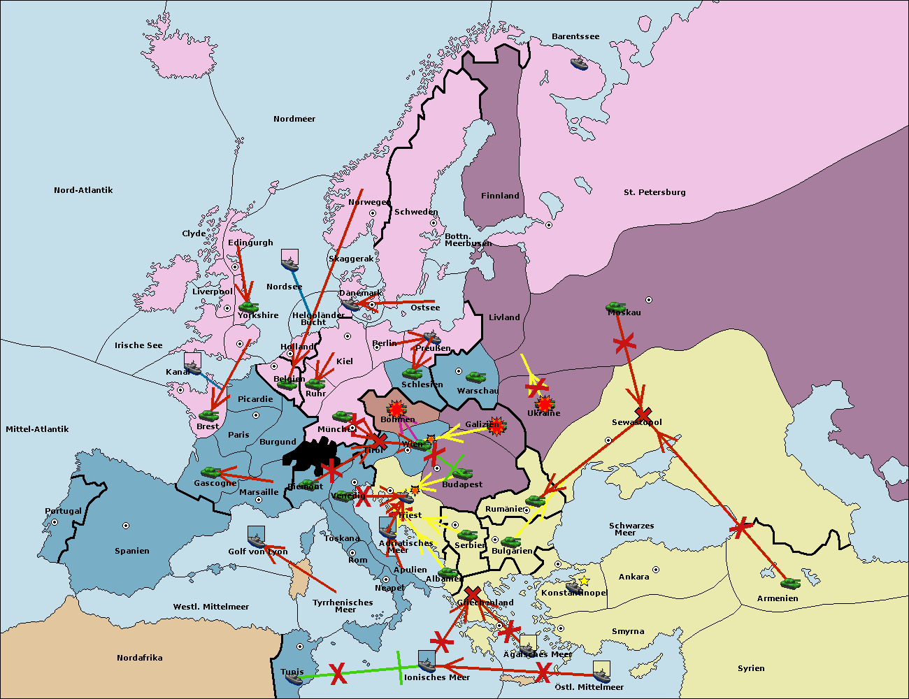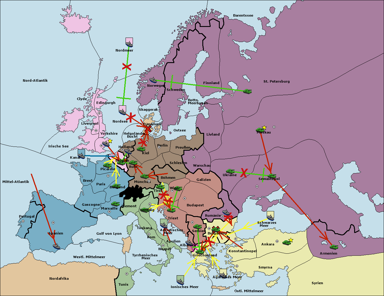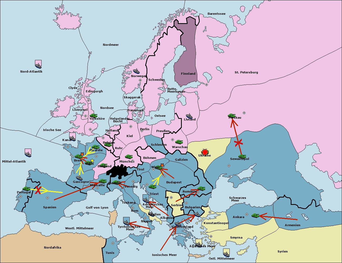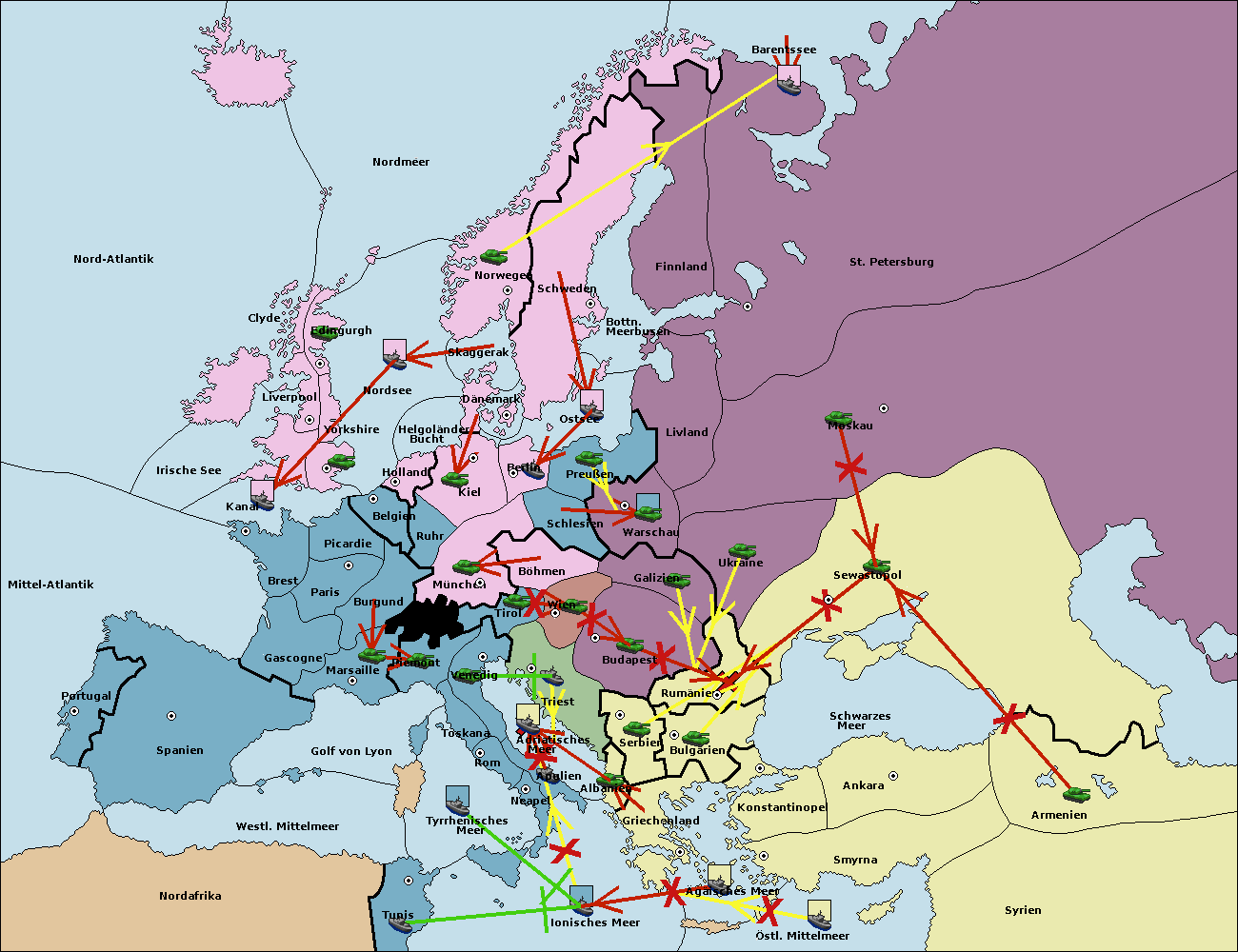 • Die Flotte in Bulgarien (Südküste) move nach Konstantinopel. (gescheitert)