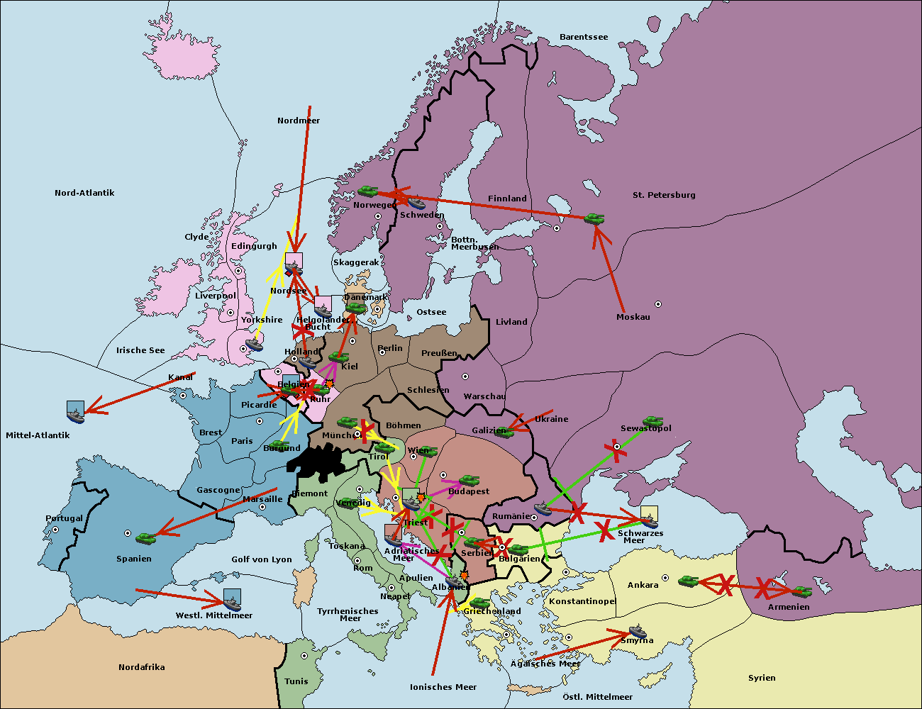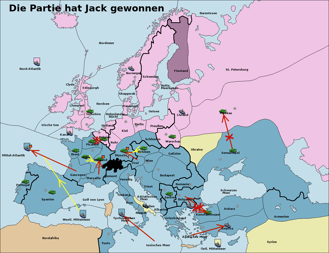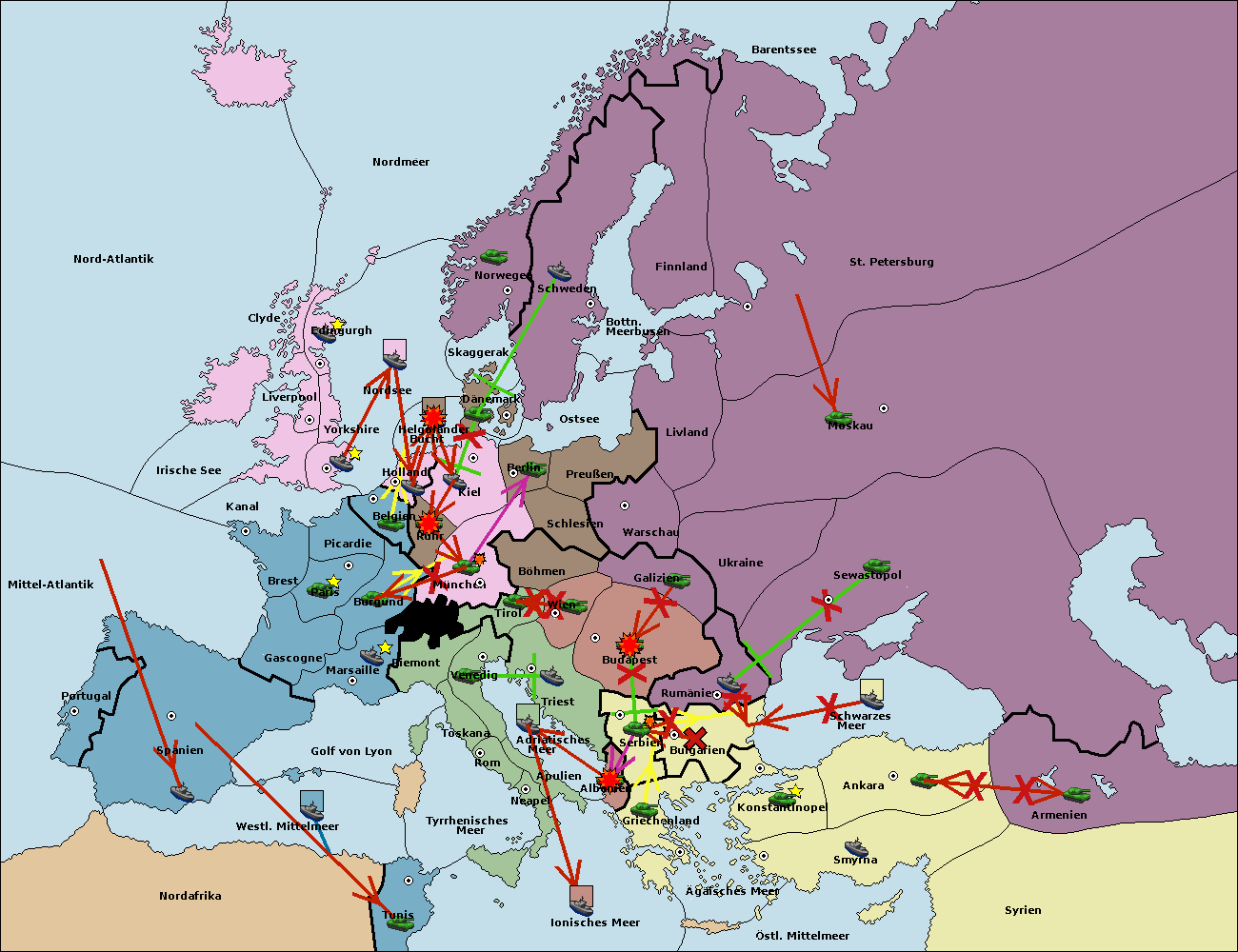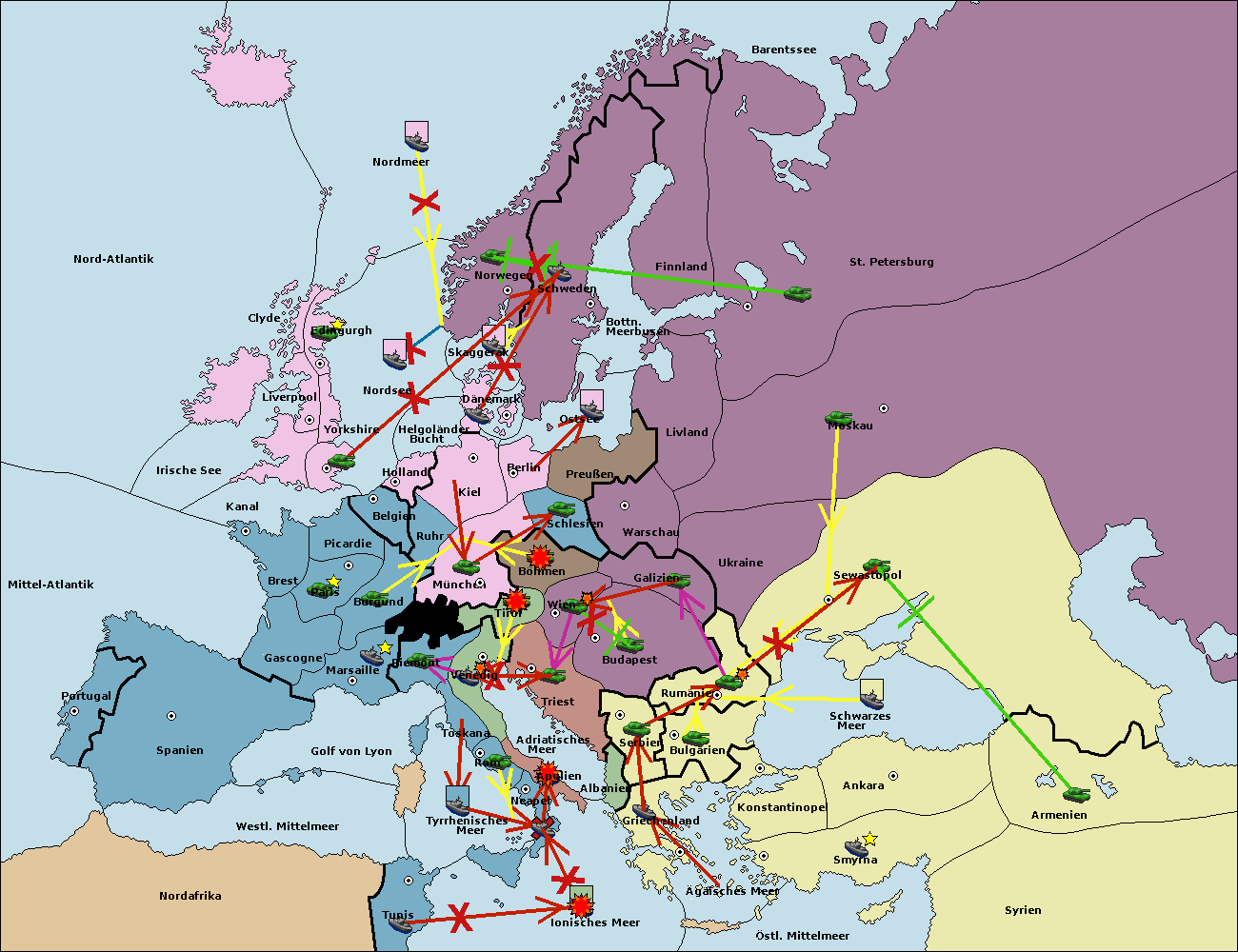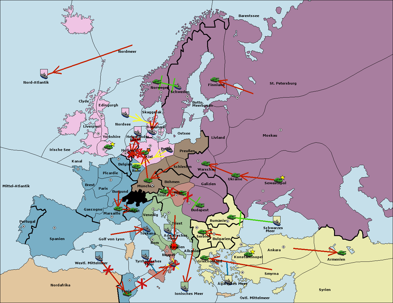 • Die Flotte in Bulgarien (Südküste) move nach Konstantinopel. (gescheitert)