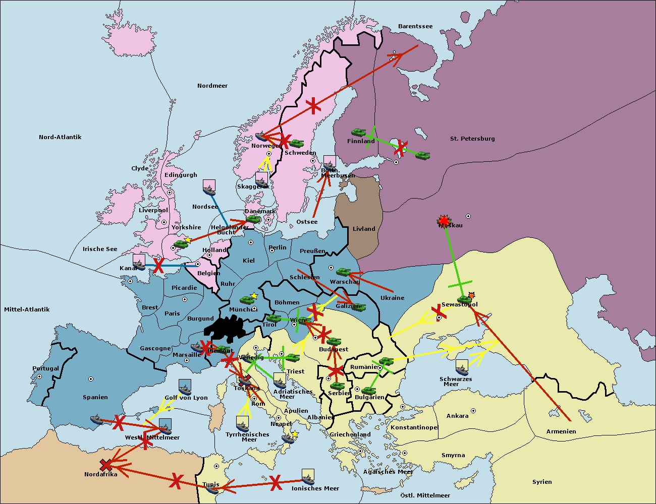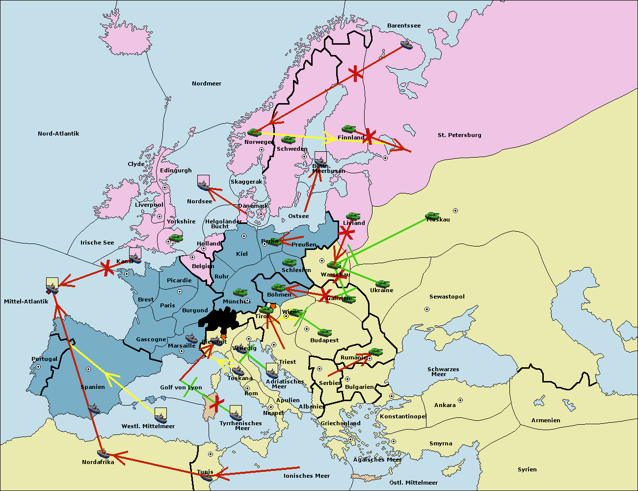 • Die Flotte in St. Petersburg (Nordküste) move nach Norwegen. (gescheitert)