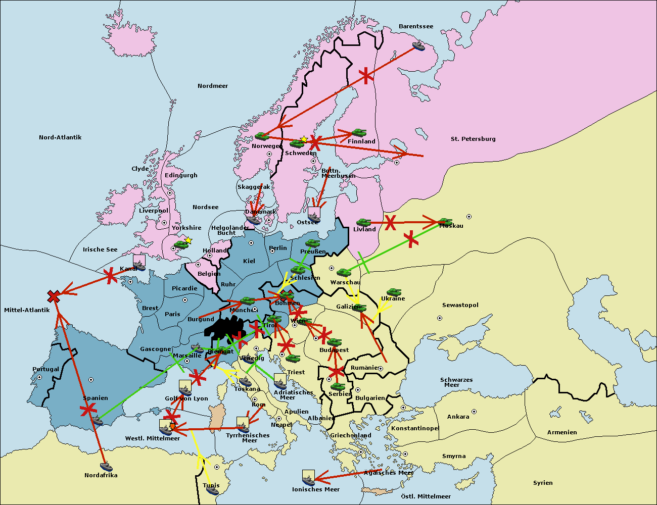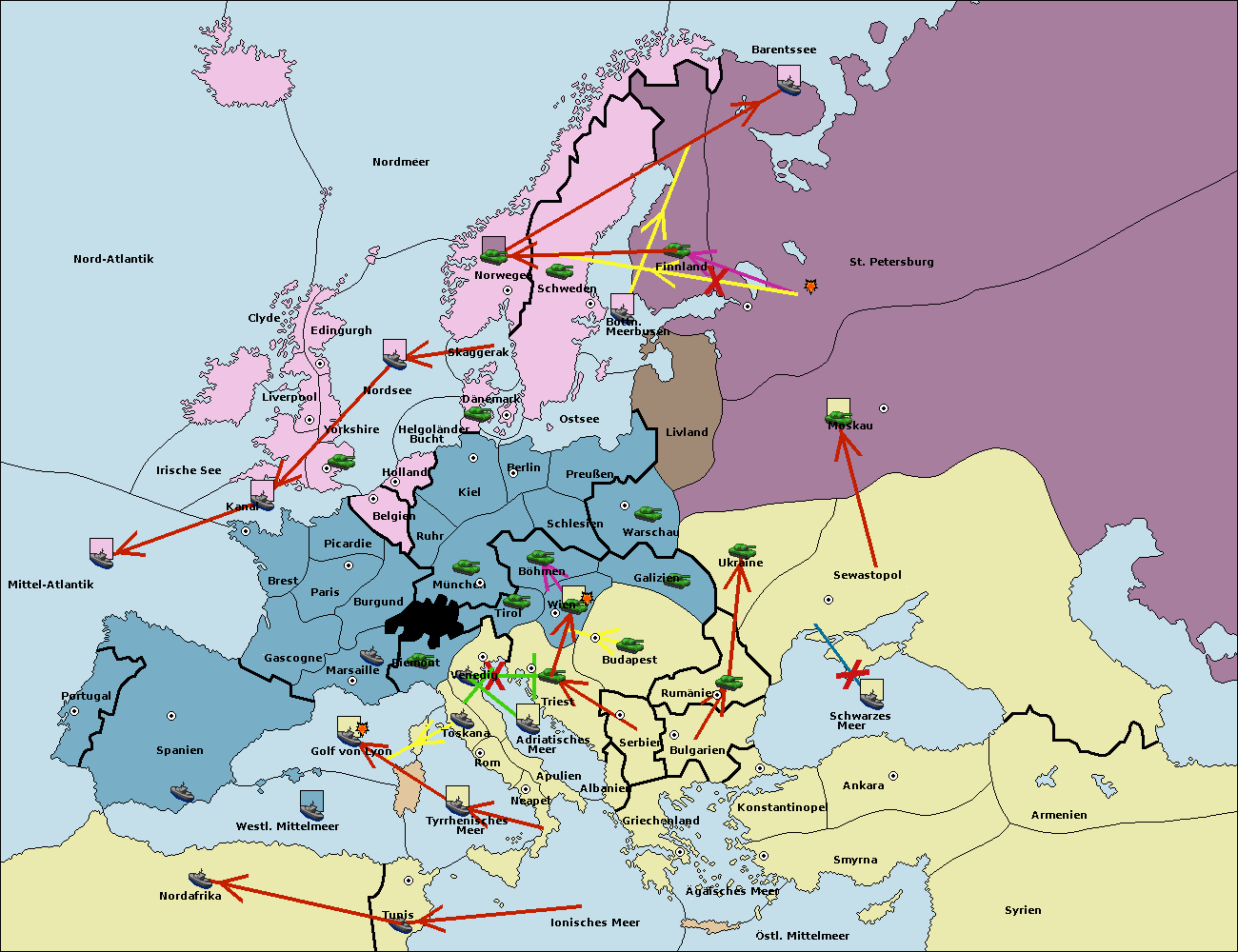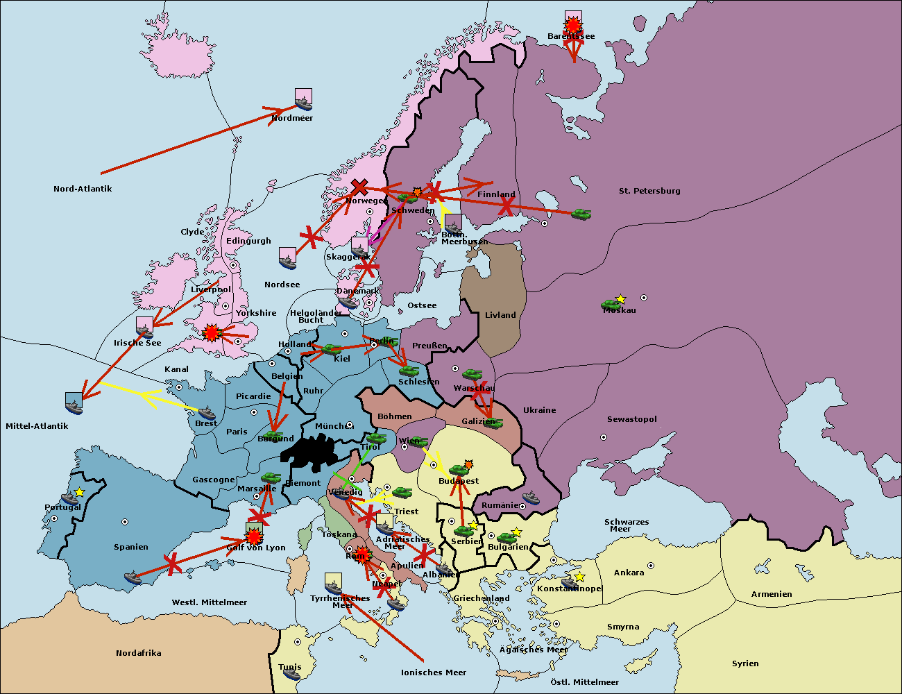 • Die Flotte in St. Petersburg (Nordküste) move nach Barentssee.