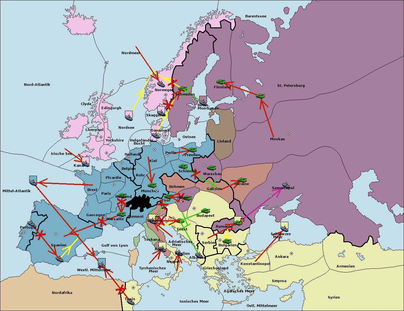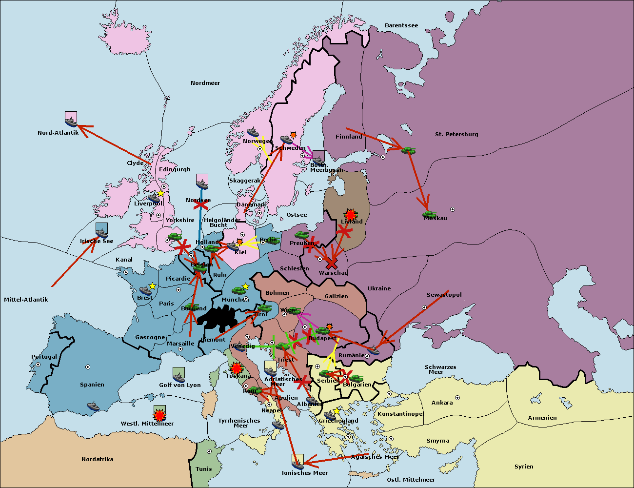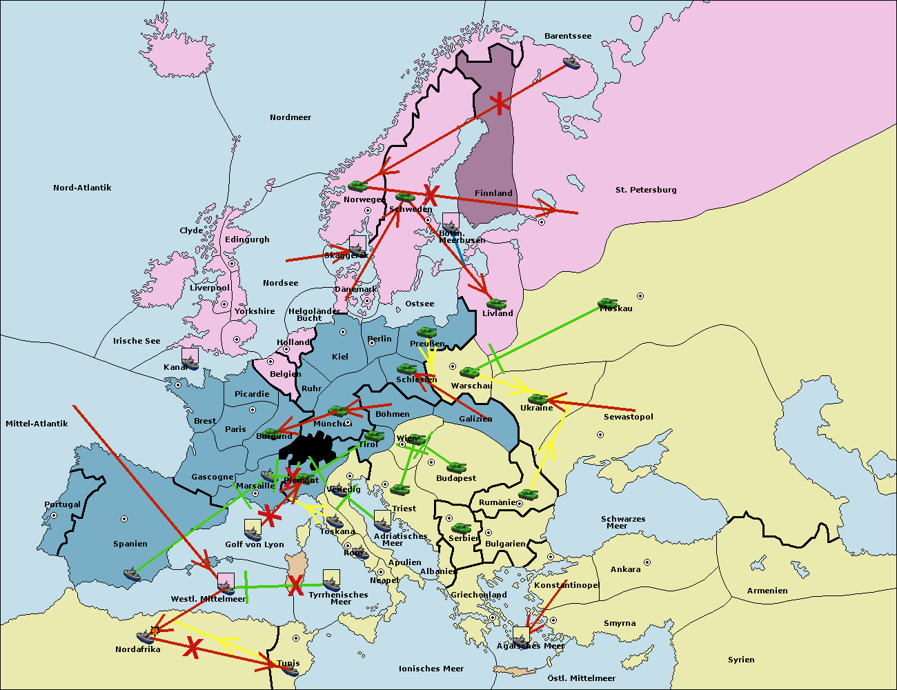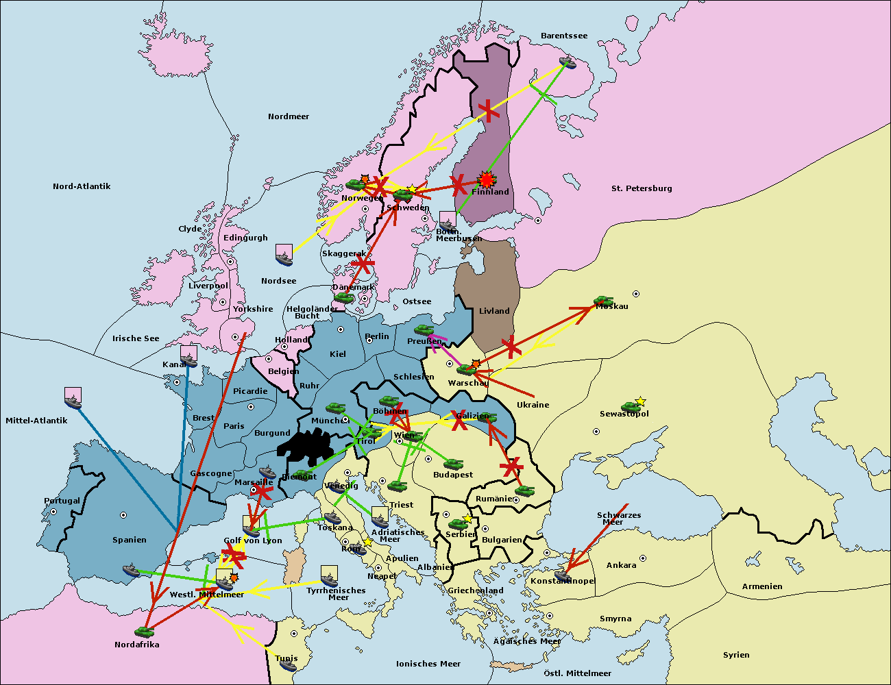 • Die Flotte in St. Petersburg (Nordküste) move nach Barentssee.