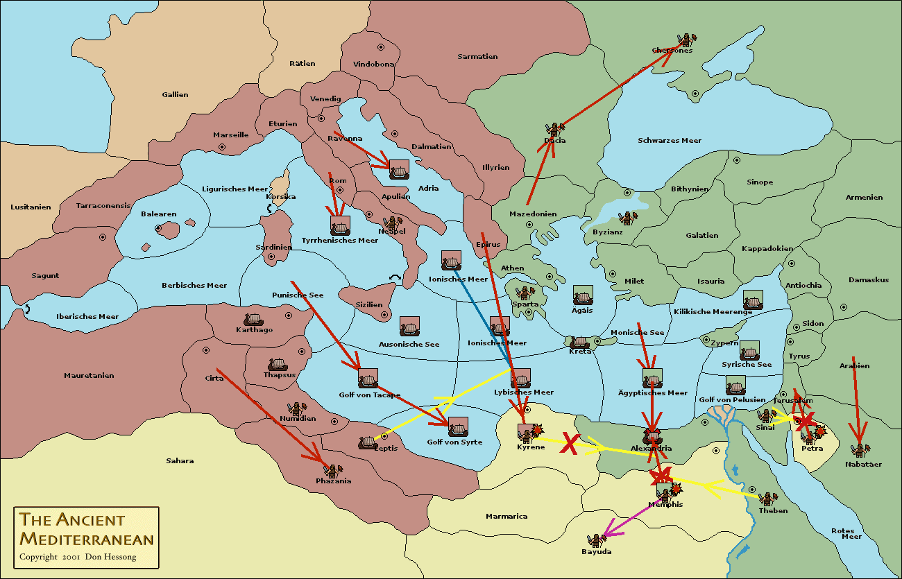 • Die Armee in Alexandria move nach Kyrene.