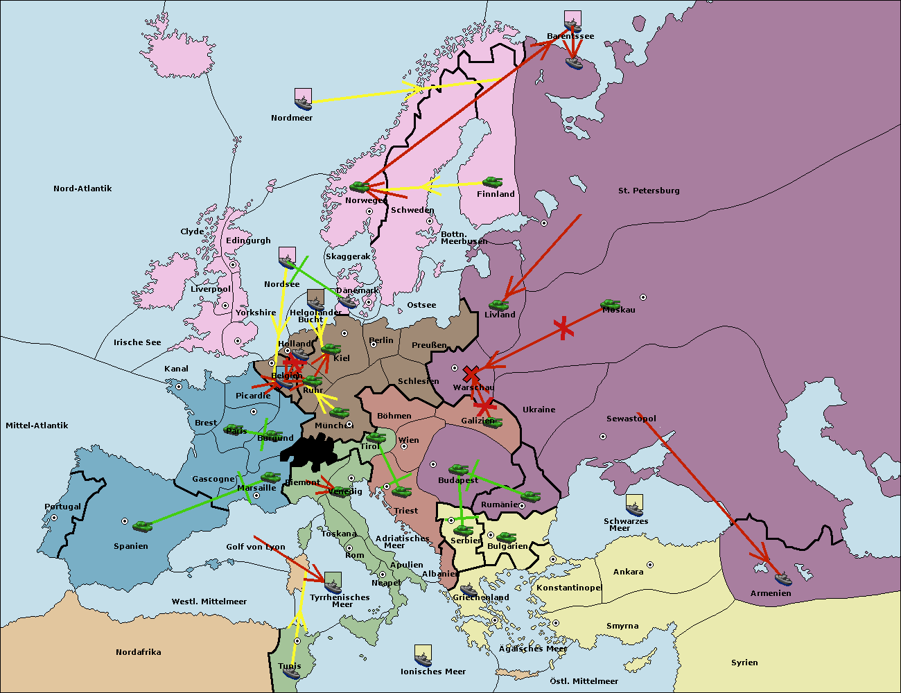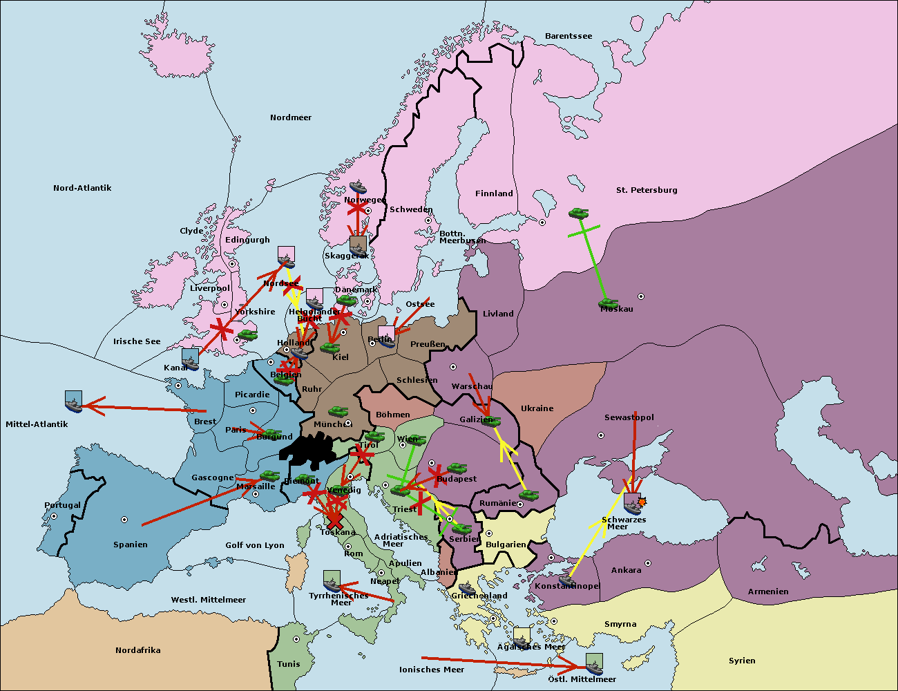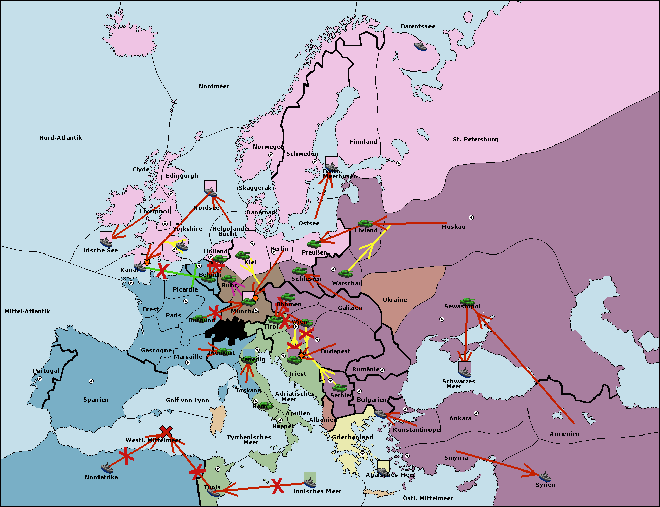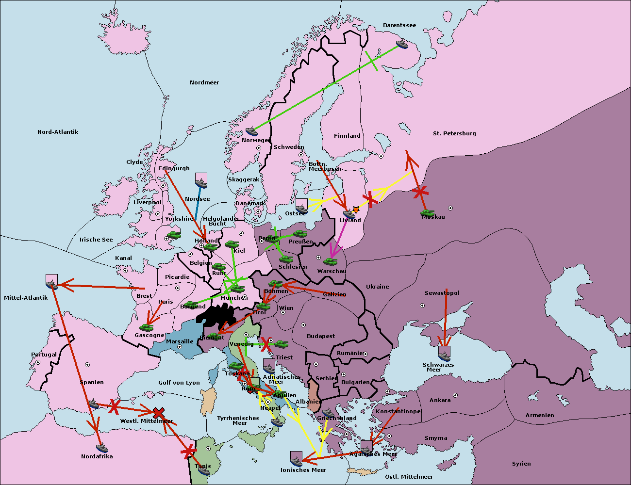 • Die Flotte in Nord Afrika support move nach Tunis von westl. Mittelmeer.