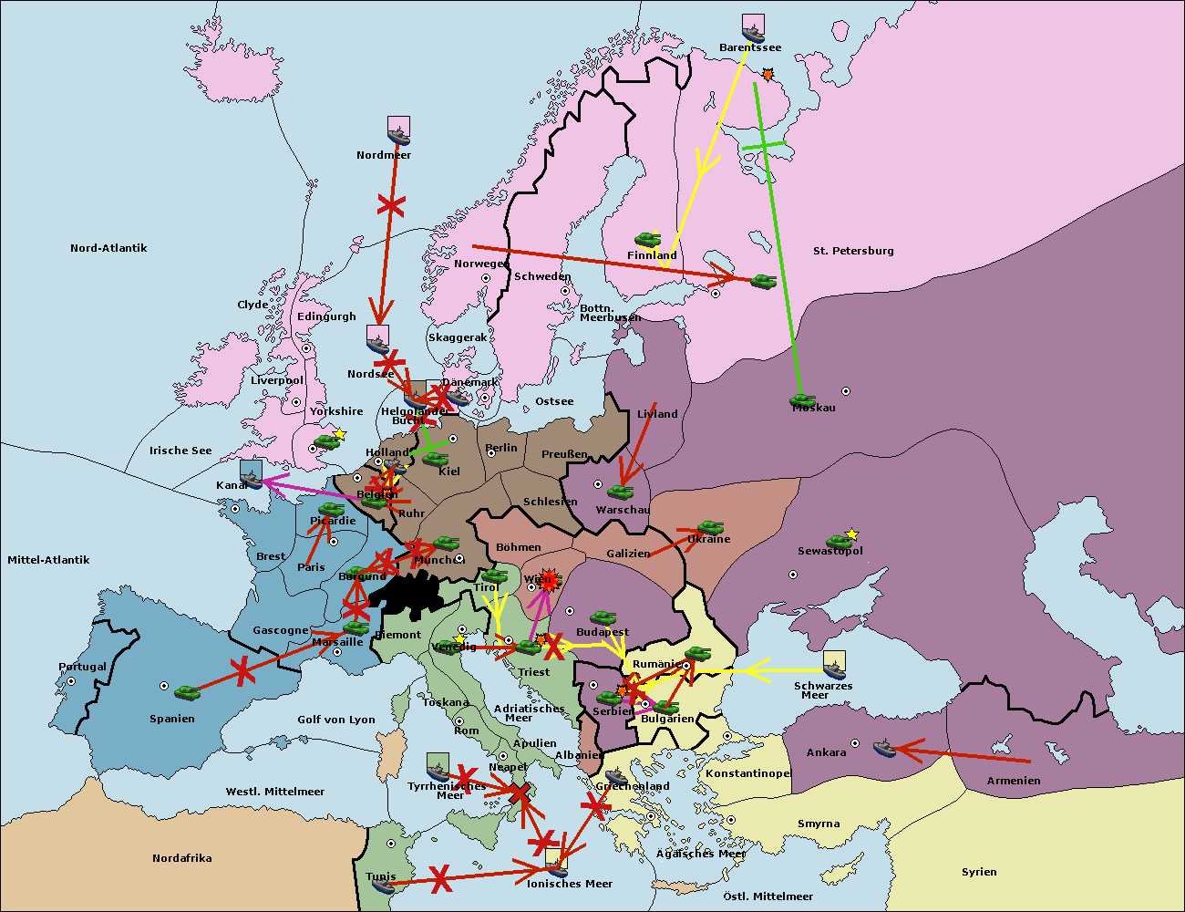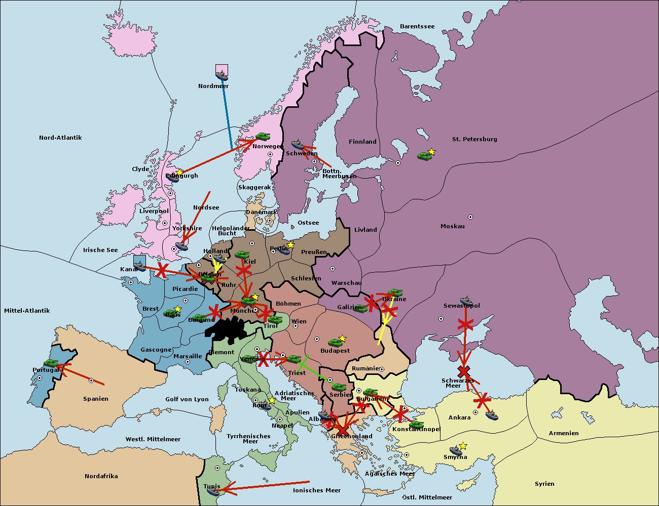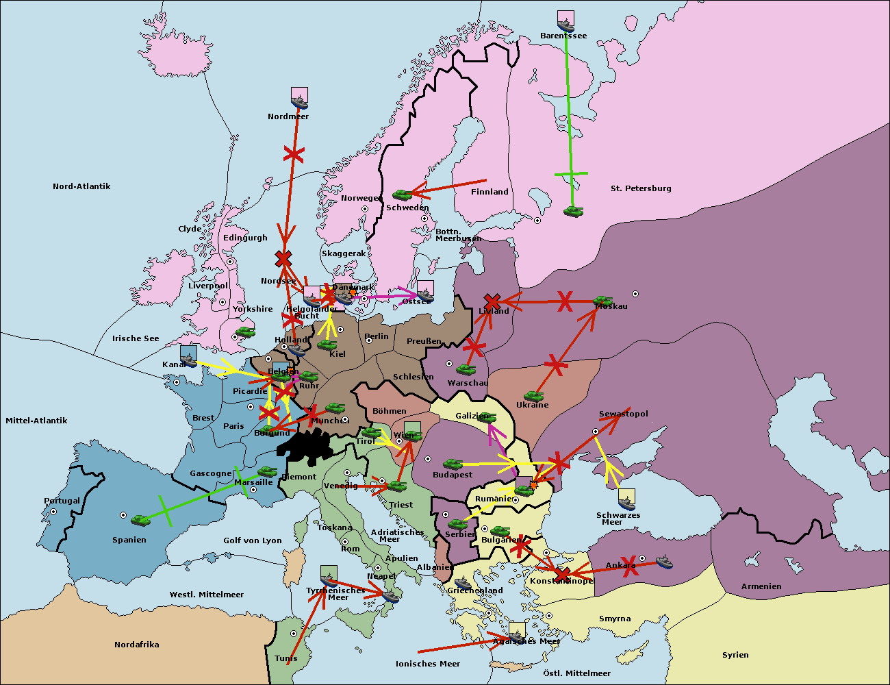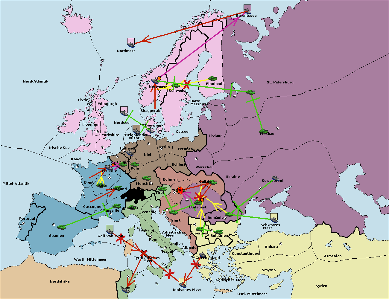 • Die Flotte in Nord Afrika support move nach Tunis von westl. Mittelmeer.