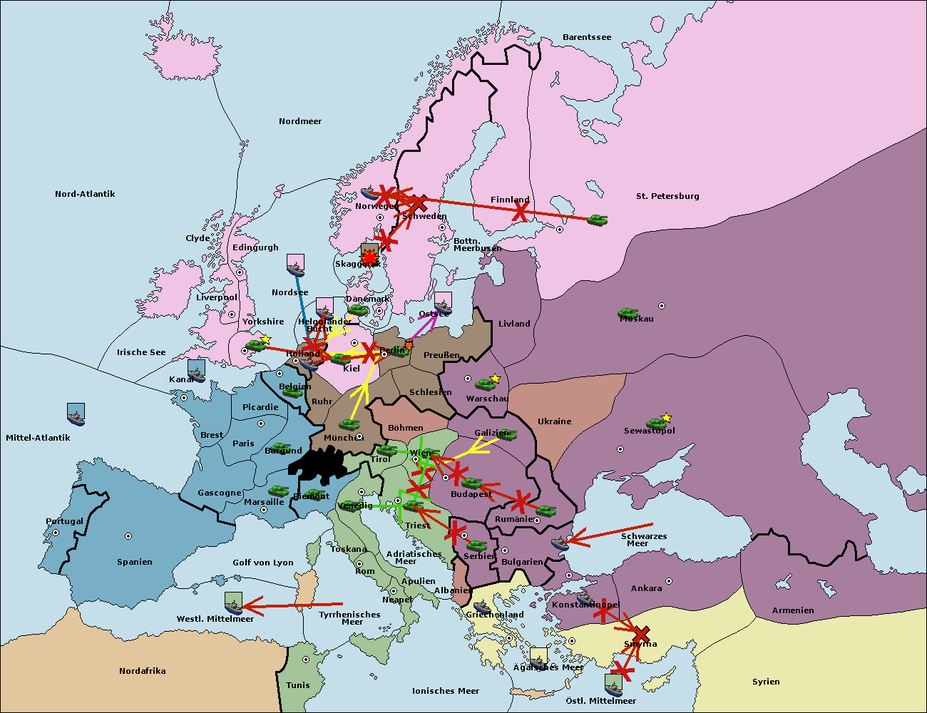 • Die Flotte in Ägäisches Meer support move nach Bulgarien von Konstantinopel. (gescheitert)