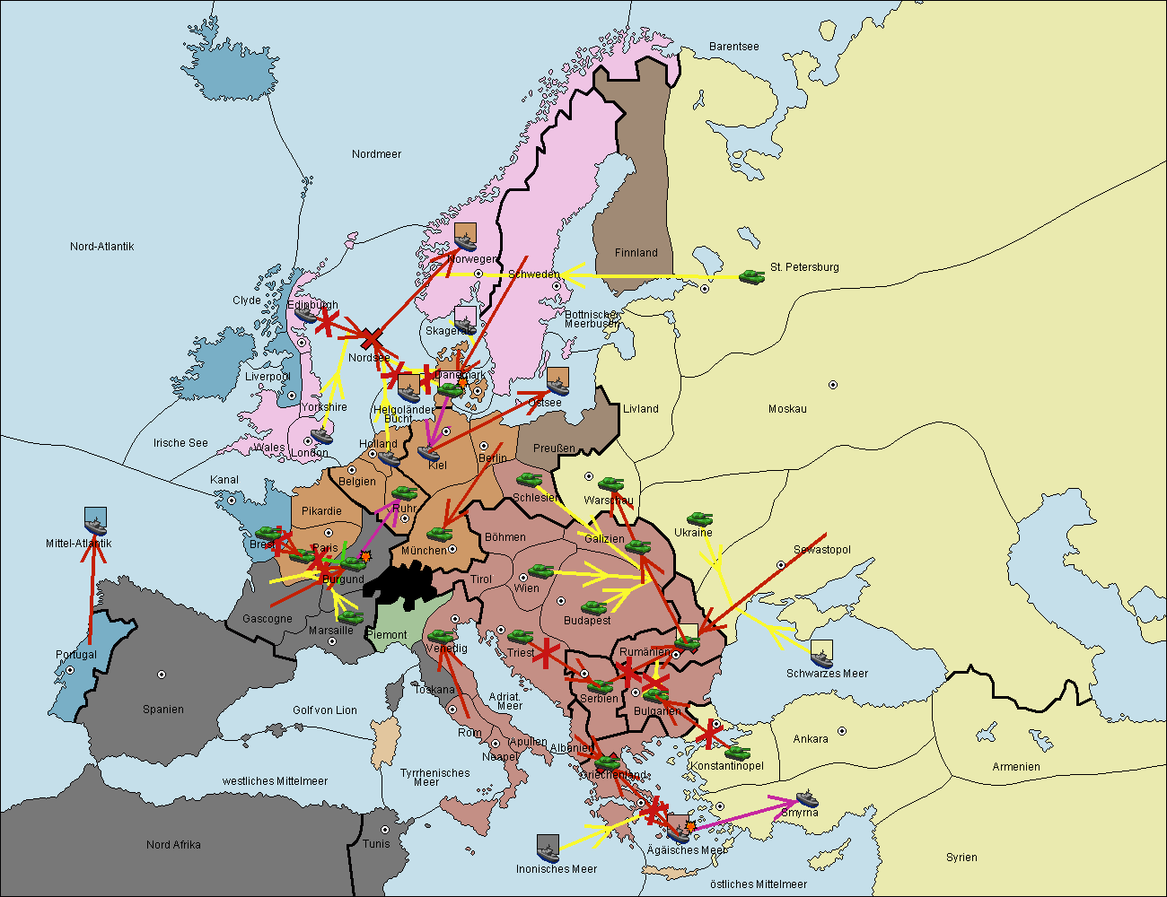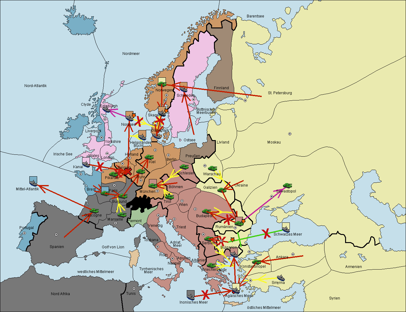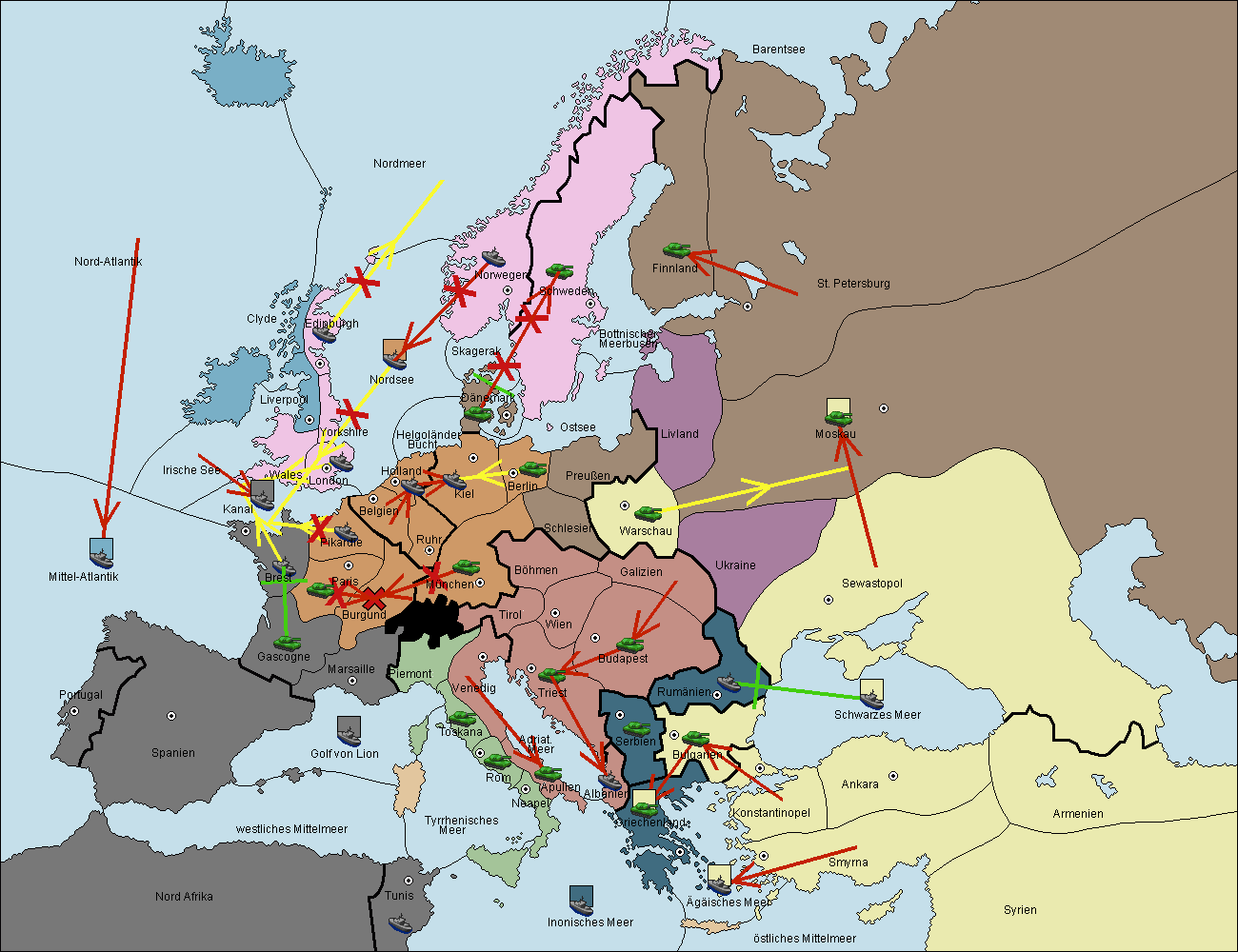 • Die Flotte in Ägäisches Meer support move nach Bulgarien von Griechenland. (gescheitert)