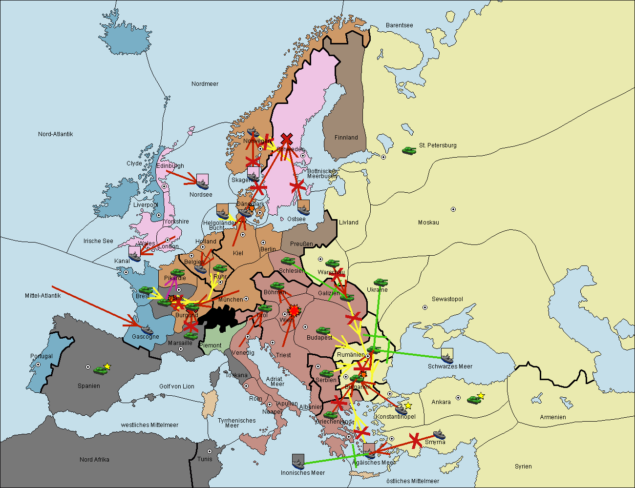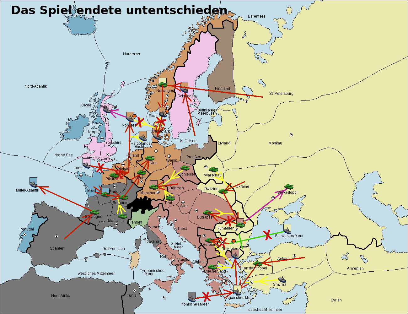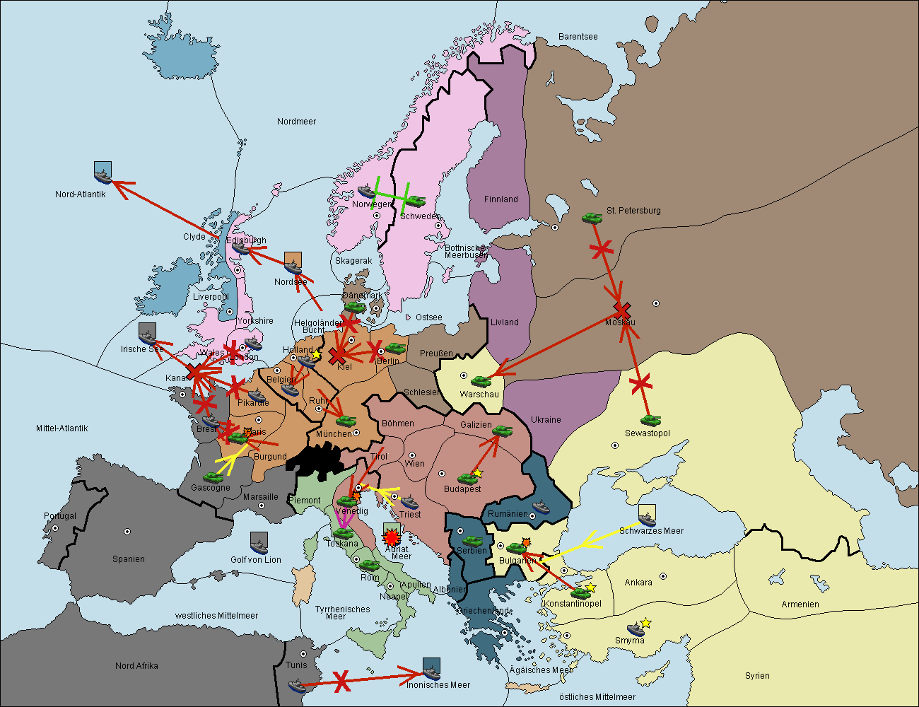 • Die Armee in Bulgarien wird zerstörtFlotte in Bulgarien gebaut.