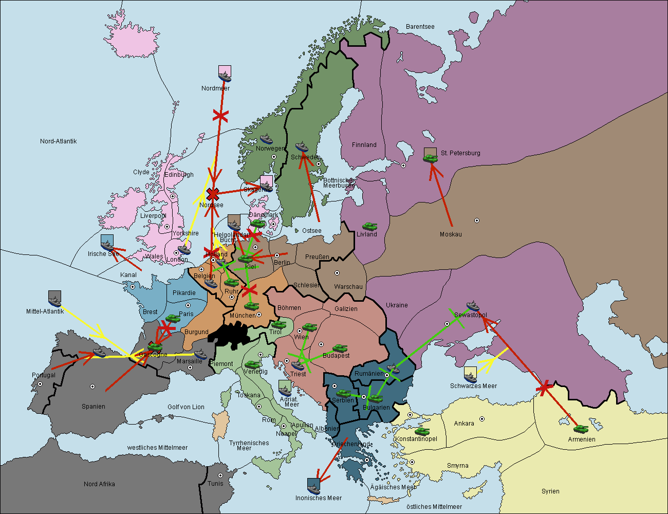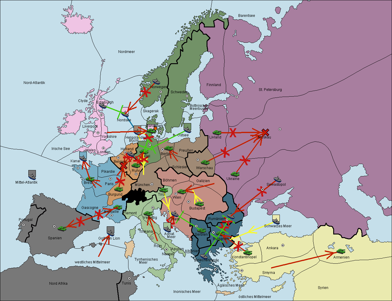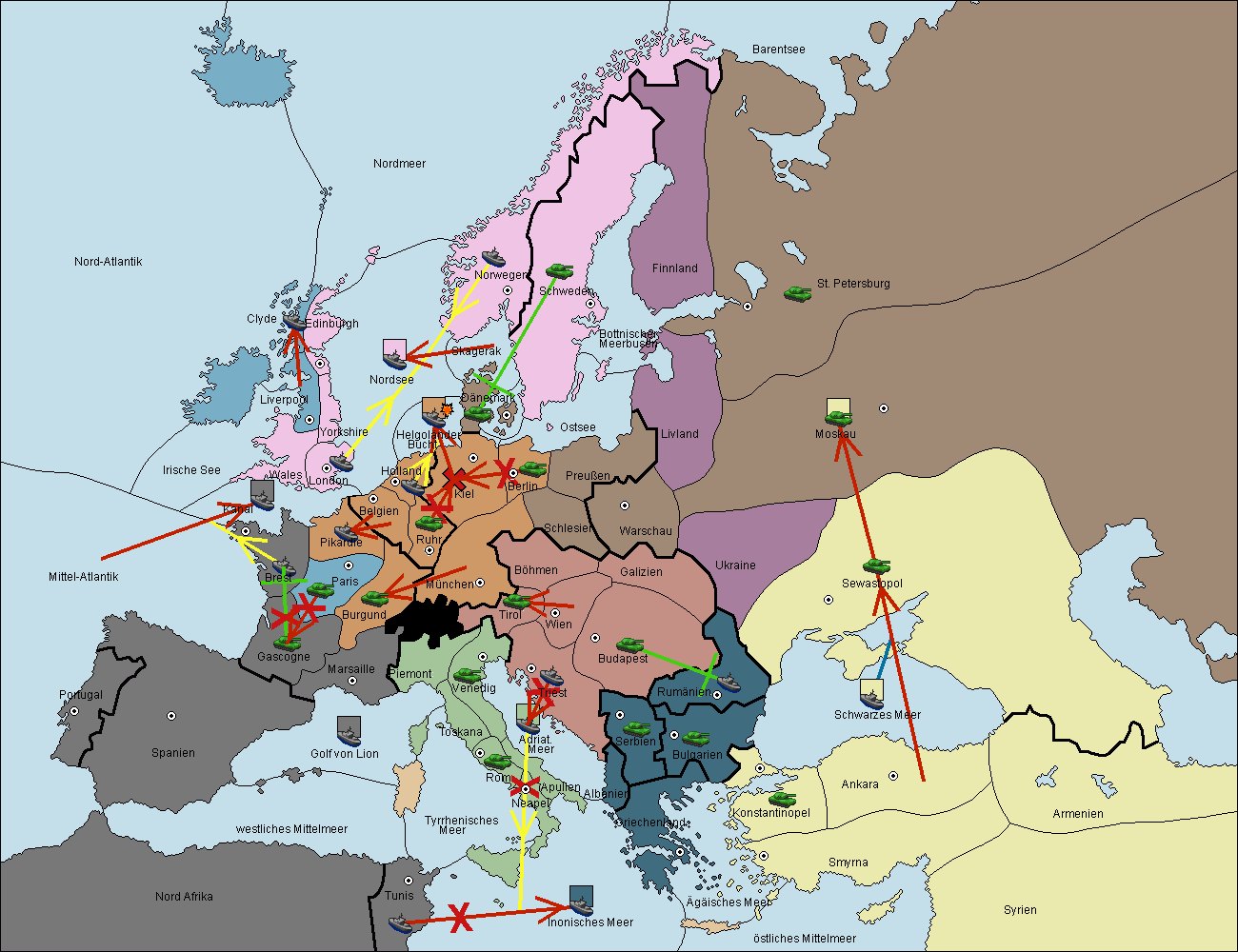 • Die Armee in Kiel wird zerstörtFlotte in Kiel gebaut.