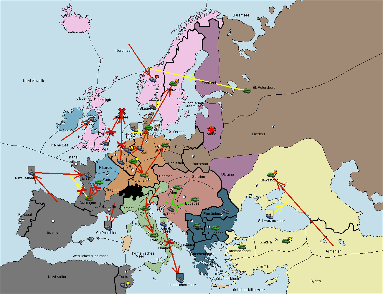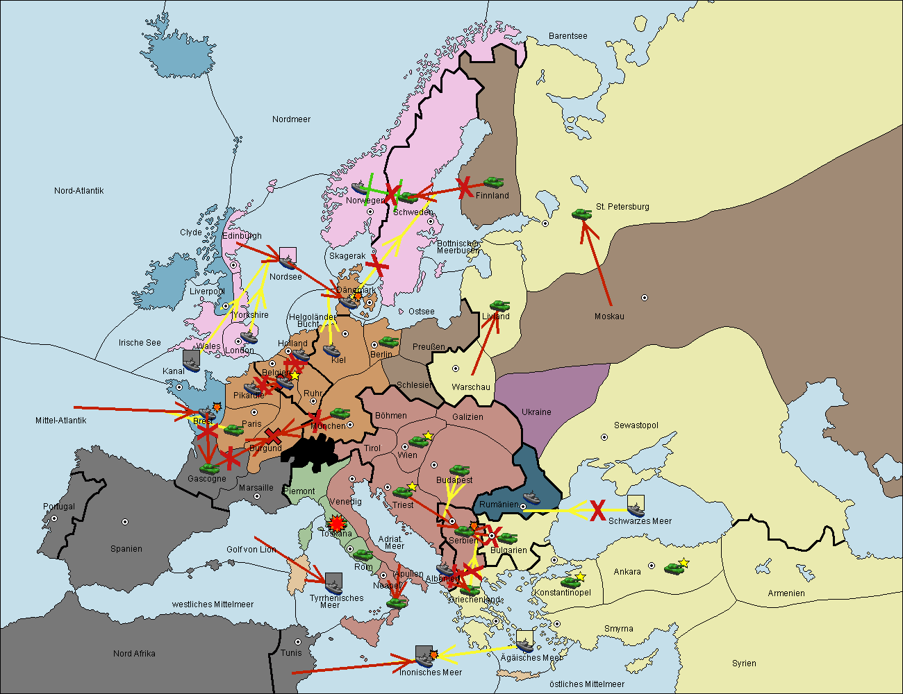 • Die Flotte in Norwegen support move nach Schweden von Ostsee. (gescheitert)