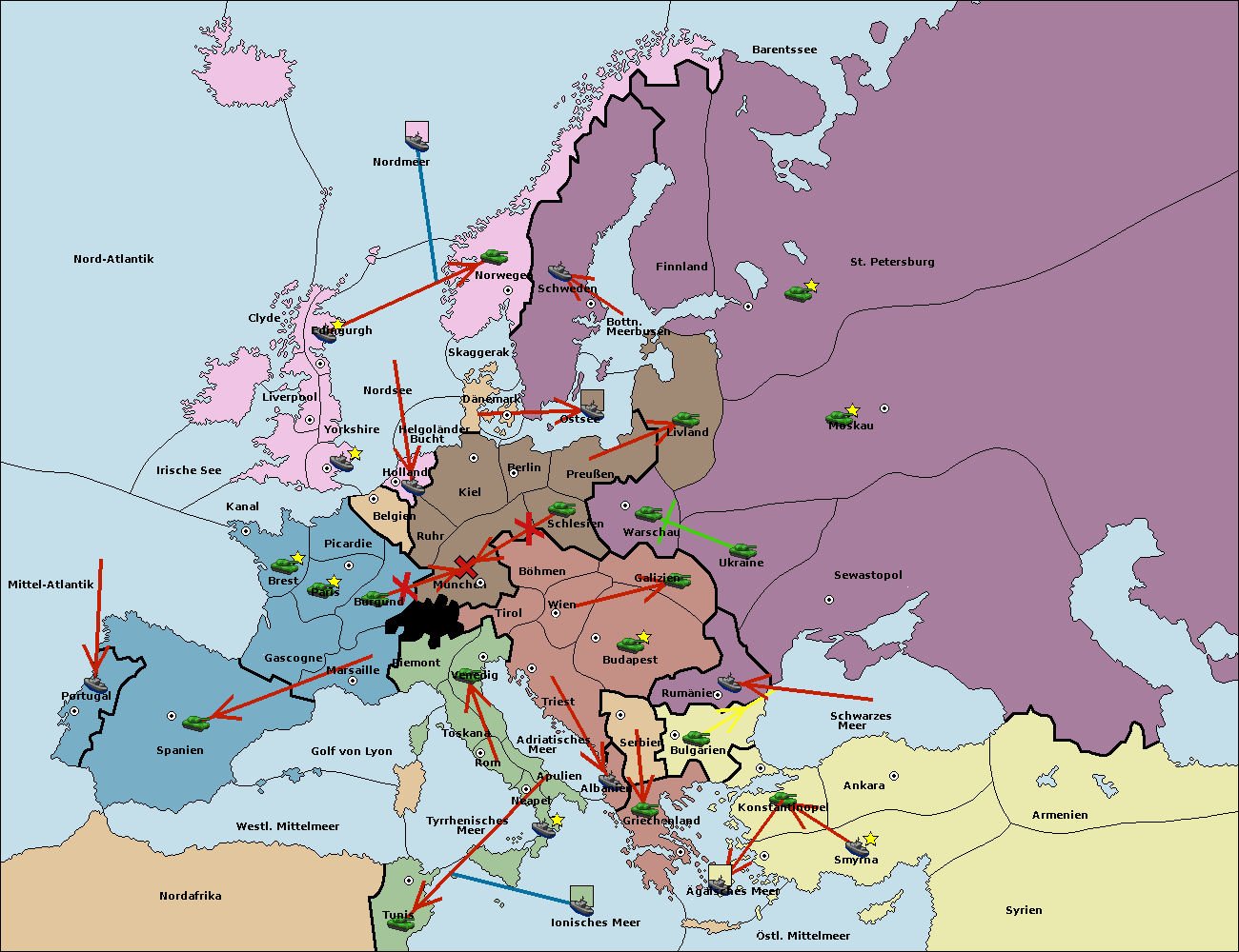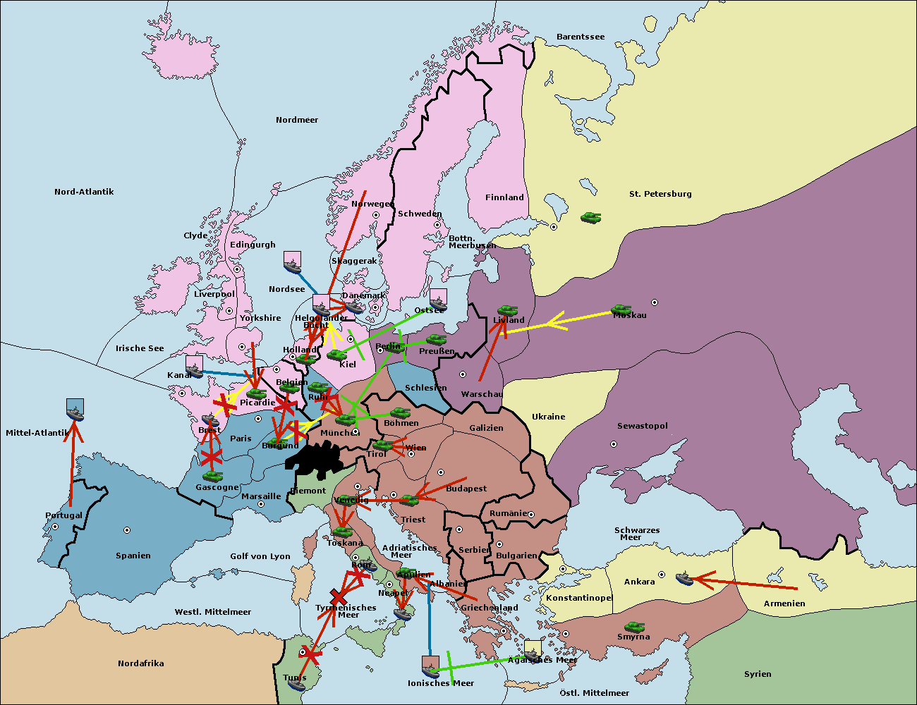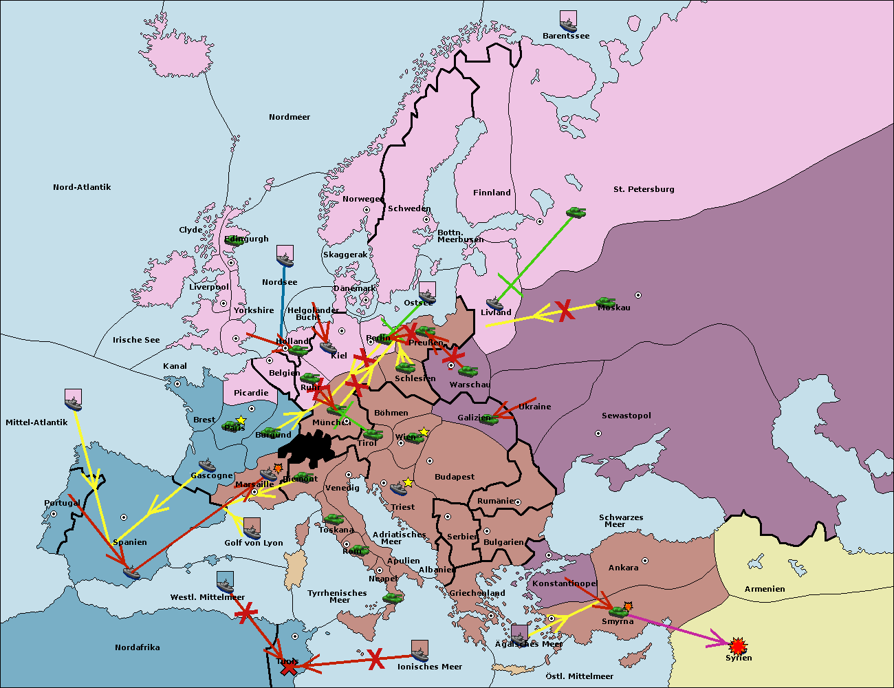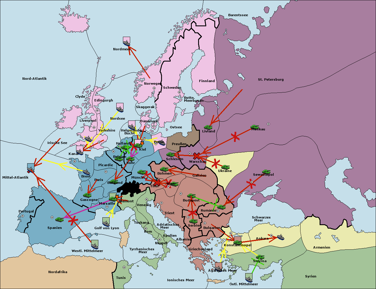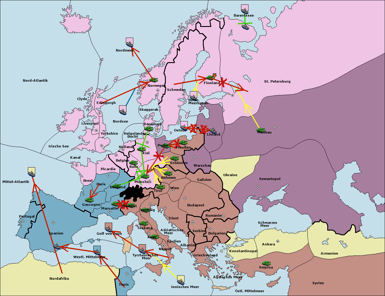 • Die Flotte in Spanien (Südküste) support move nach Mittel-Atlantik von westl. Mittelmeer.
