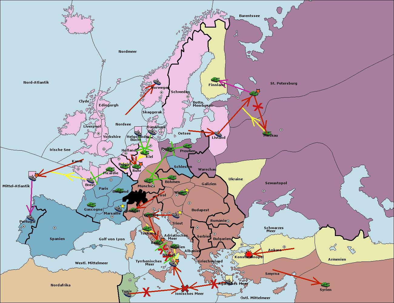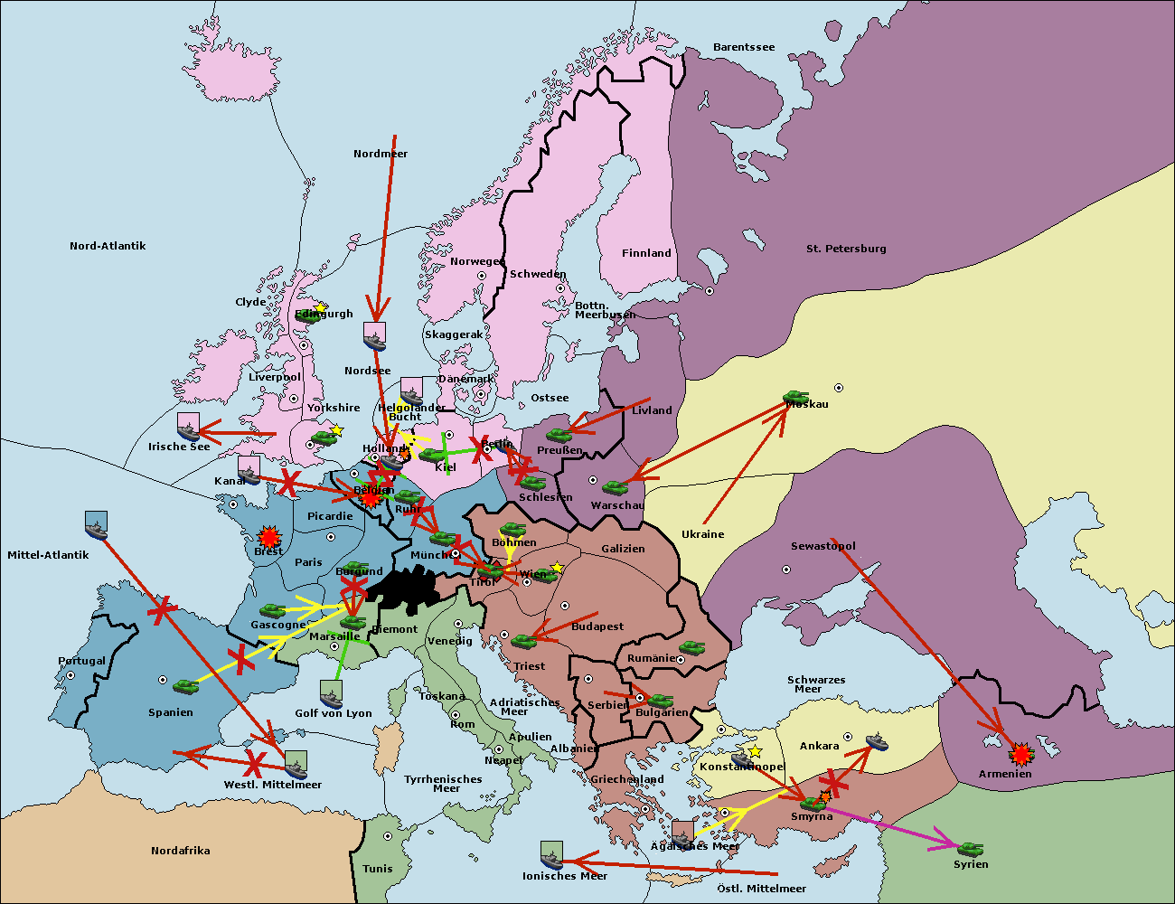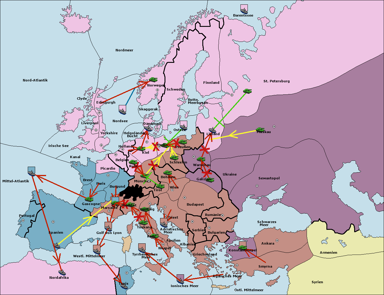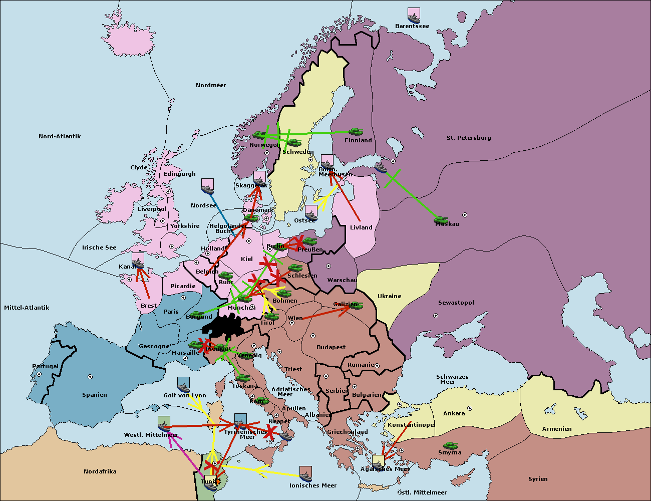 • Die Flotte in Spanien (Südküste) support move nach Mittel-Atlantik von westl. Mittelmeer.