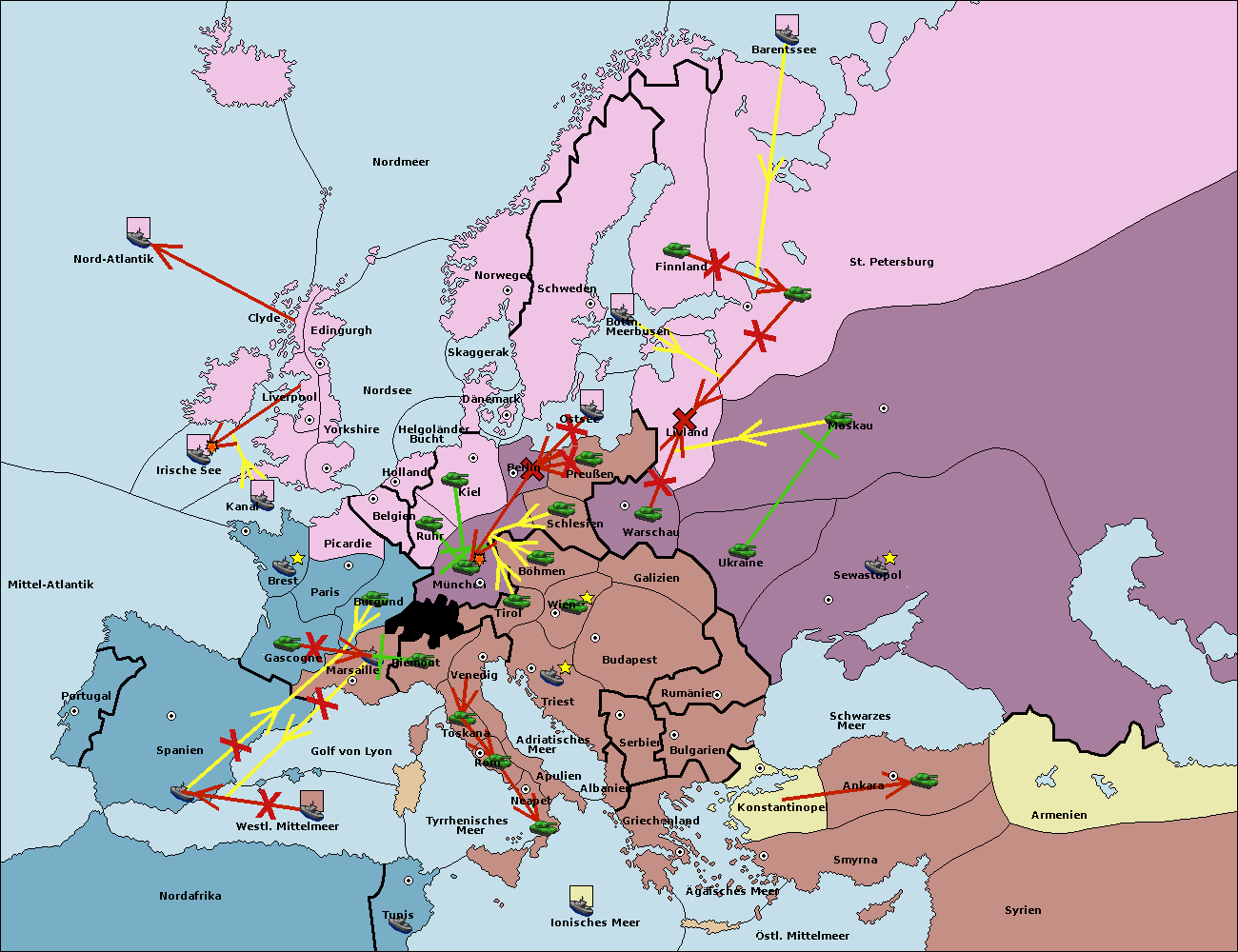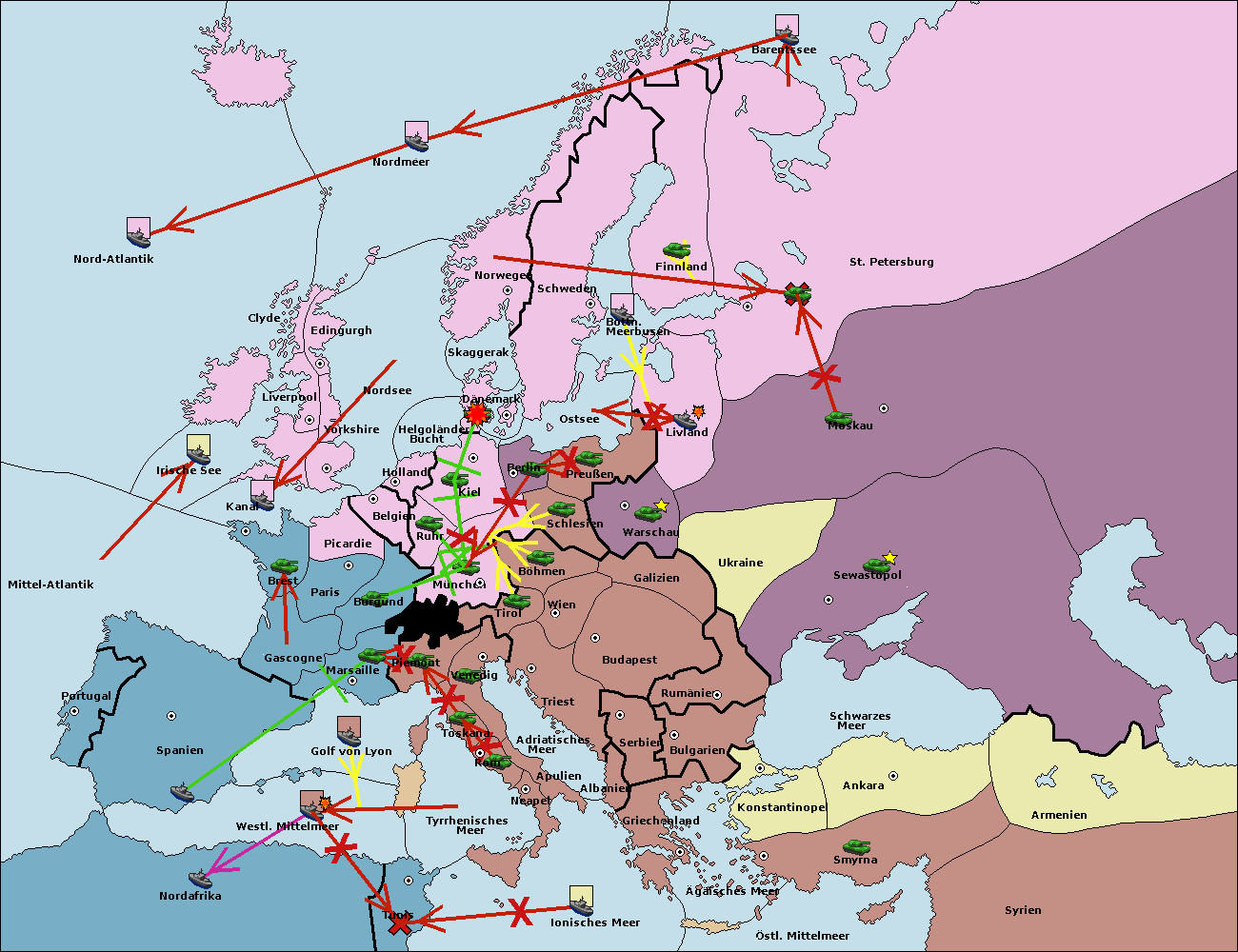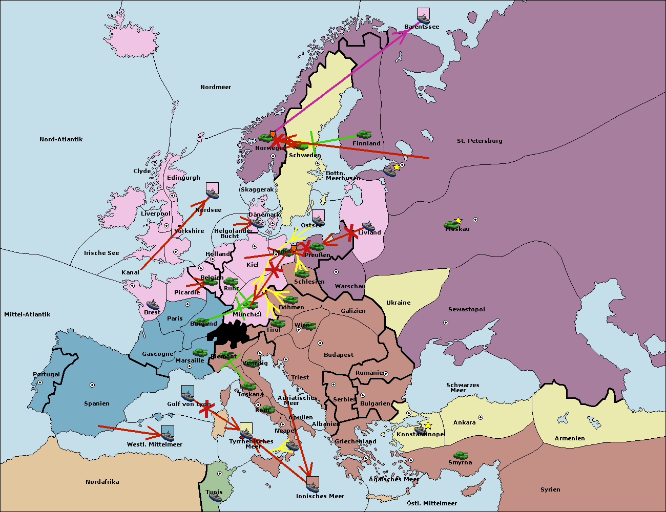 • Die Flotte in Barentssee move nach St. Petersburg (Nordküste). (gescheitert)