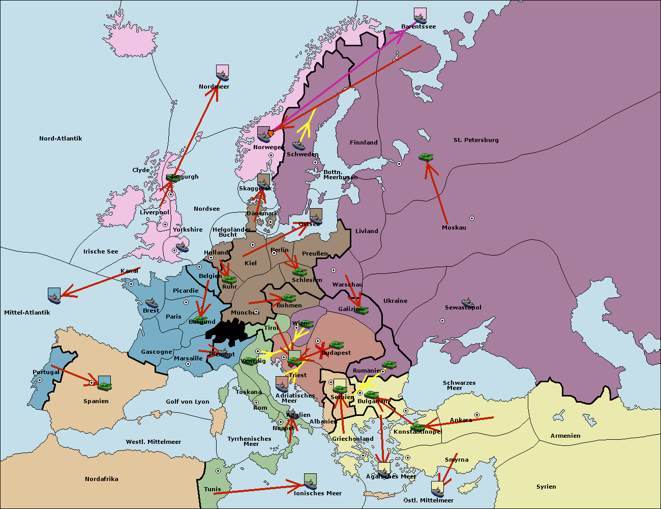 • Die Armee in Budapest support move nach Triest von Serbien.