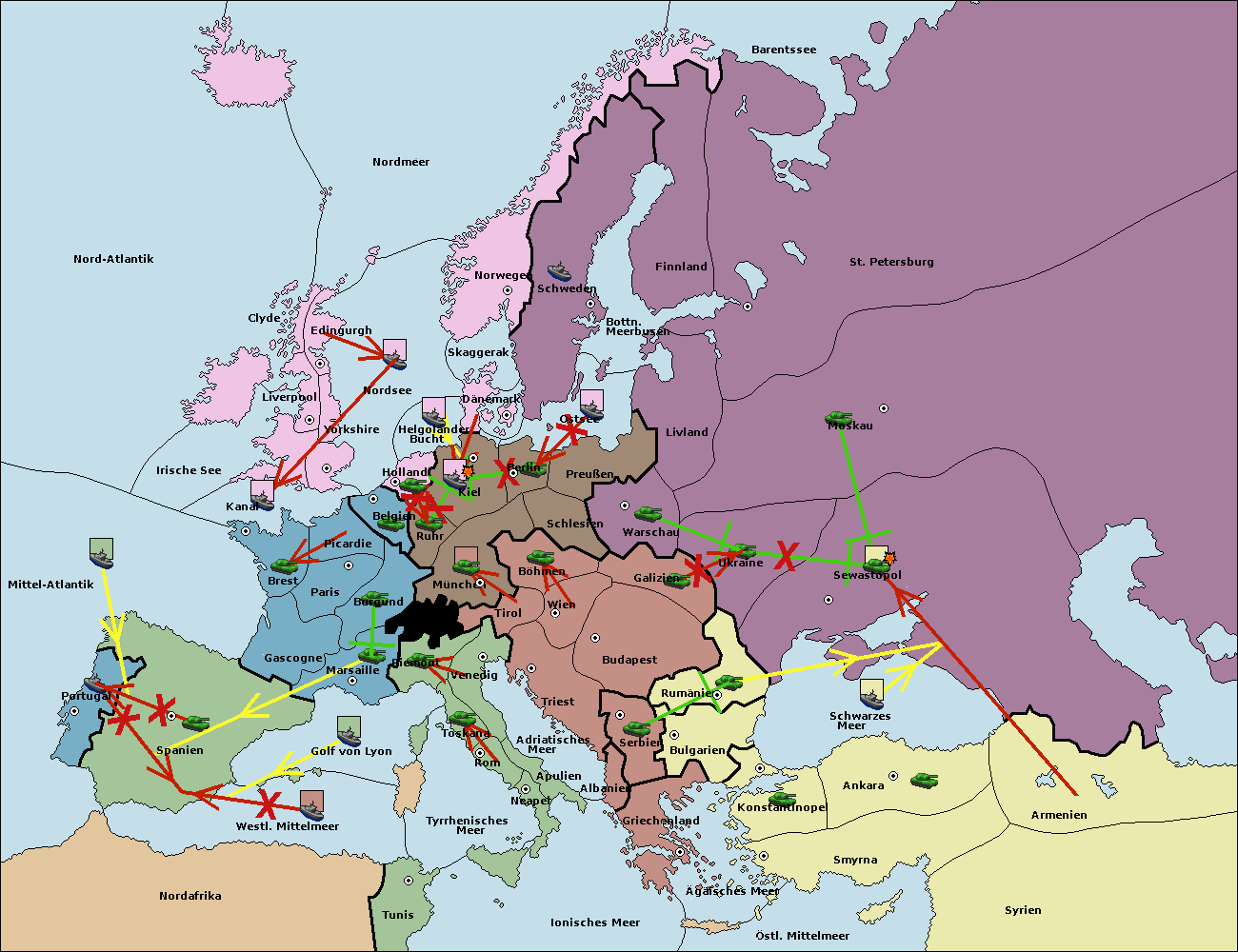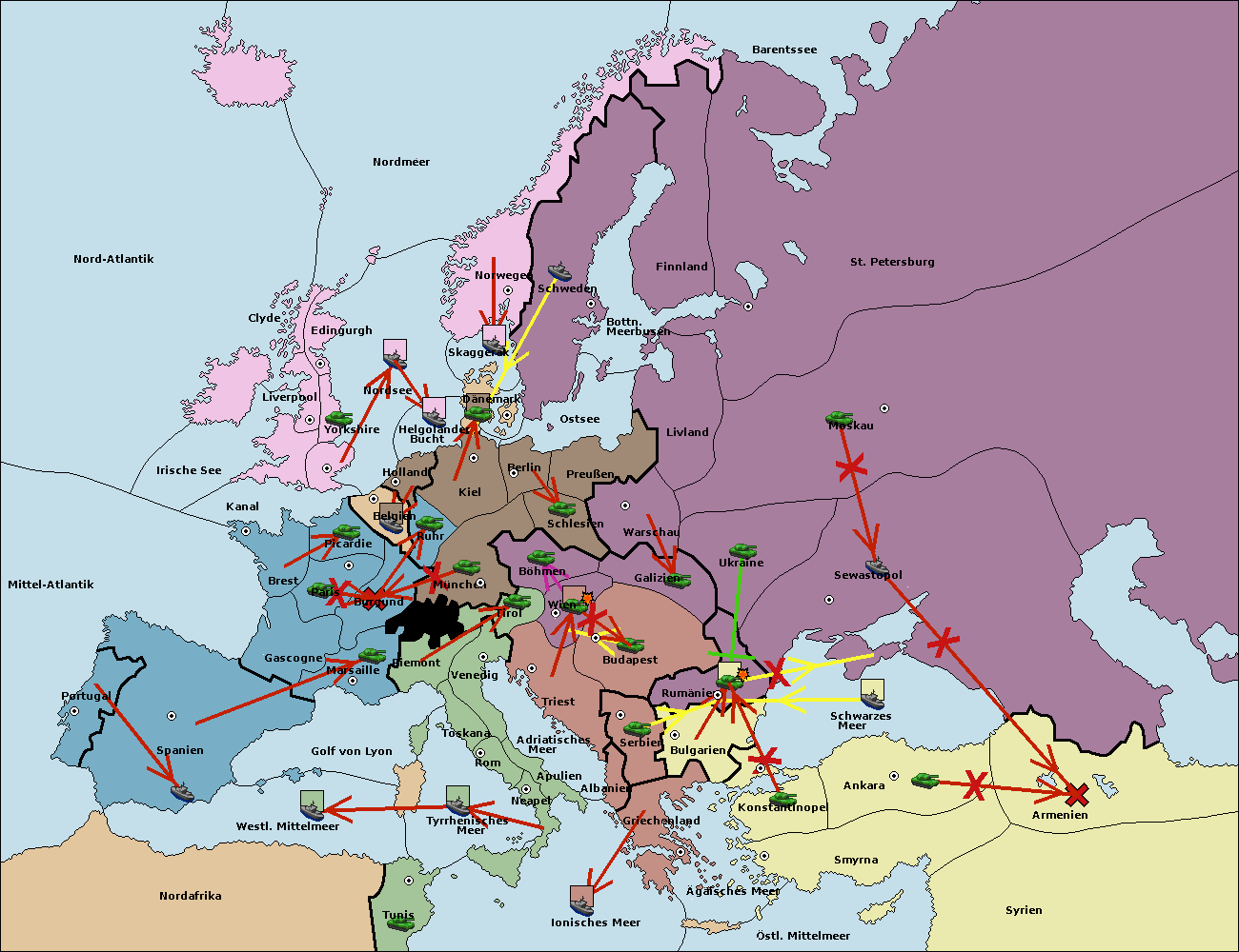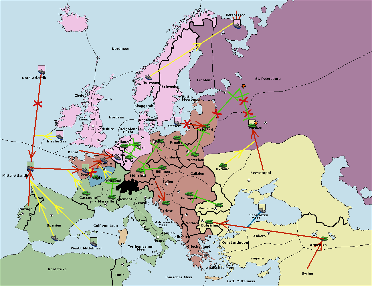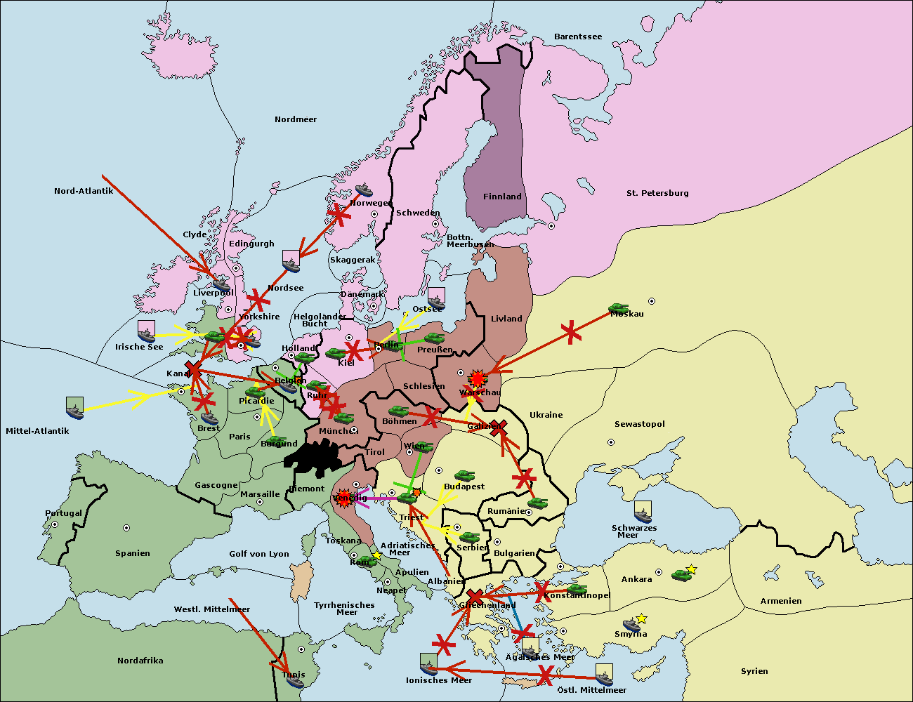 • Die Armee in Warschau support move nach Moskau von Sewastopol.