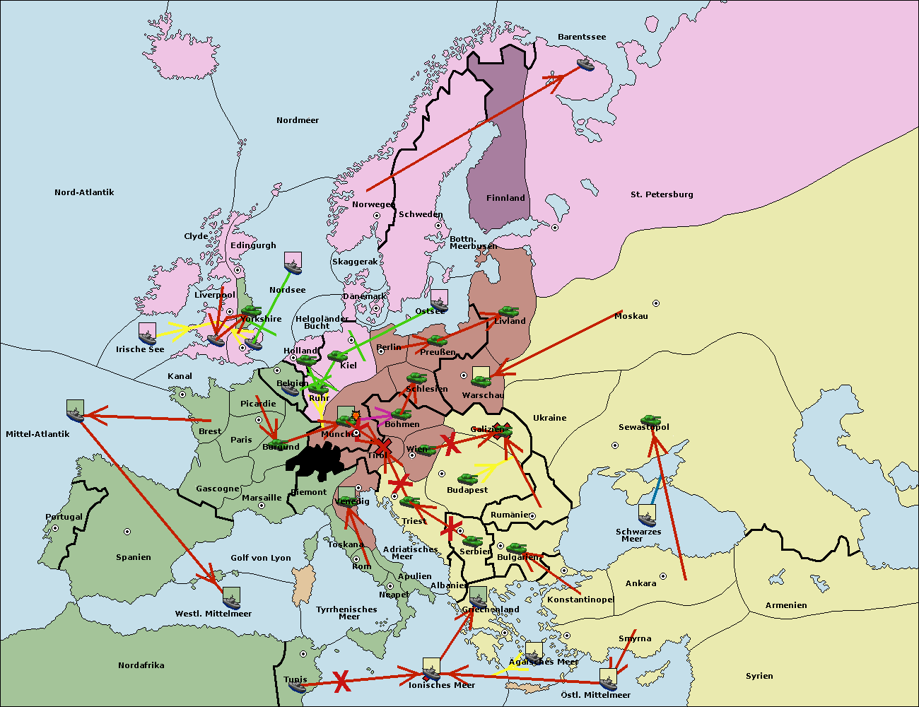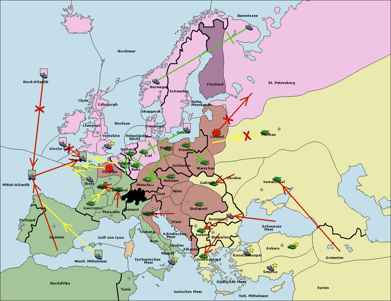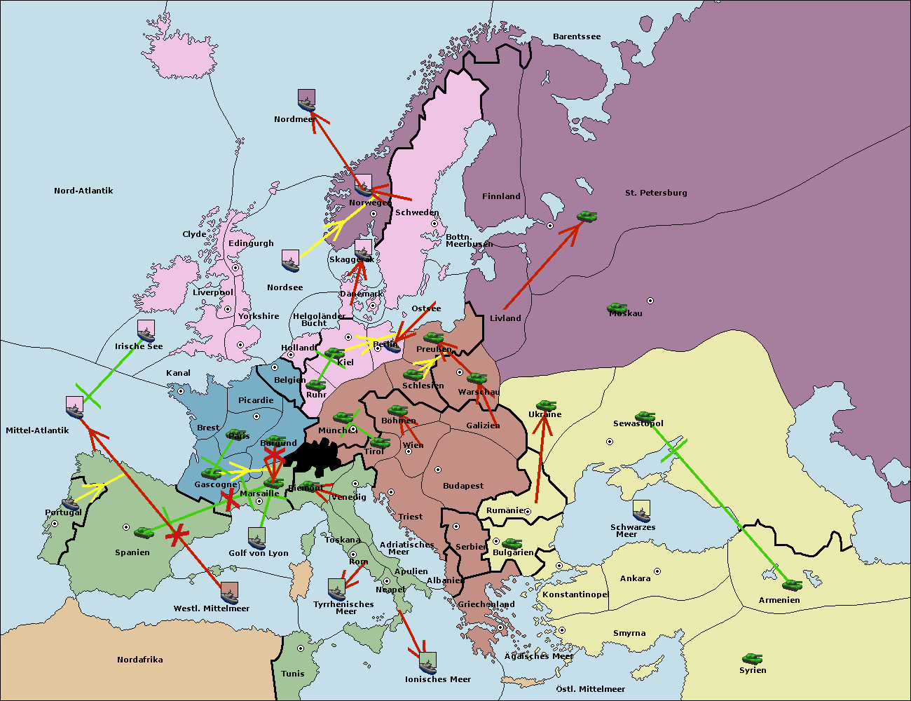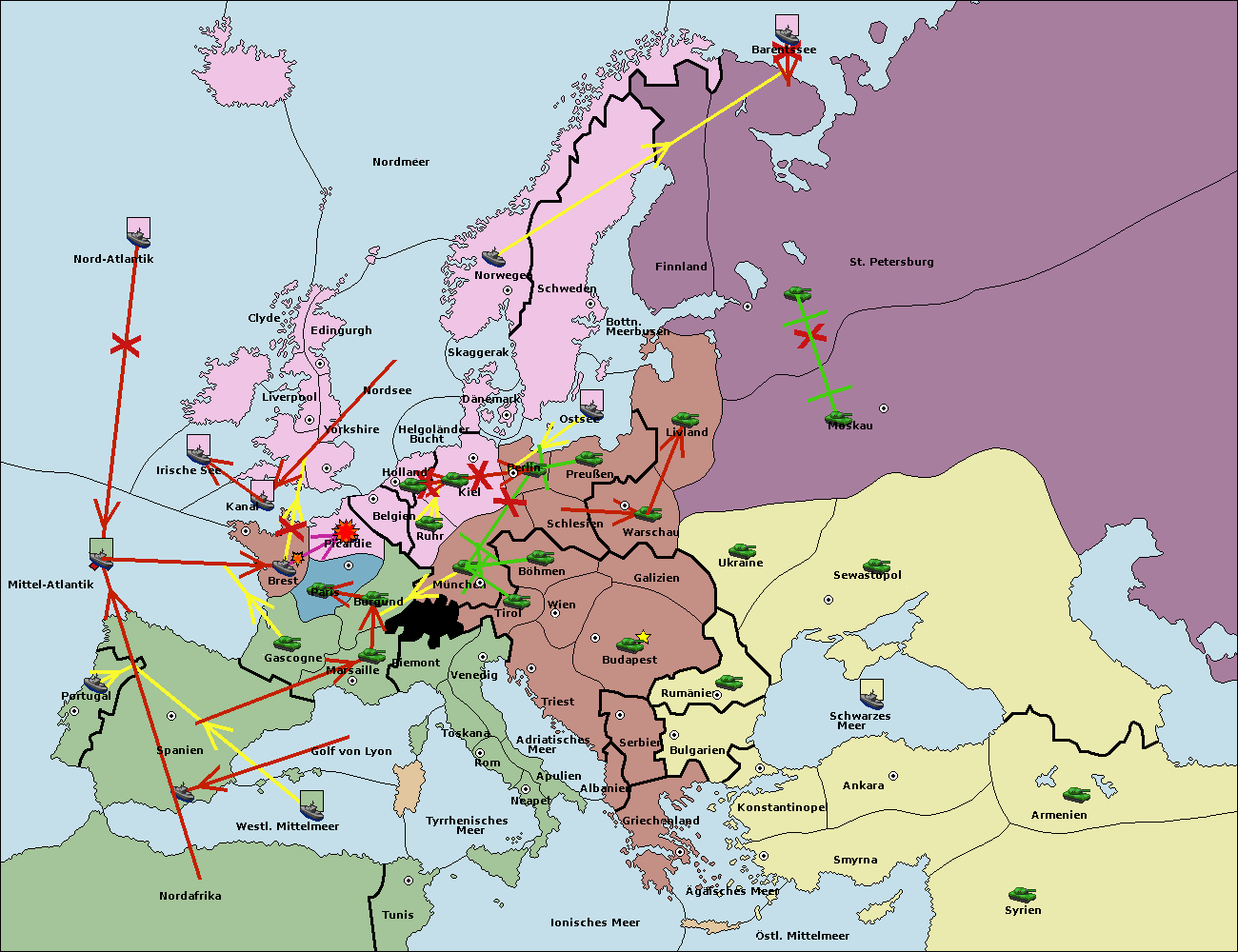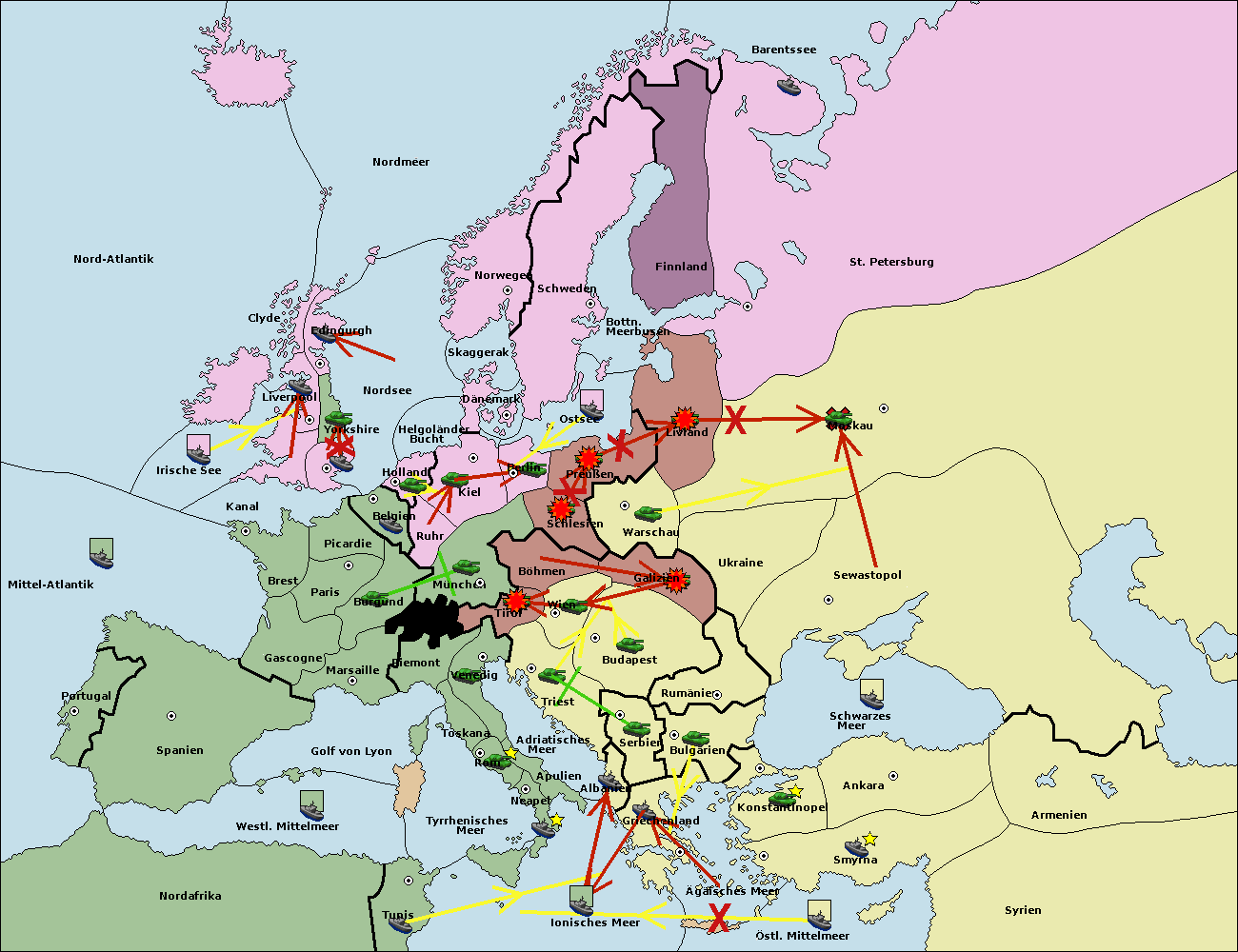 • Die Armee in Warschau support move nach Moskau von Sewastopol.