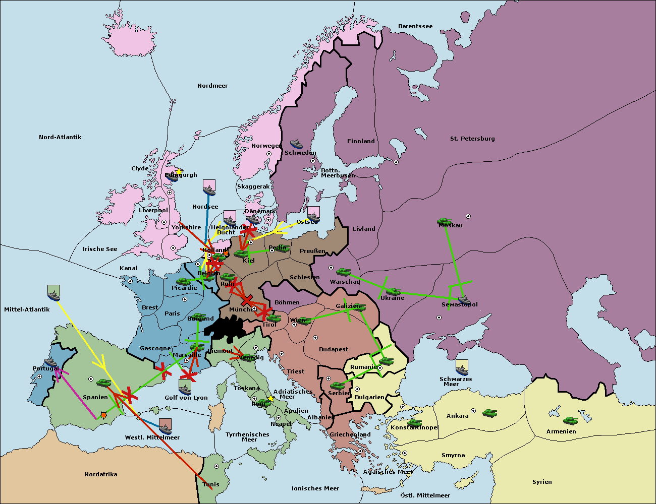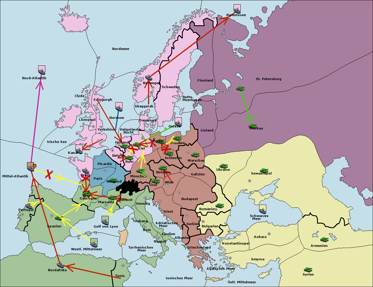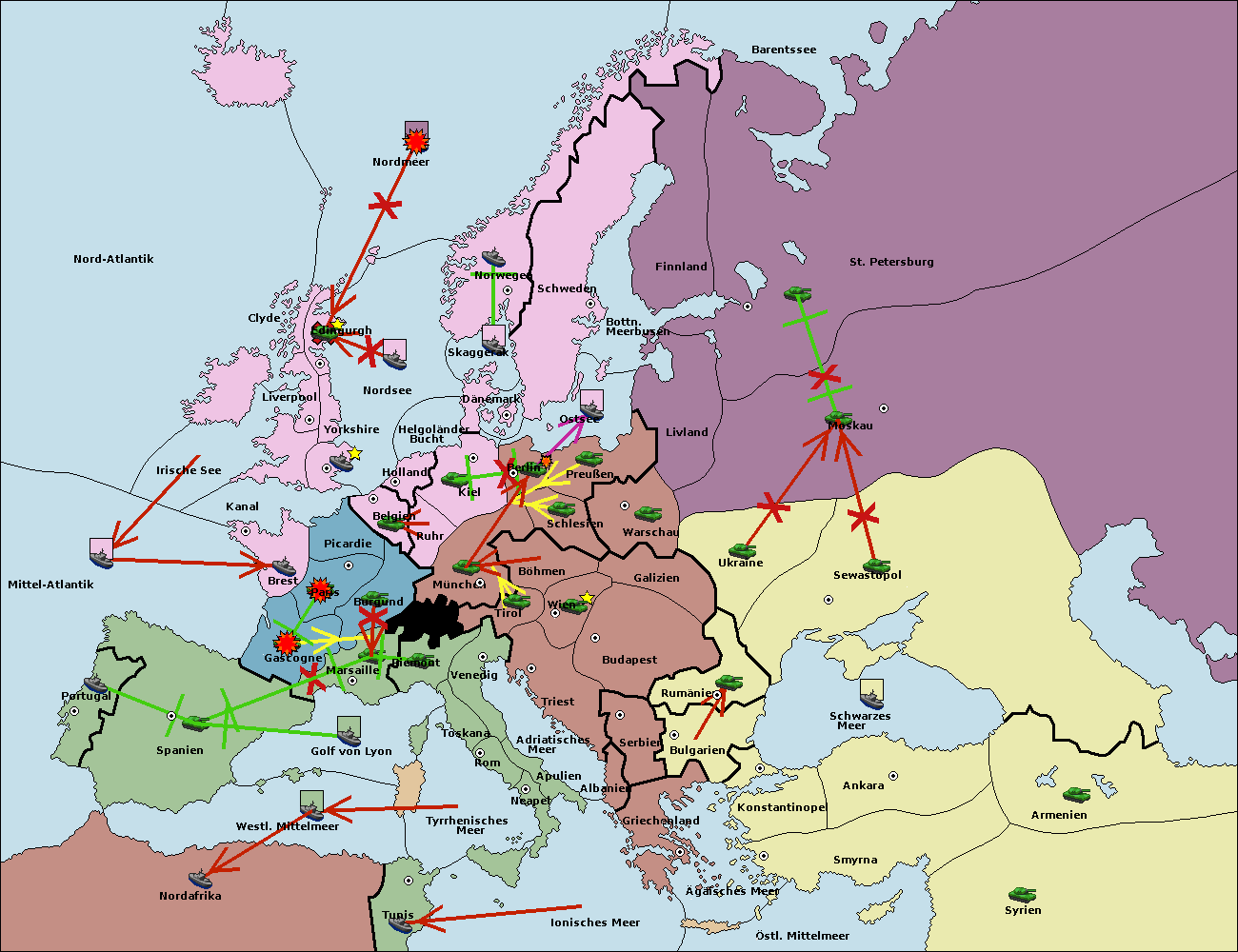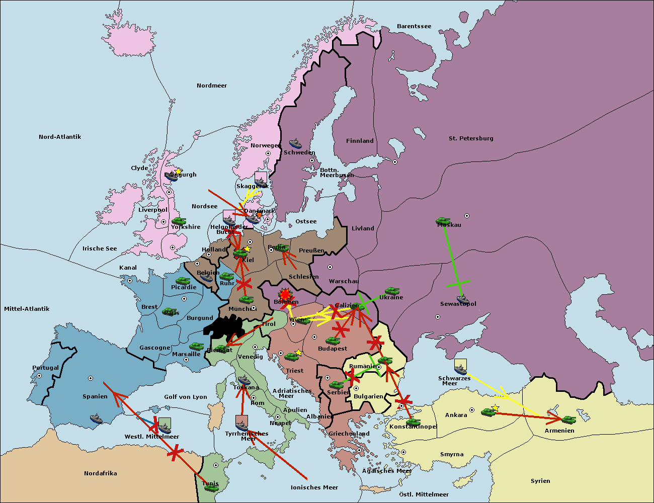 • Die Armee in Warschau support move nach Moskau von Sewastopol.