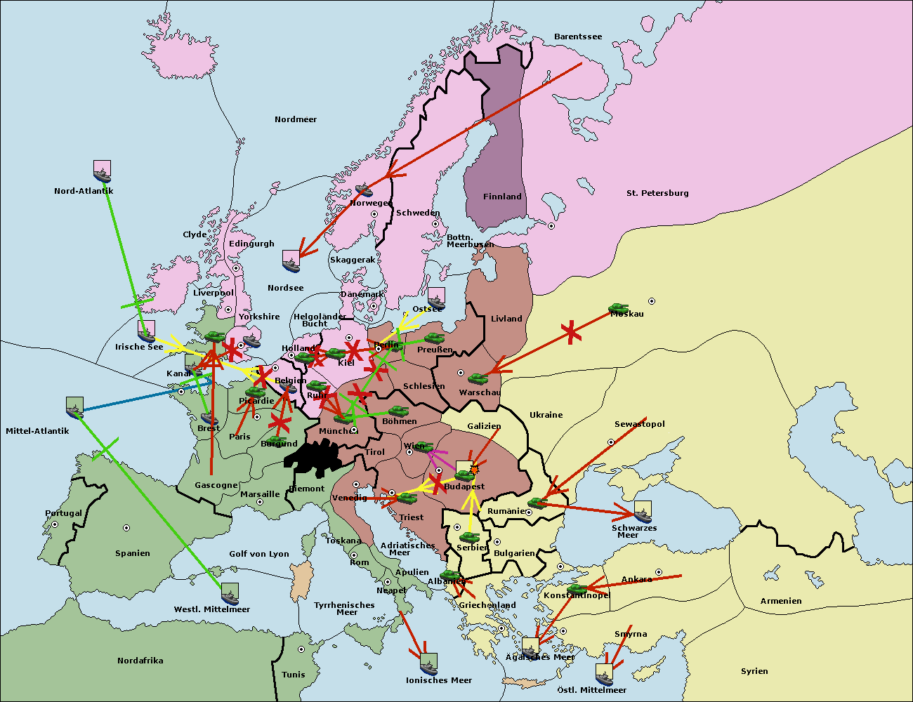 • Die Armee in Budapest support move nach Wien von Triest.