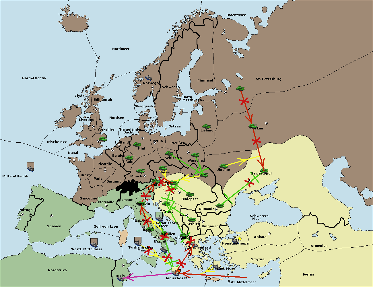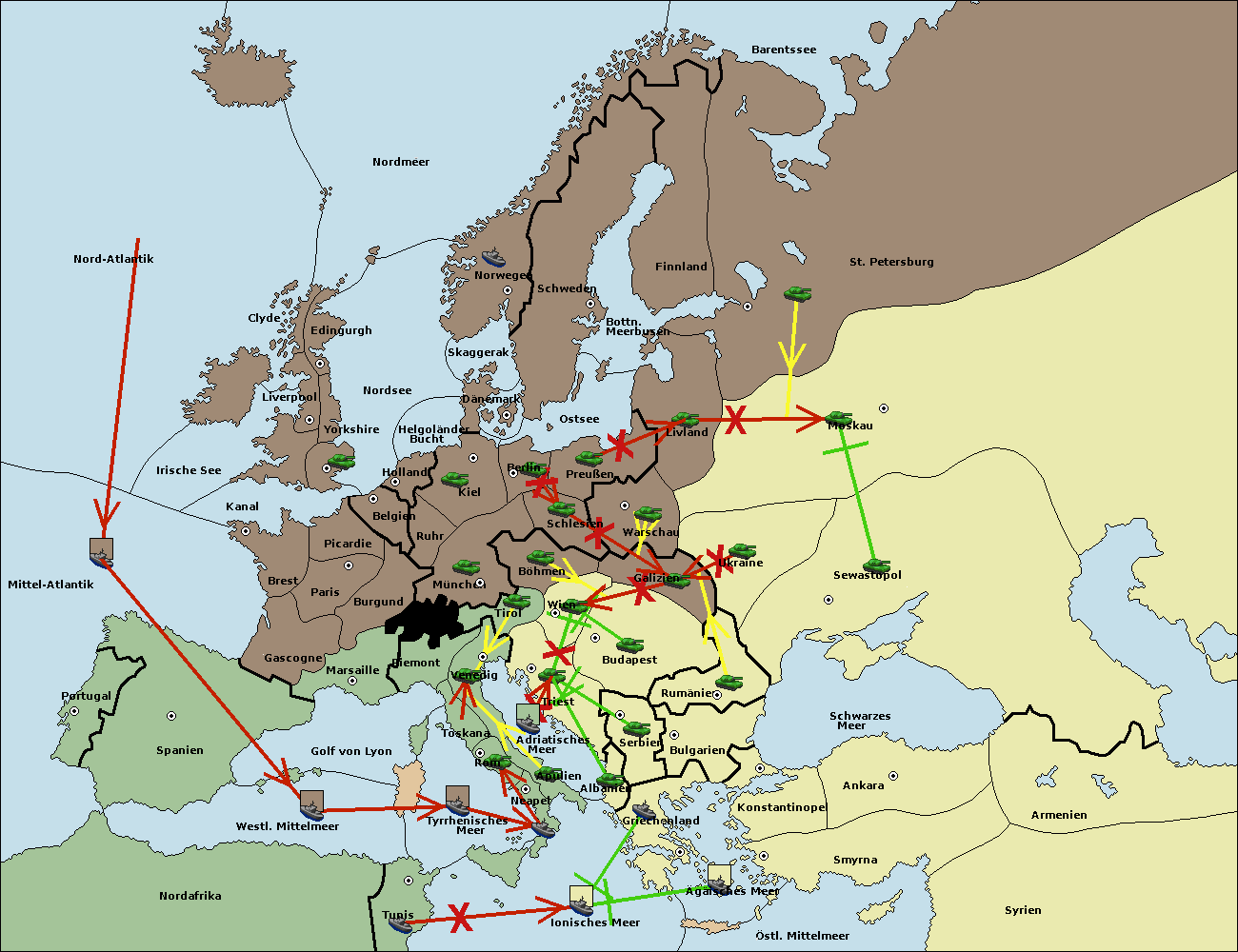 • Die Armee in Triest support move nach Wien von Tirol.