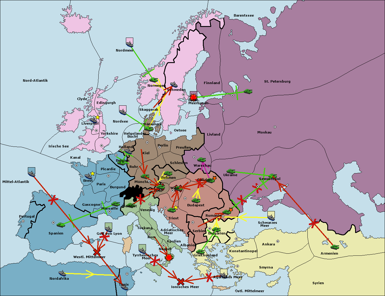 • Die Armee in Konstantinopel support hold nach Bulgarien.