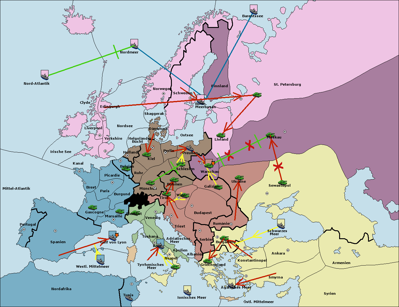 • Die Armee in Warschau wird zerstörtFlotte in Warschau gebaut.