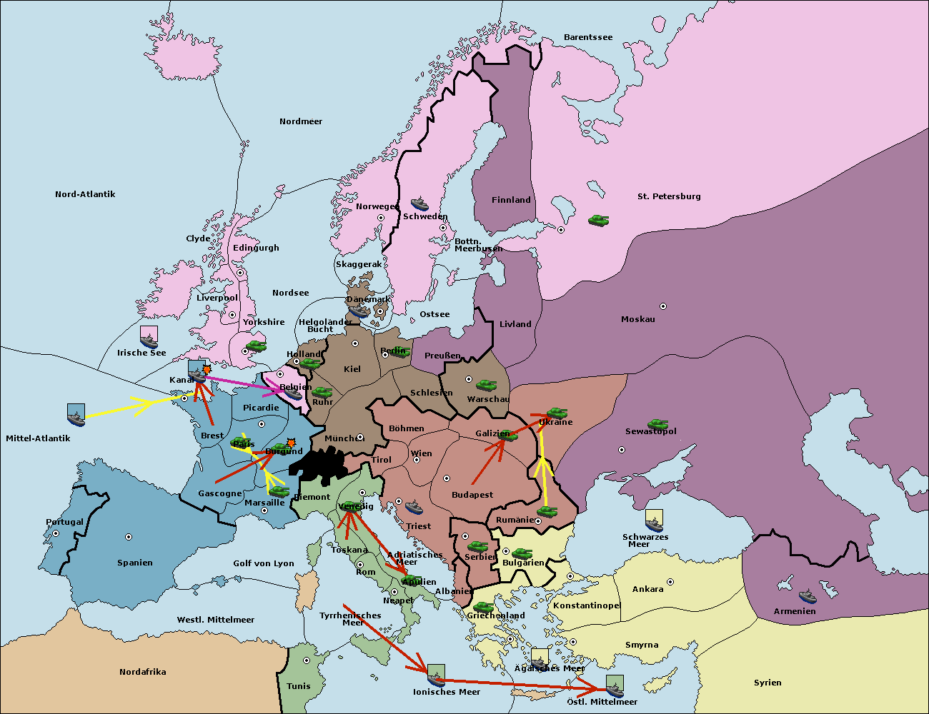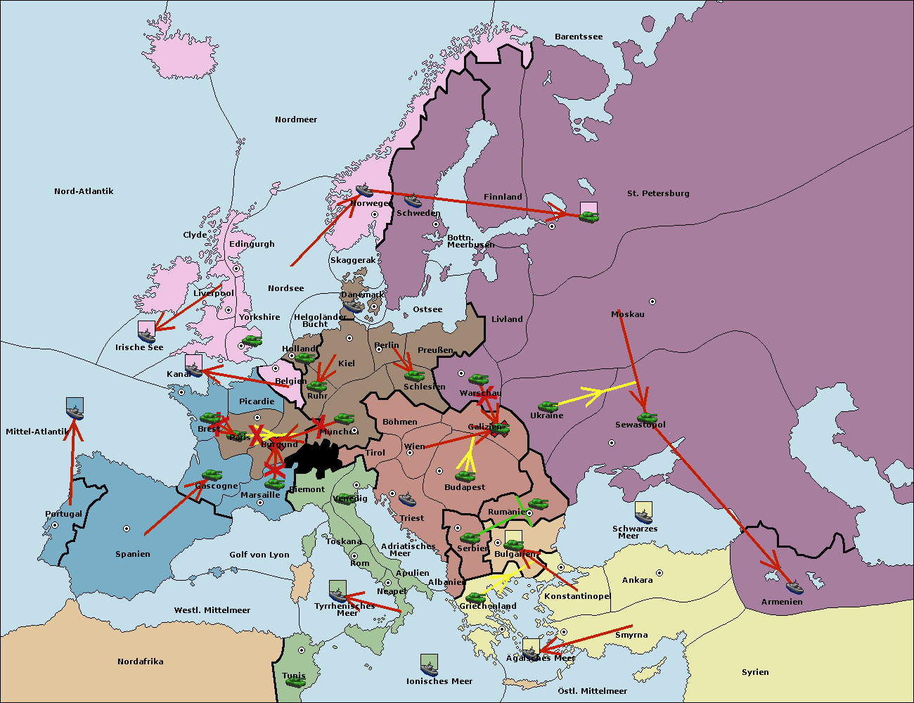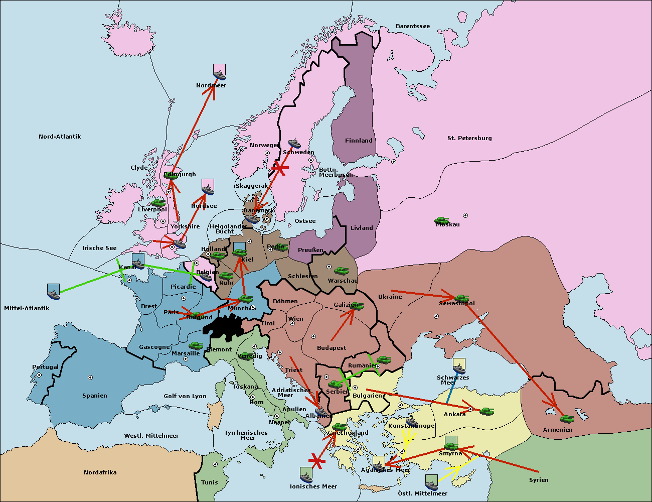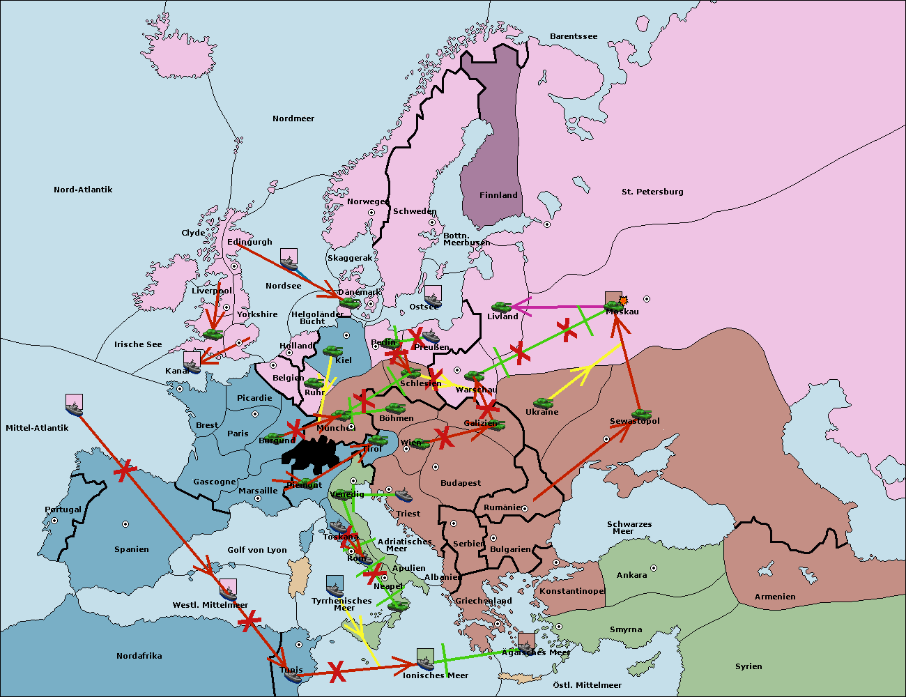 • Die Armee in Kiel support move nach München von Burgund.
