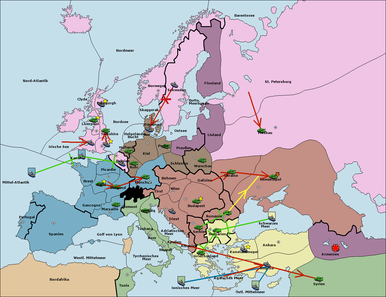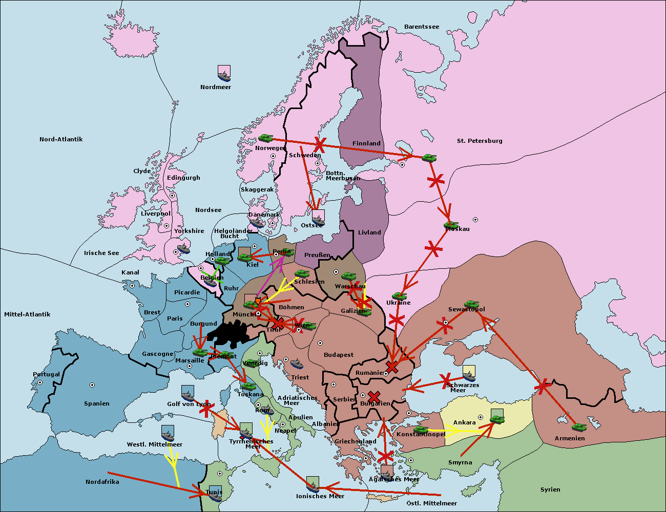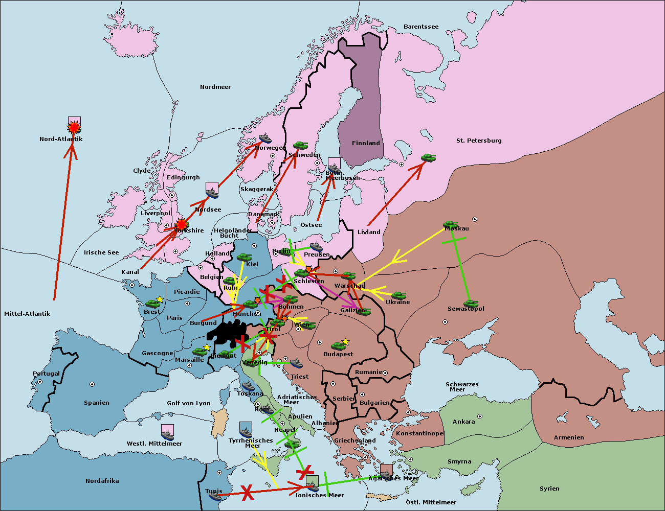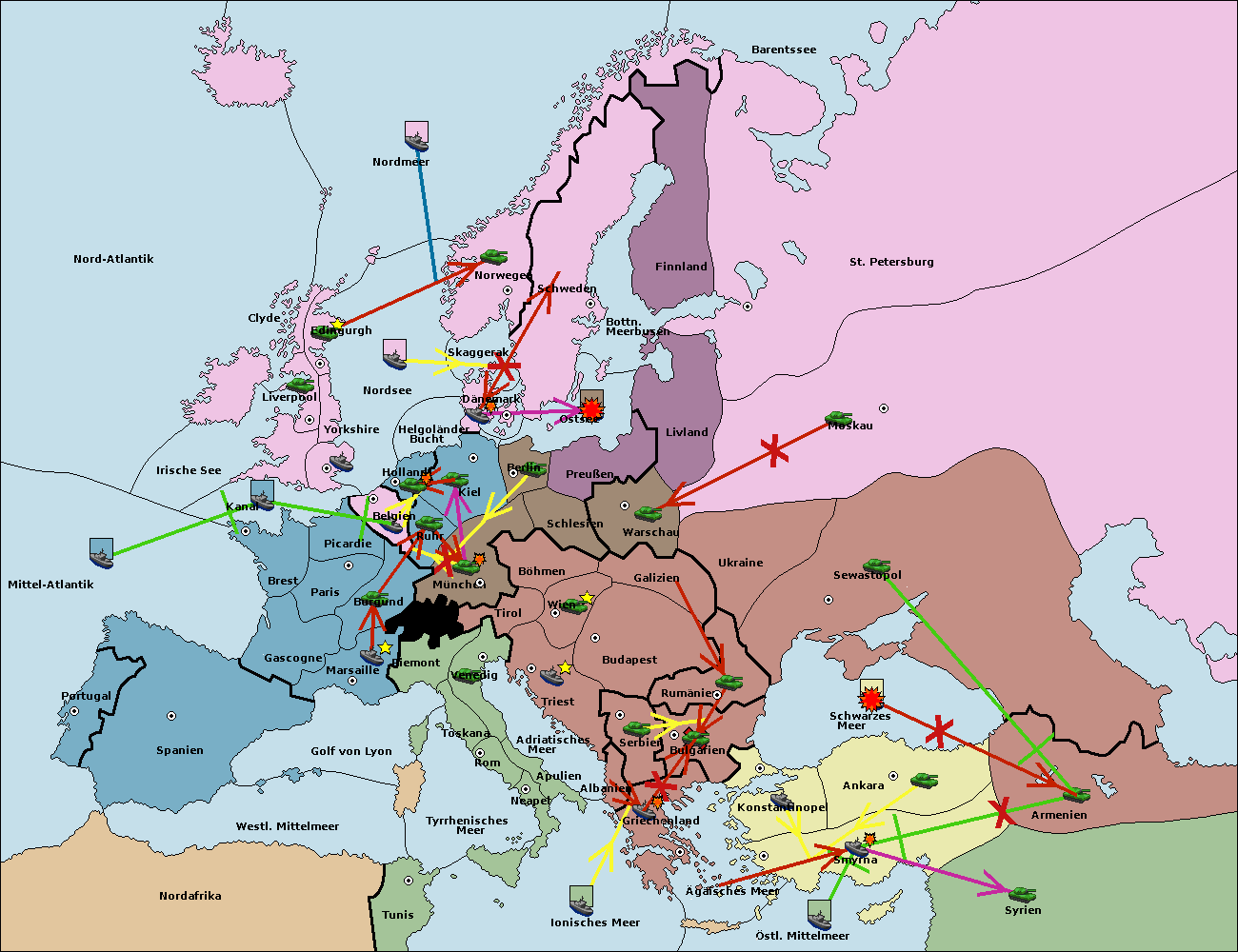 • Die Armee in Kiel support move nach München von Burgund.