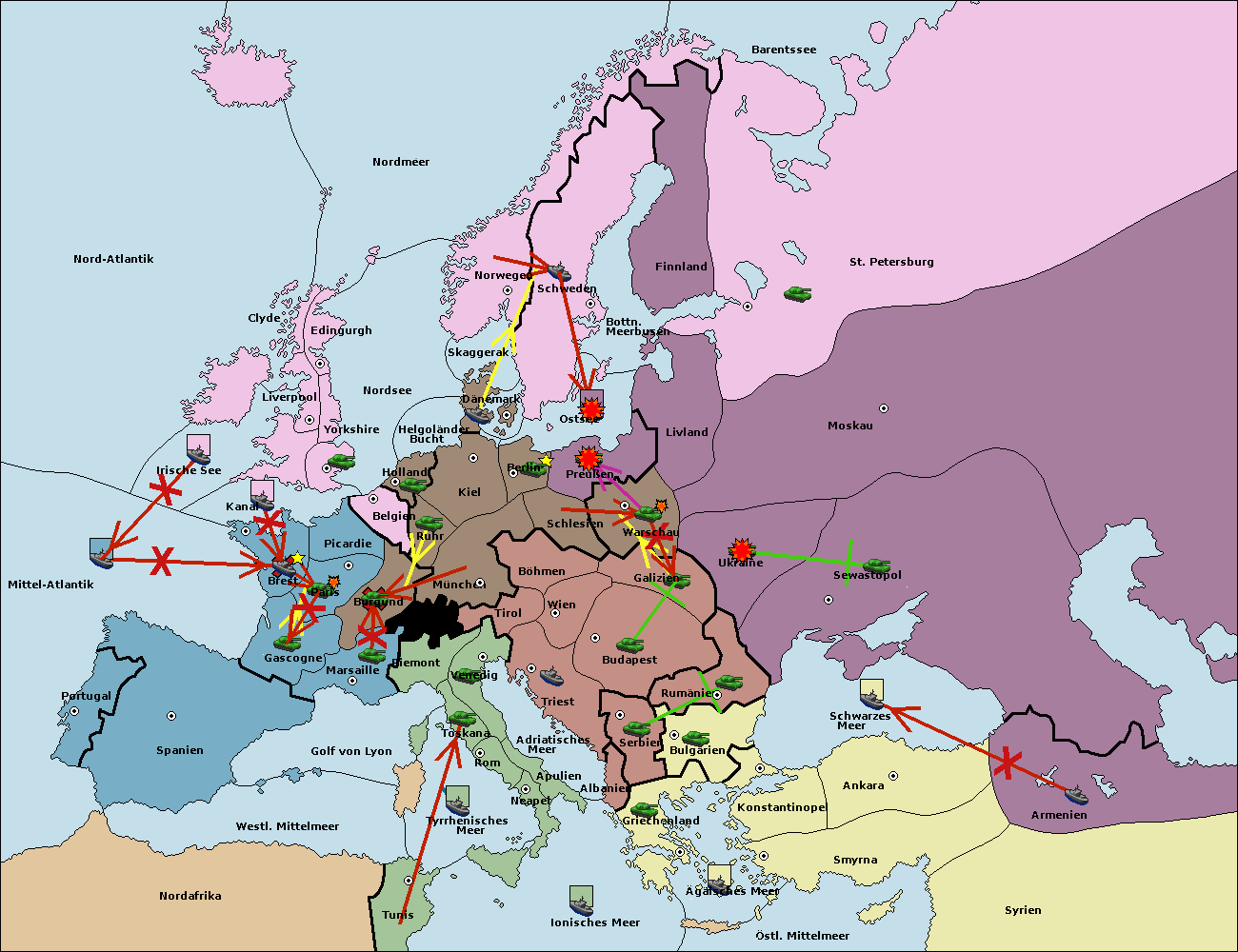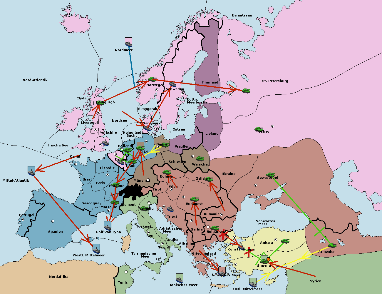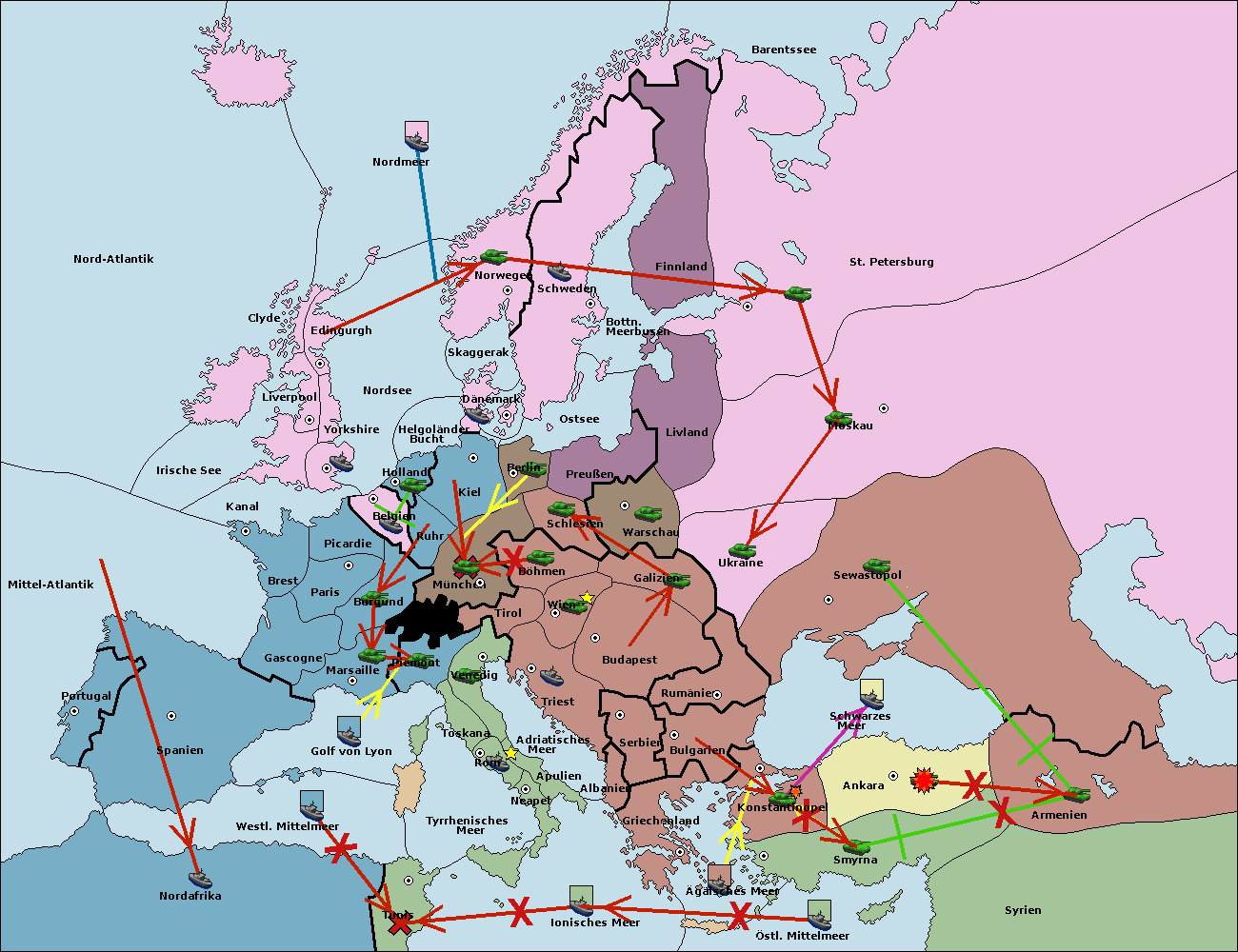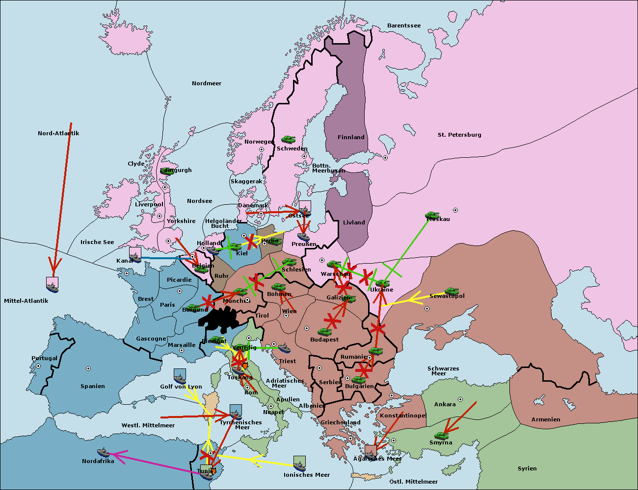• Die Armee in Kiel support move nach München von Burgund.