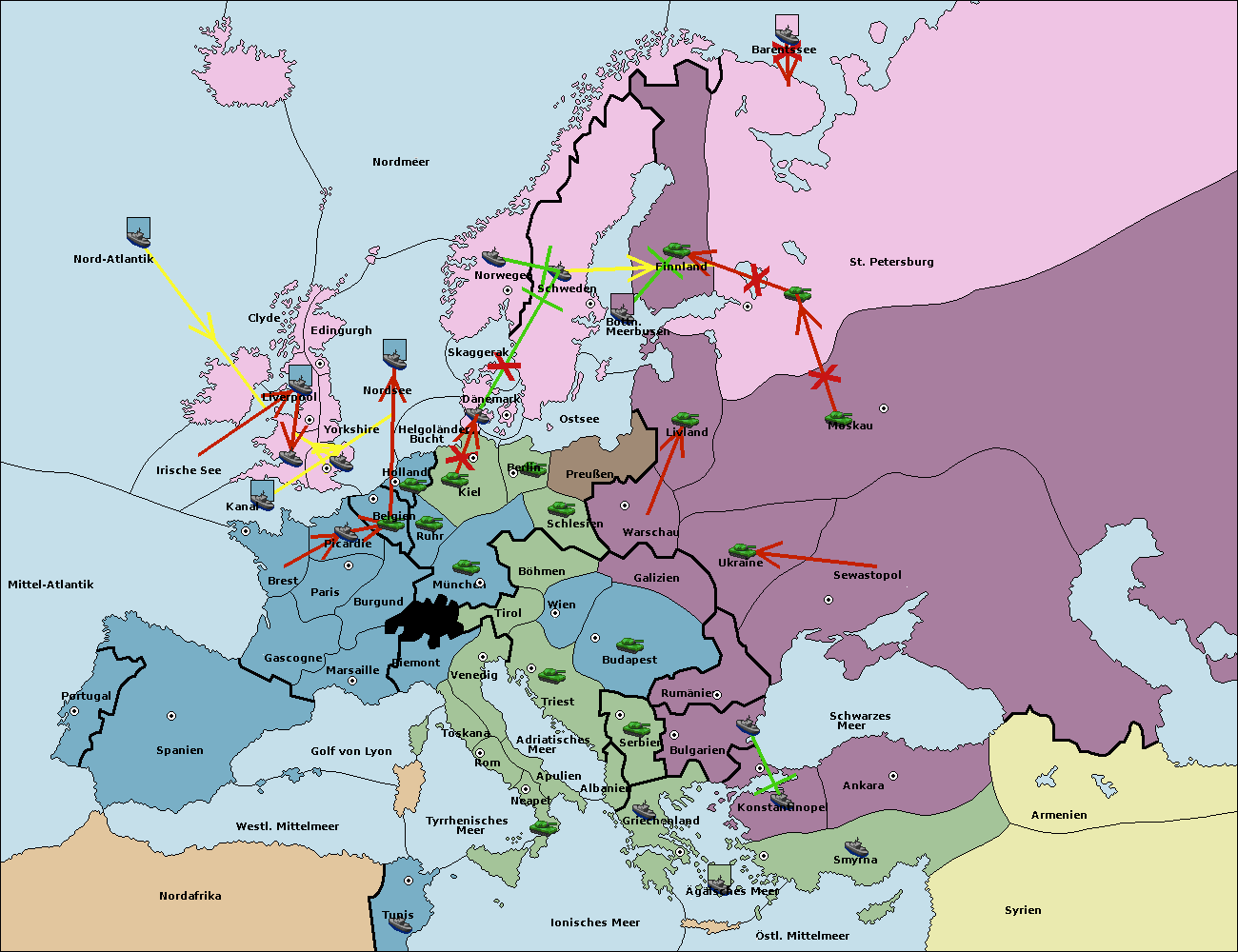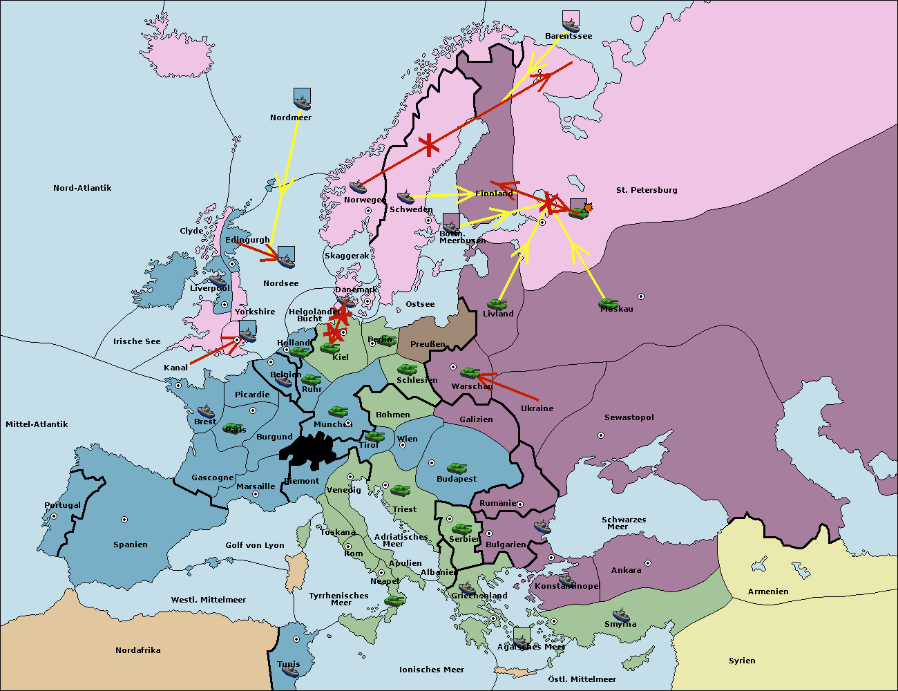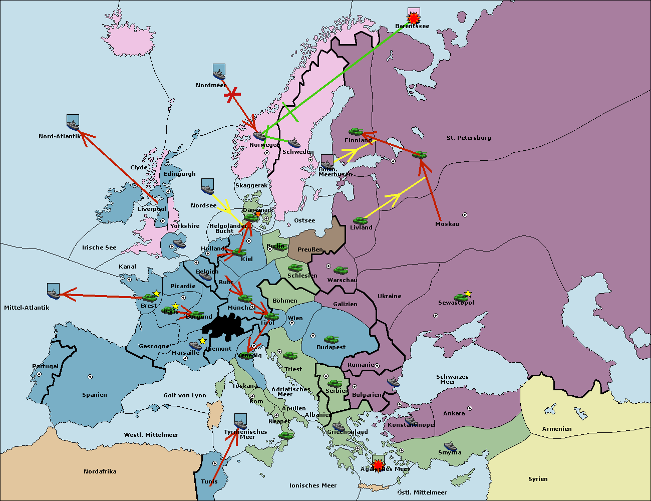 • Die Flotte in St. Petersburg (Nordküste) move nach Norwegen. (gescheitert)