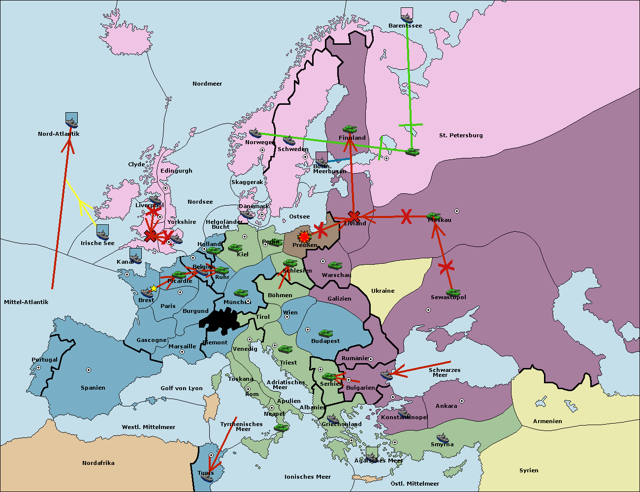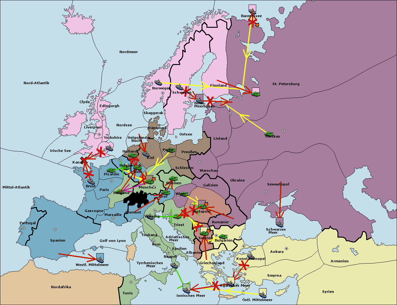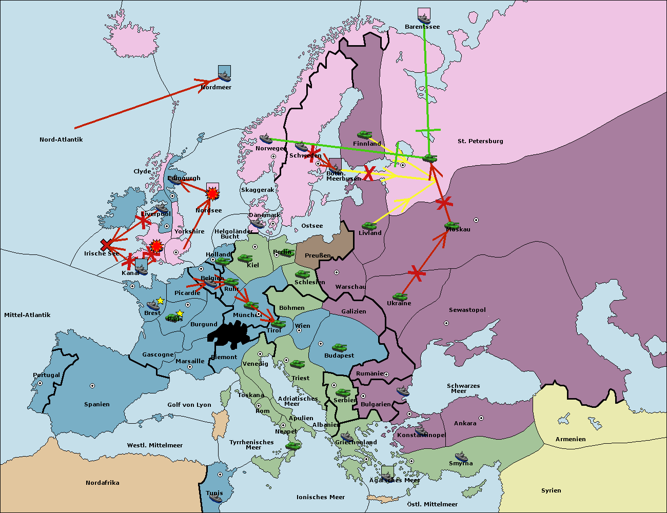 • Die Flotte in St. Petersburg (Nordküste) move nach Norwegen. (gescheitert)