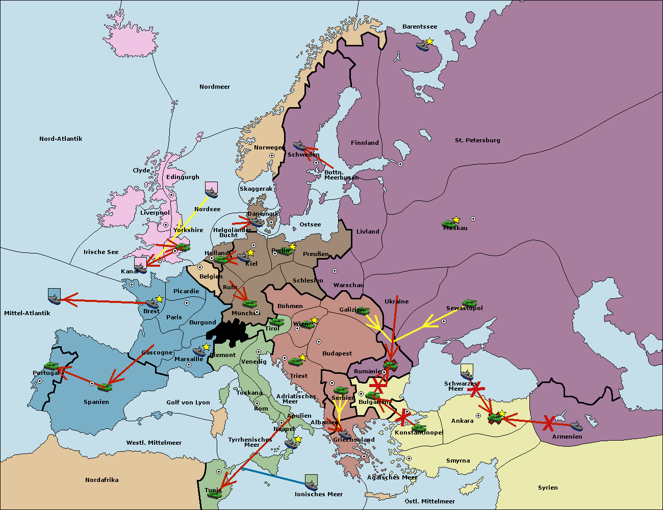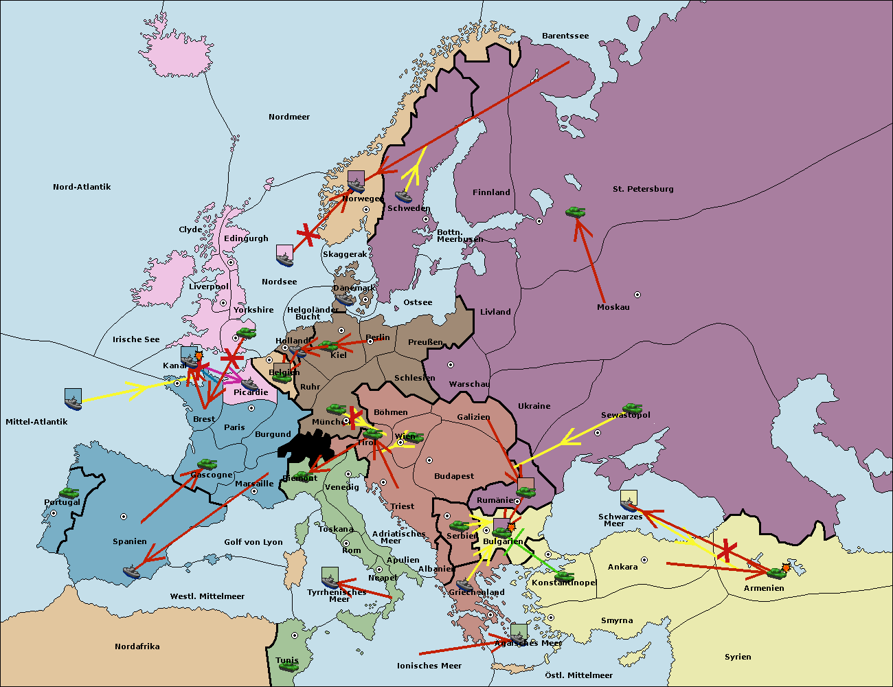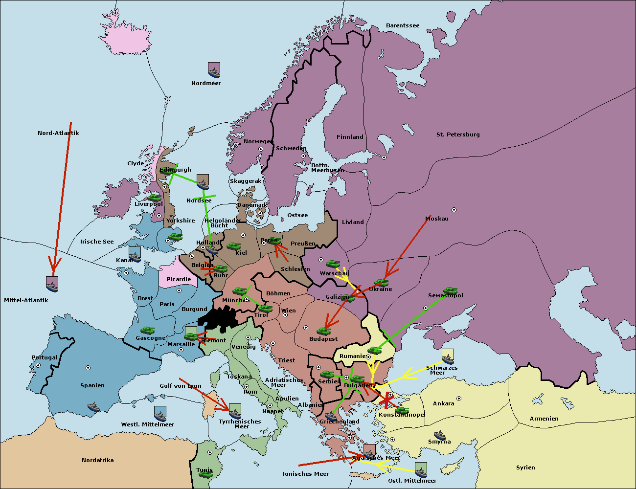 • Die Armee in Bulgarien wird zerstörtFlotte in Bulgarien gebaut.