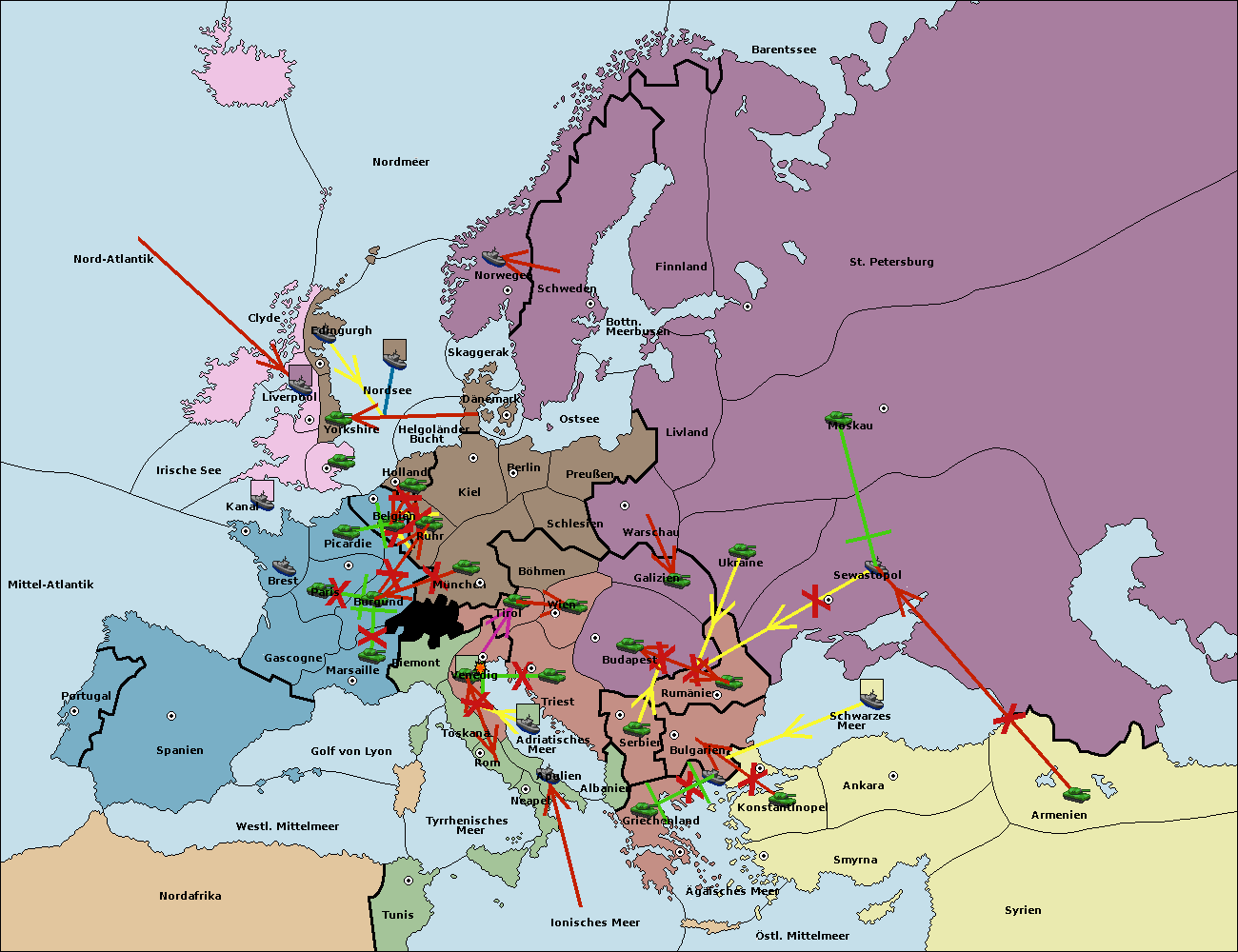 • Die Armee in Bulgarien wird zerstörtFlotte in Bulgarien gebaut.