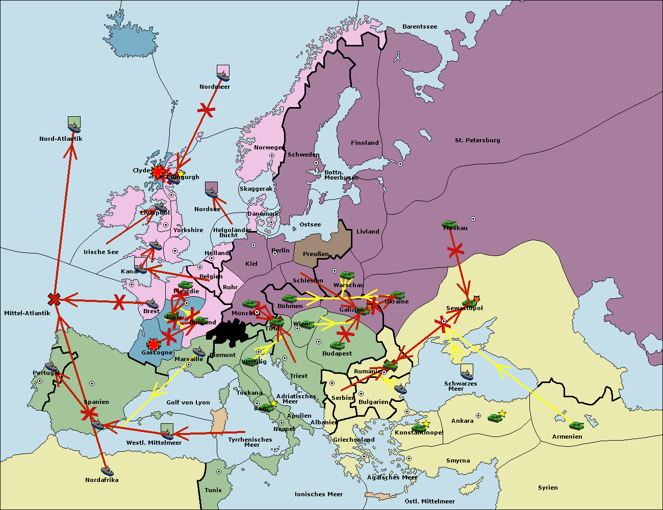 • Die Armee in Galizien support move nach Rumänien von Sewastopol. (gescheitert)
