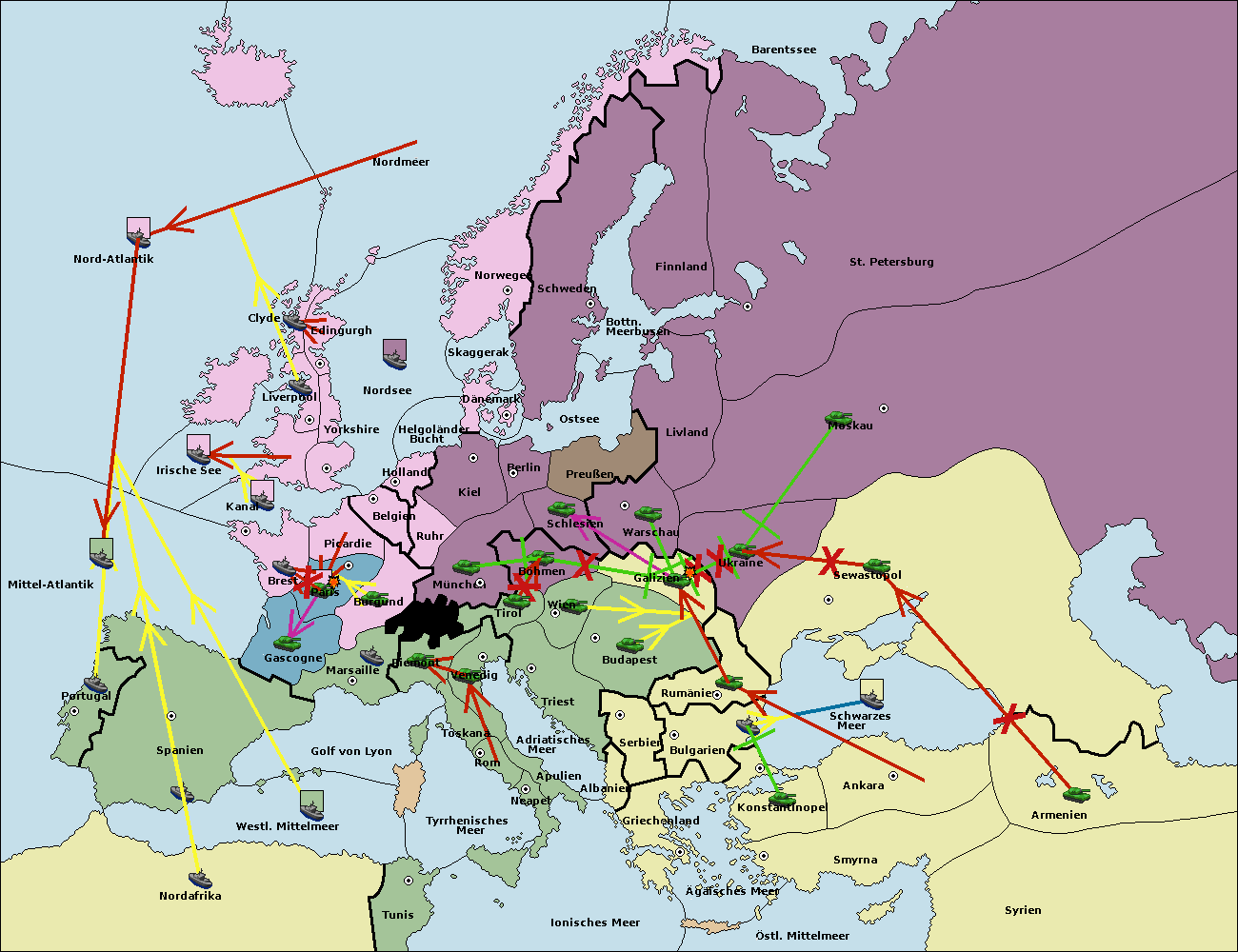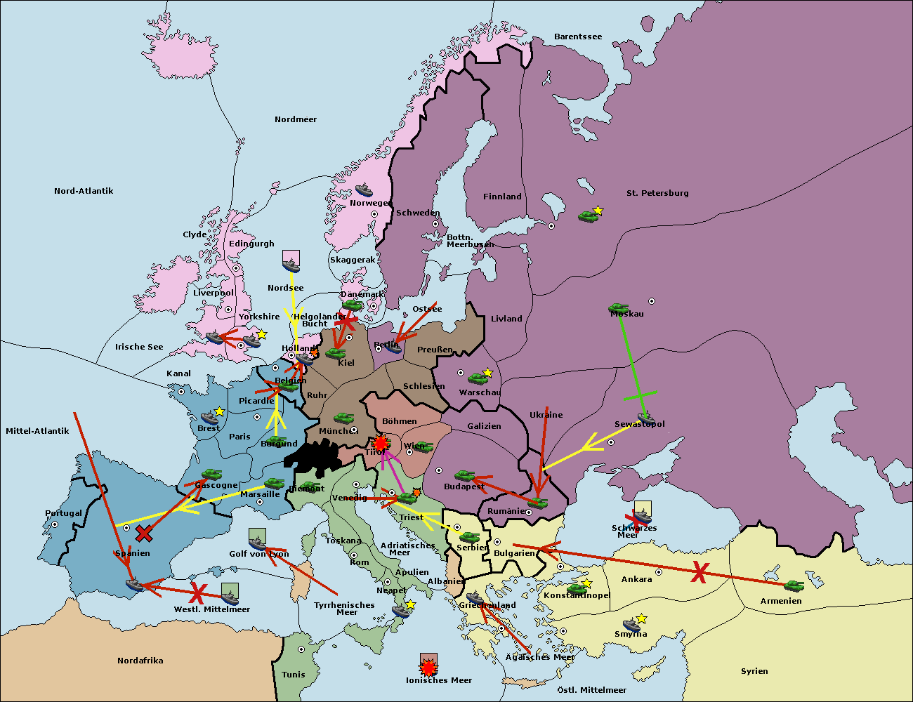 • Die Armee in Konstantinopel support hold nach Bulgarien.