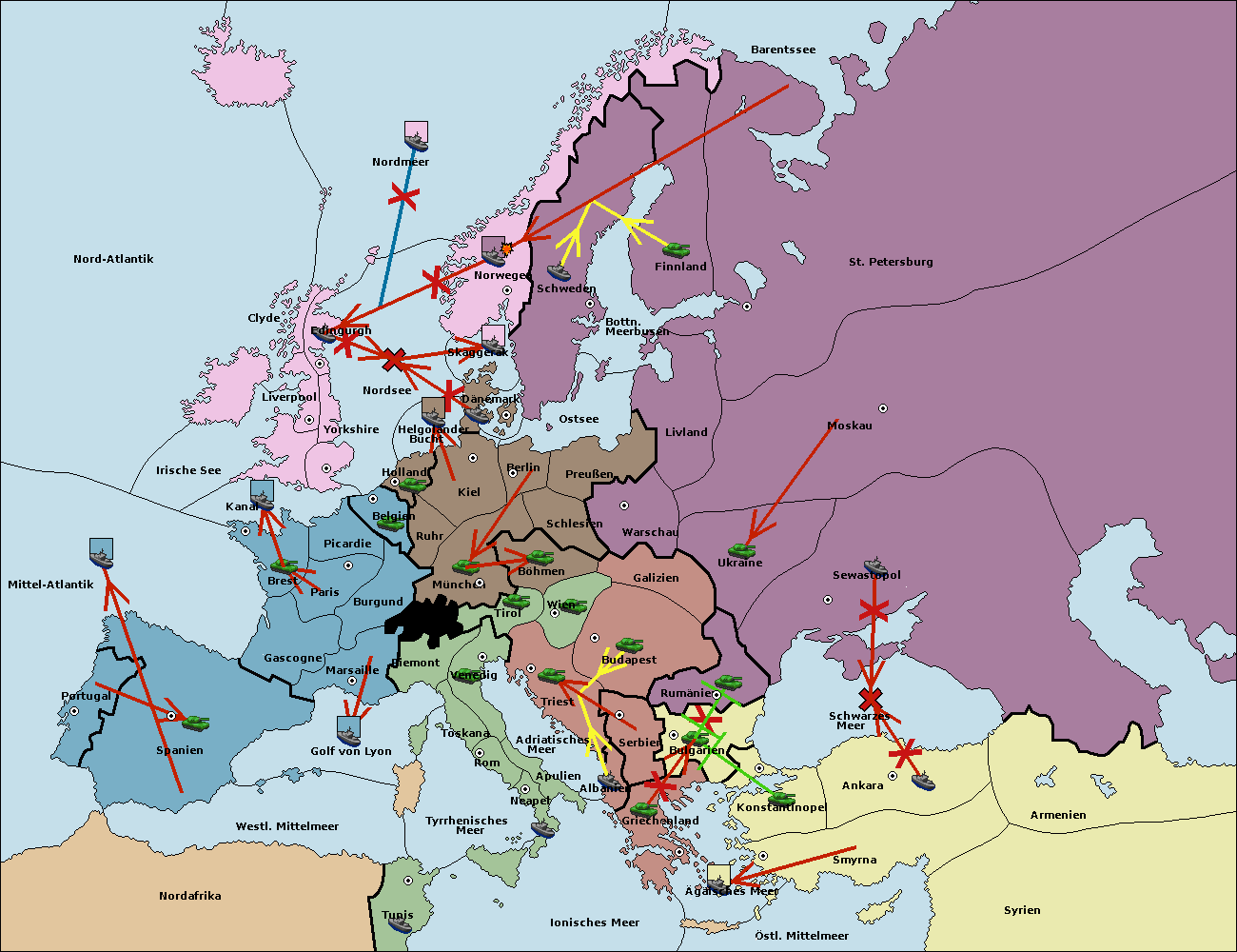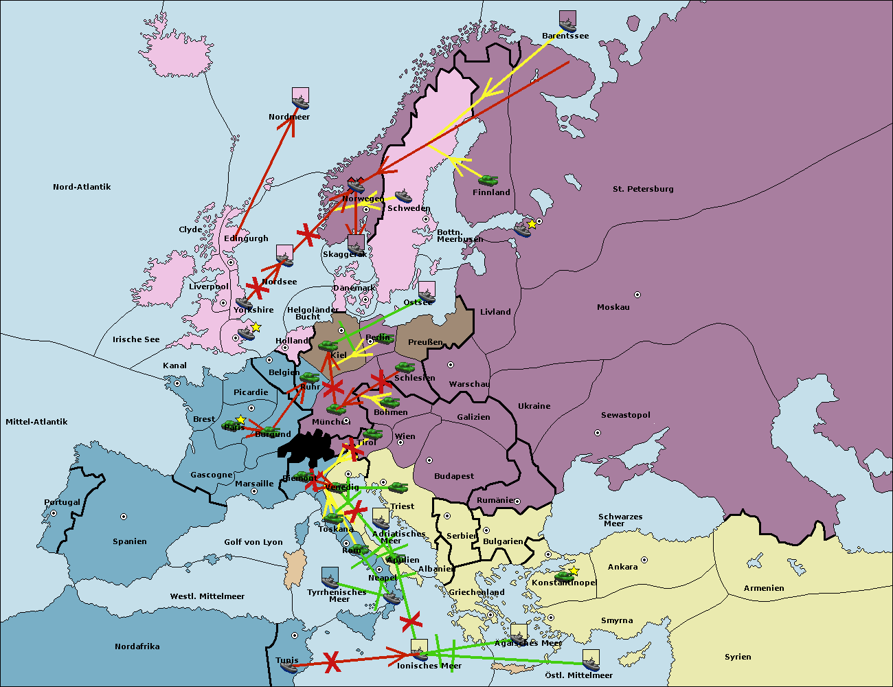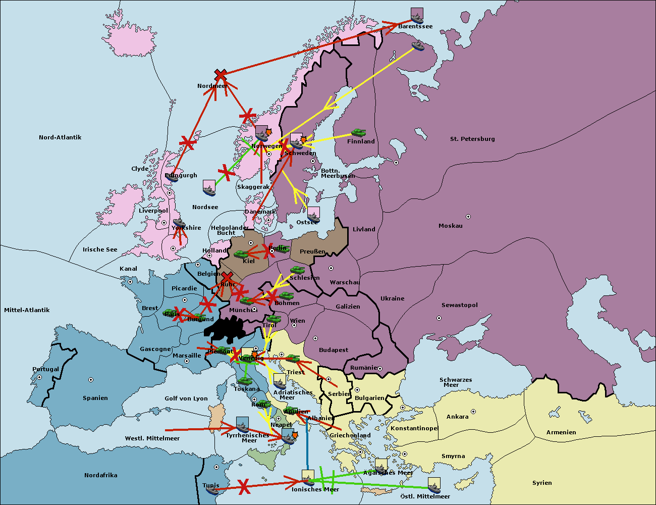 • Die Flotte in St. Petersburg (Nordküste) move nach Norwegen.
