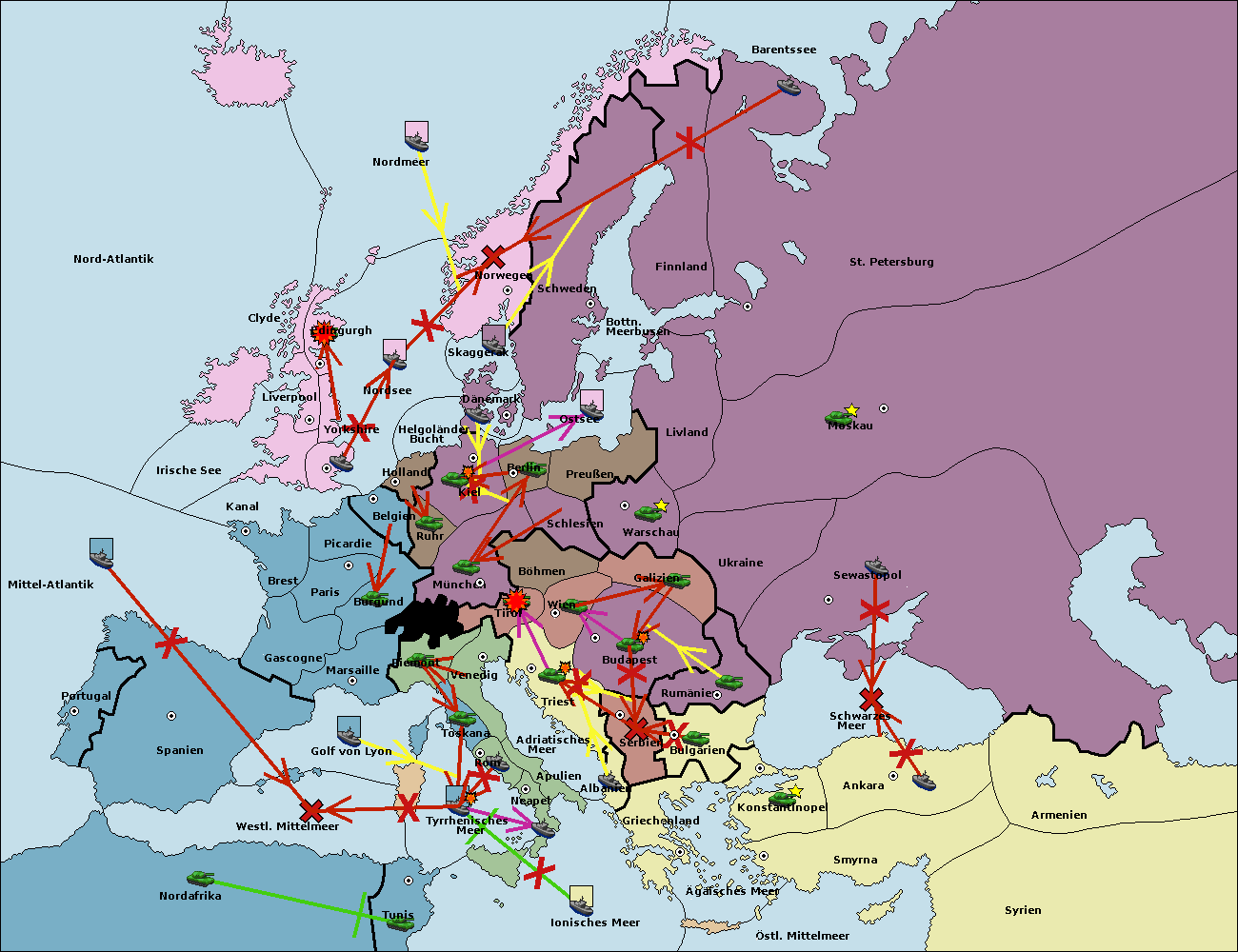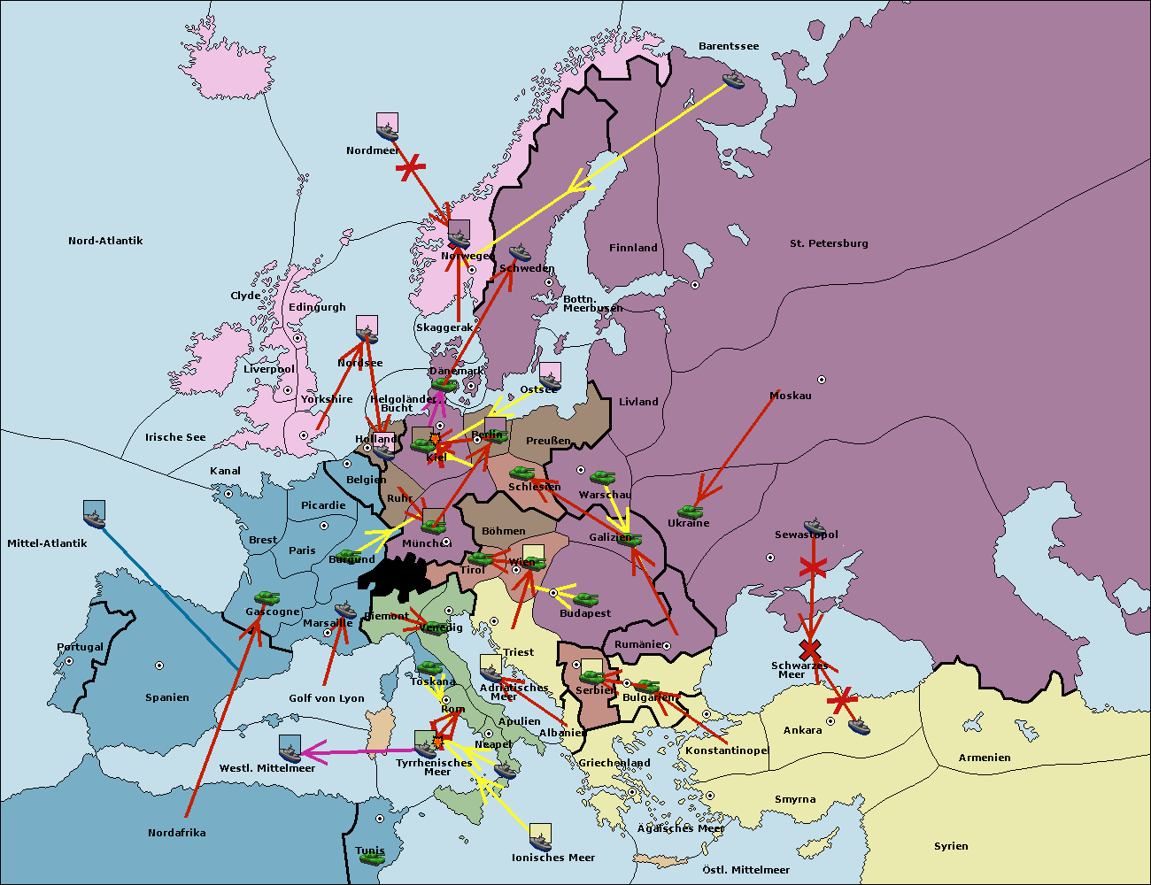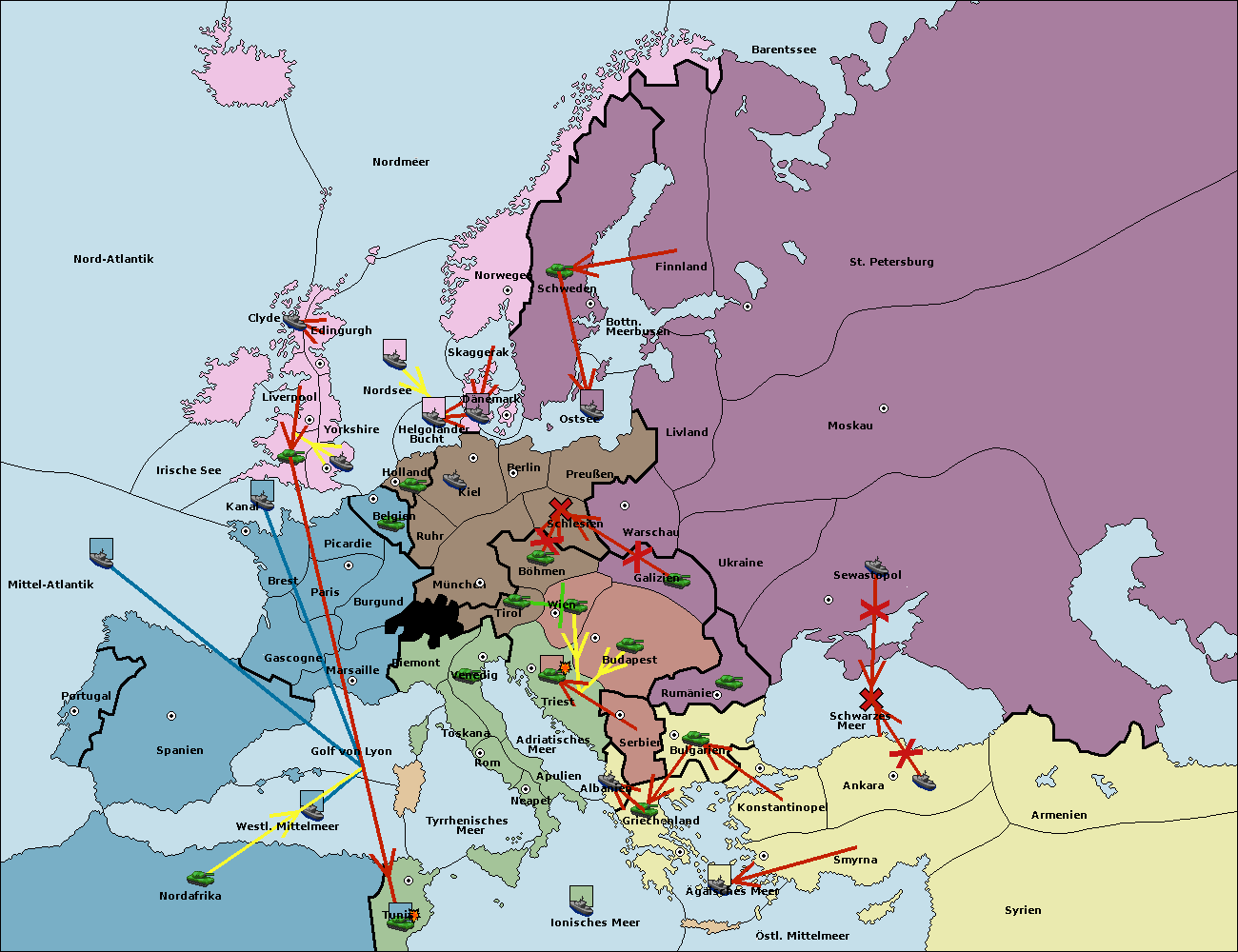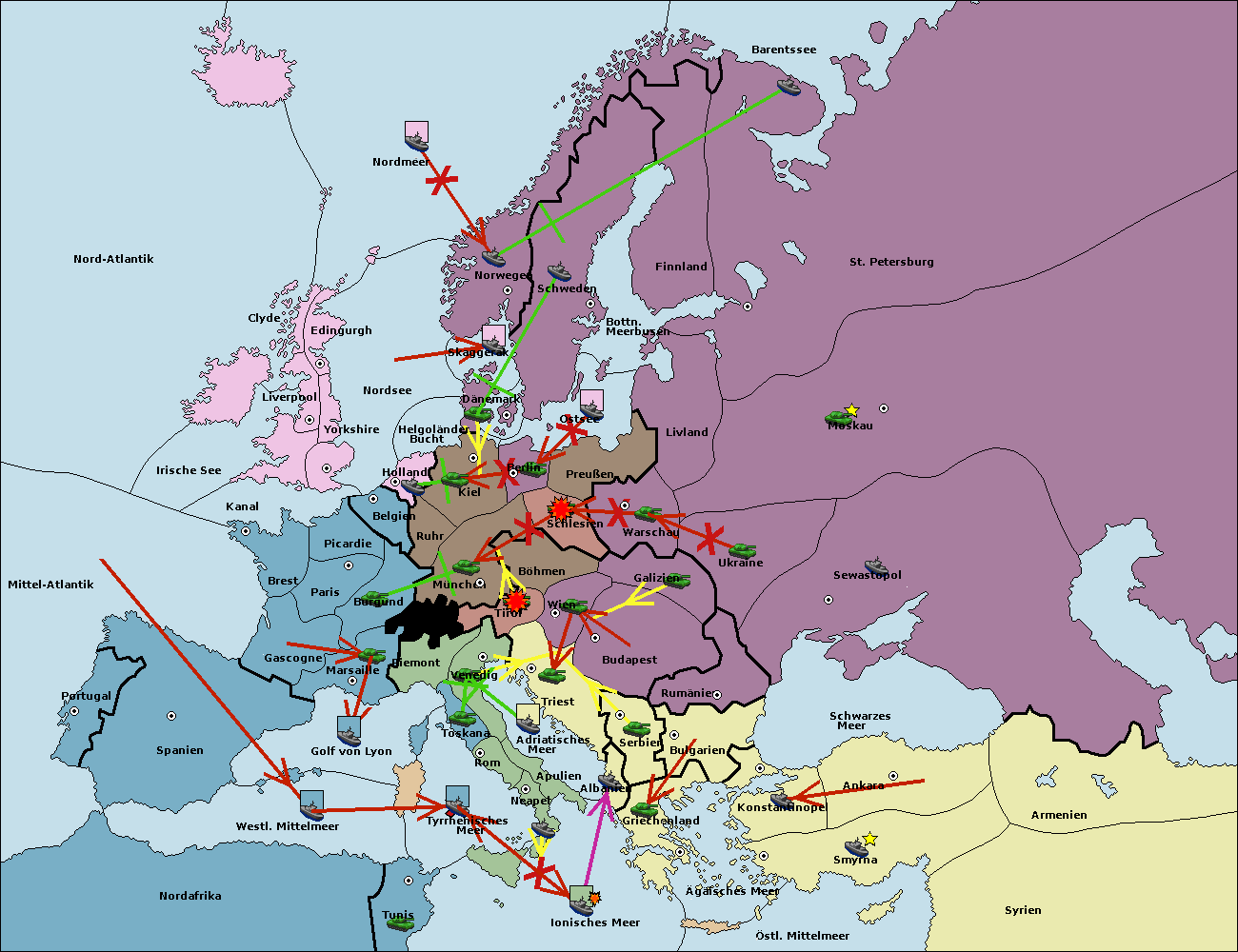 • Die Flotte in Dänemark support move nach Schweden von Ostsee. (gescheitert)