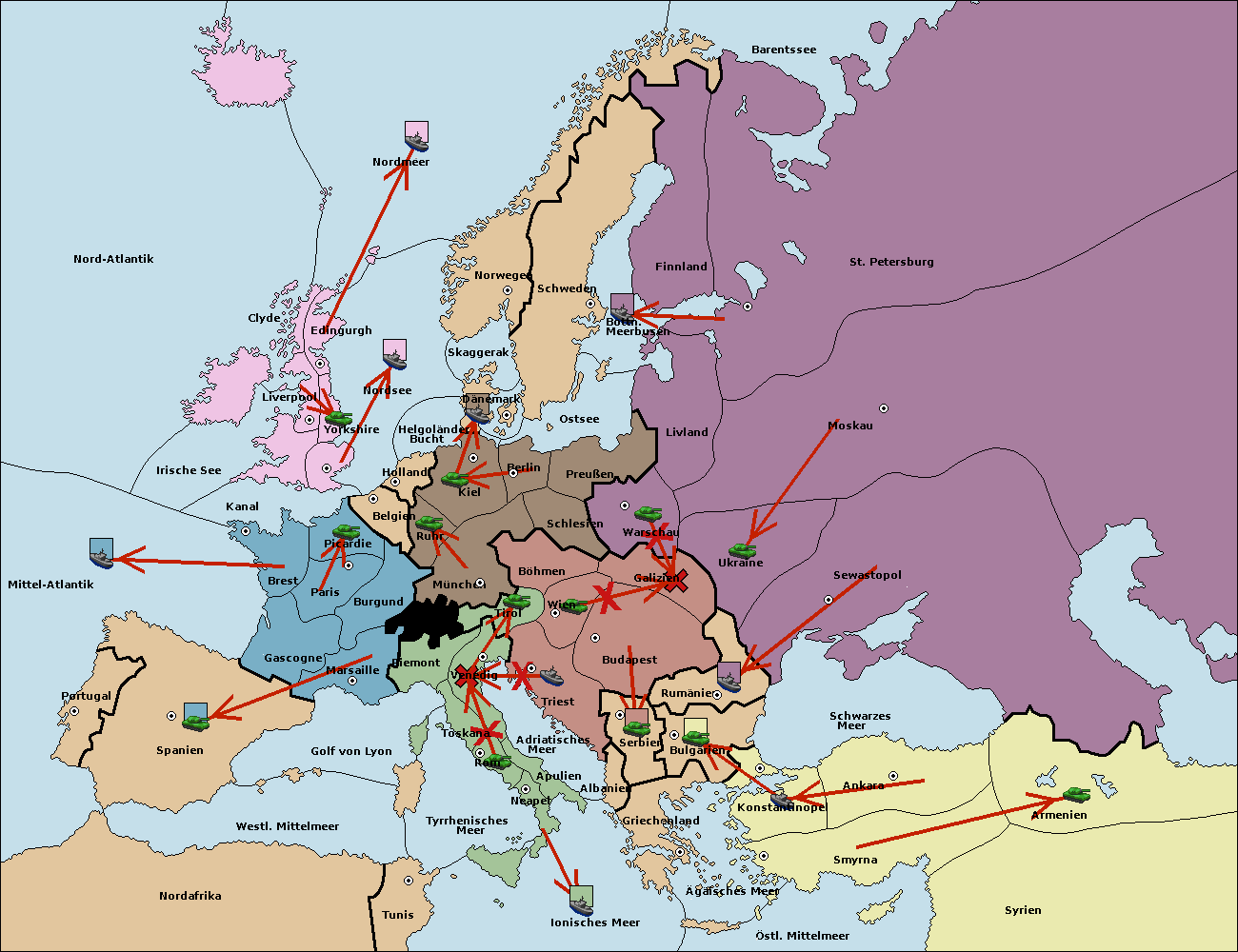 • Die Armee in Galizien move nach Wien. (gescheitert)