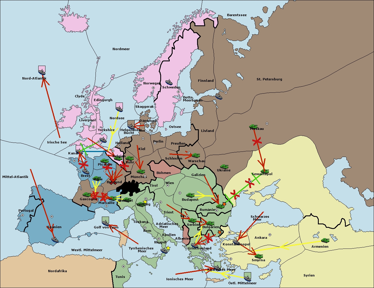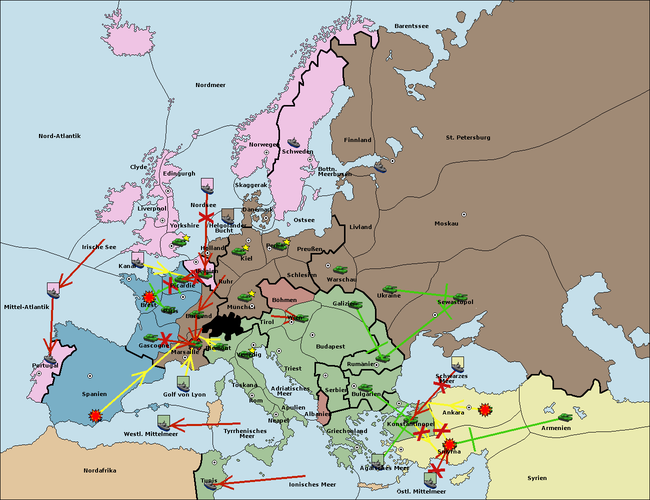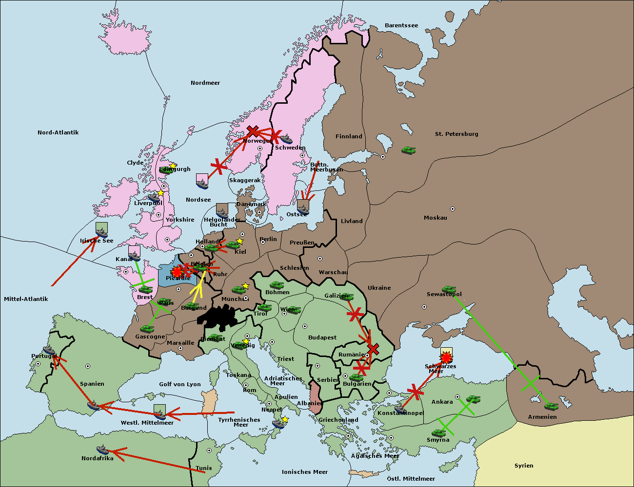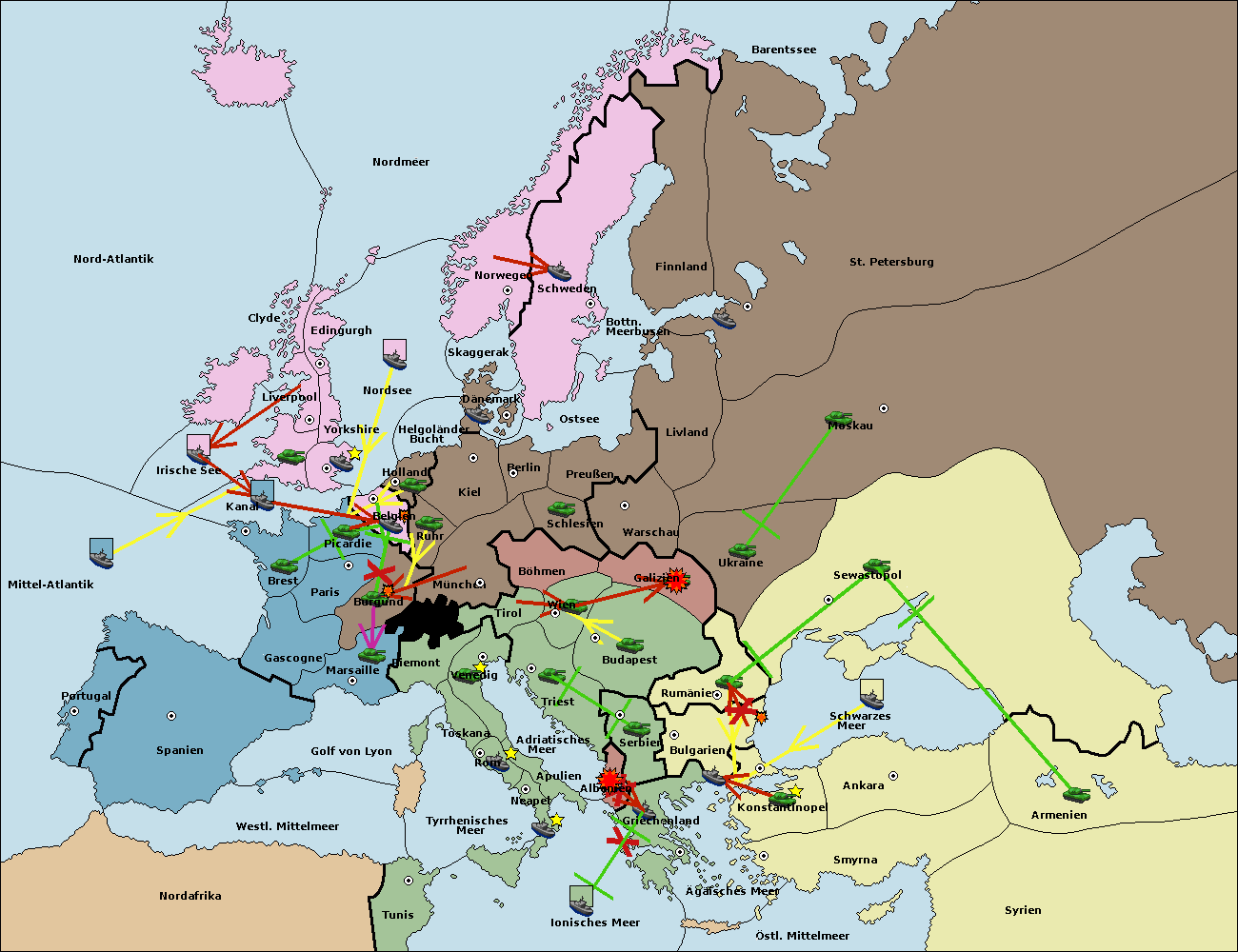 • Die Flotte in Bulgarien (Südküste) move nach Konstantinopel. (gescheitert)