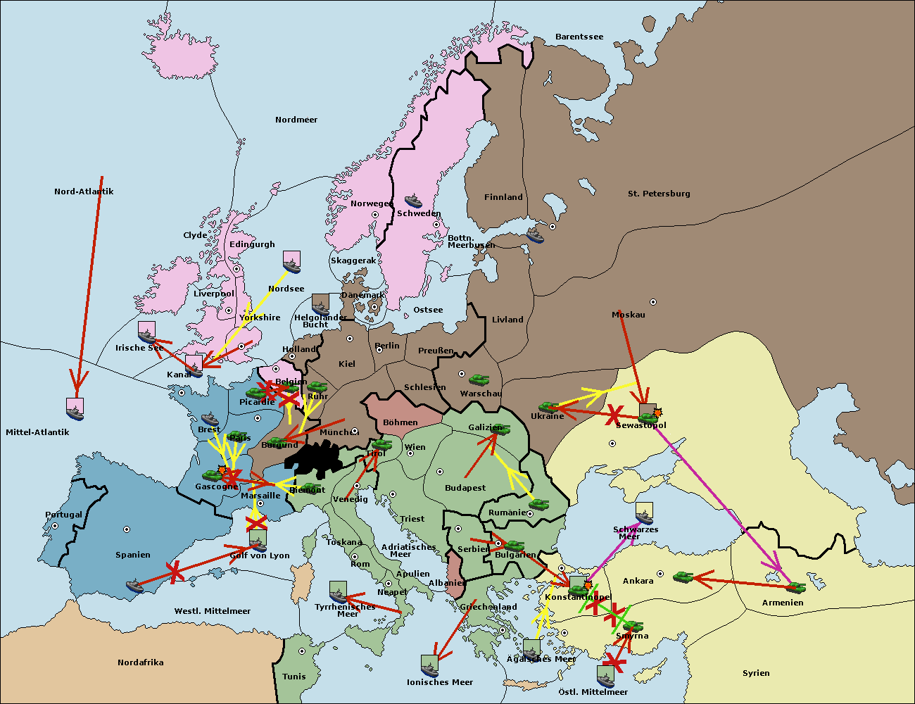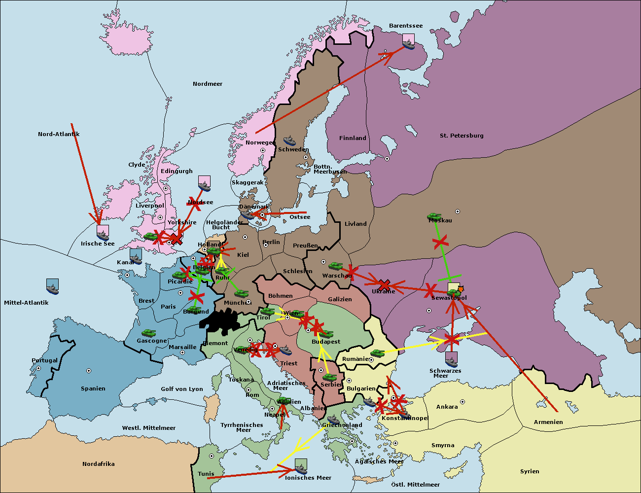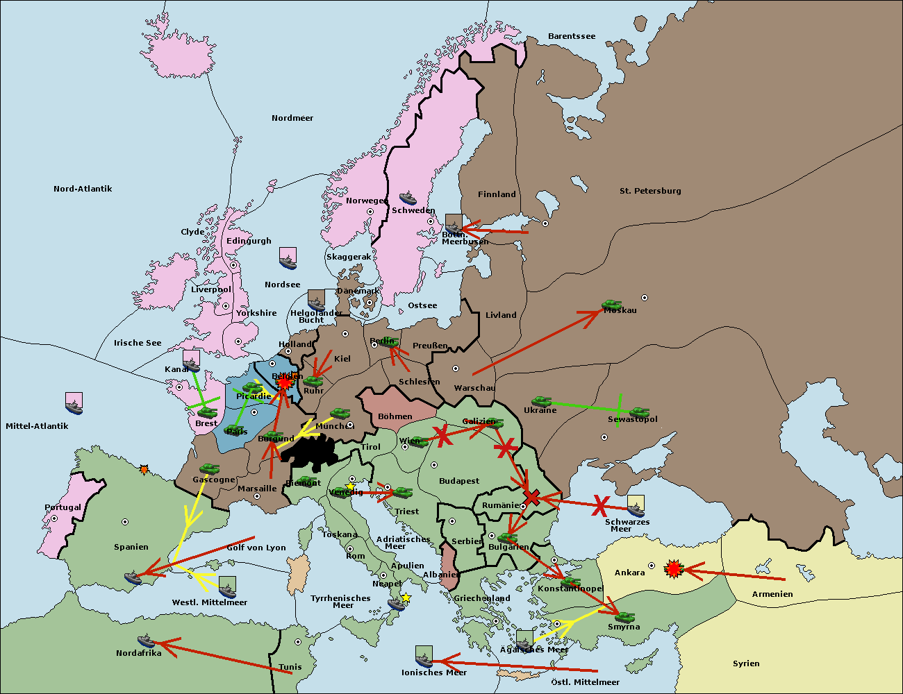 • Die Flotte in Bulgarien (Südküste) move nach Konstantinopel. (gescheitert)