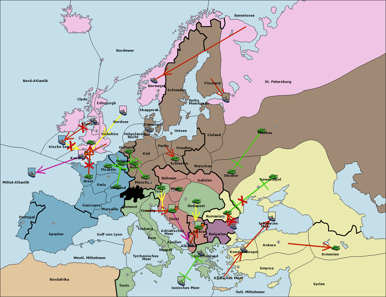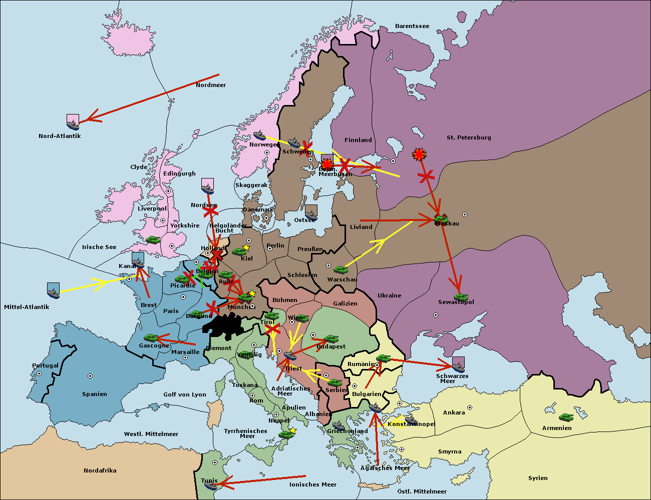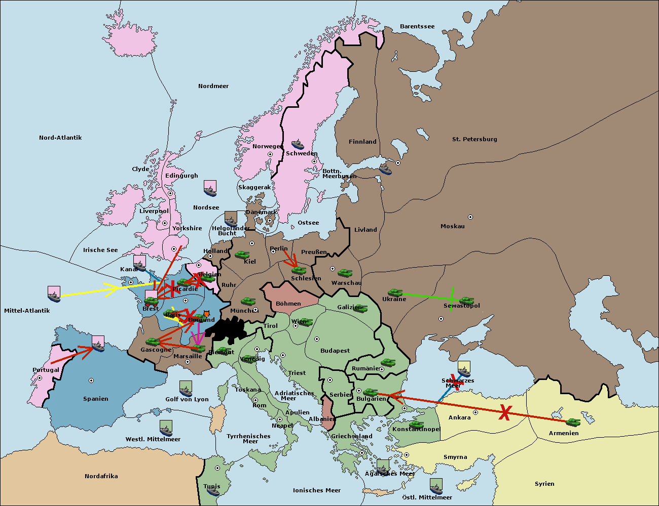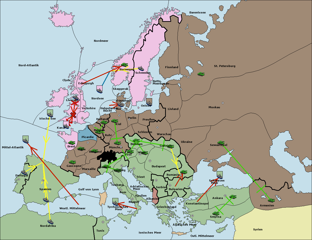 • Die Flotte in Bulgarien (Südküste) move nach Konstantinopel. (gescheitert)