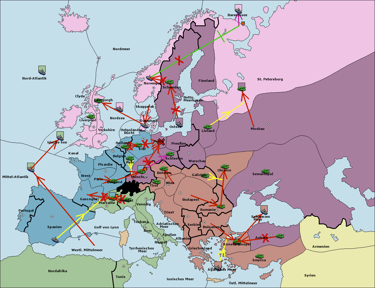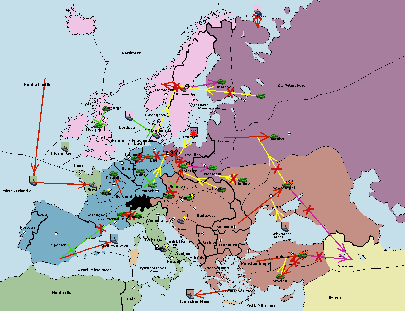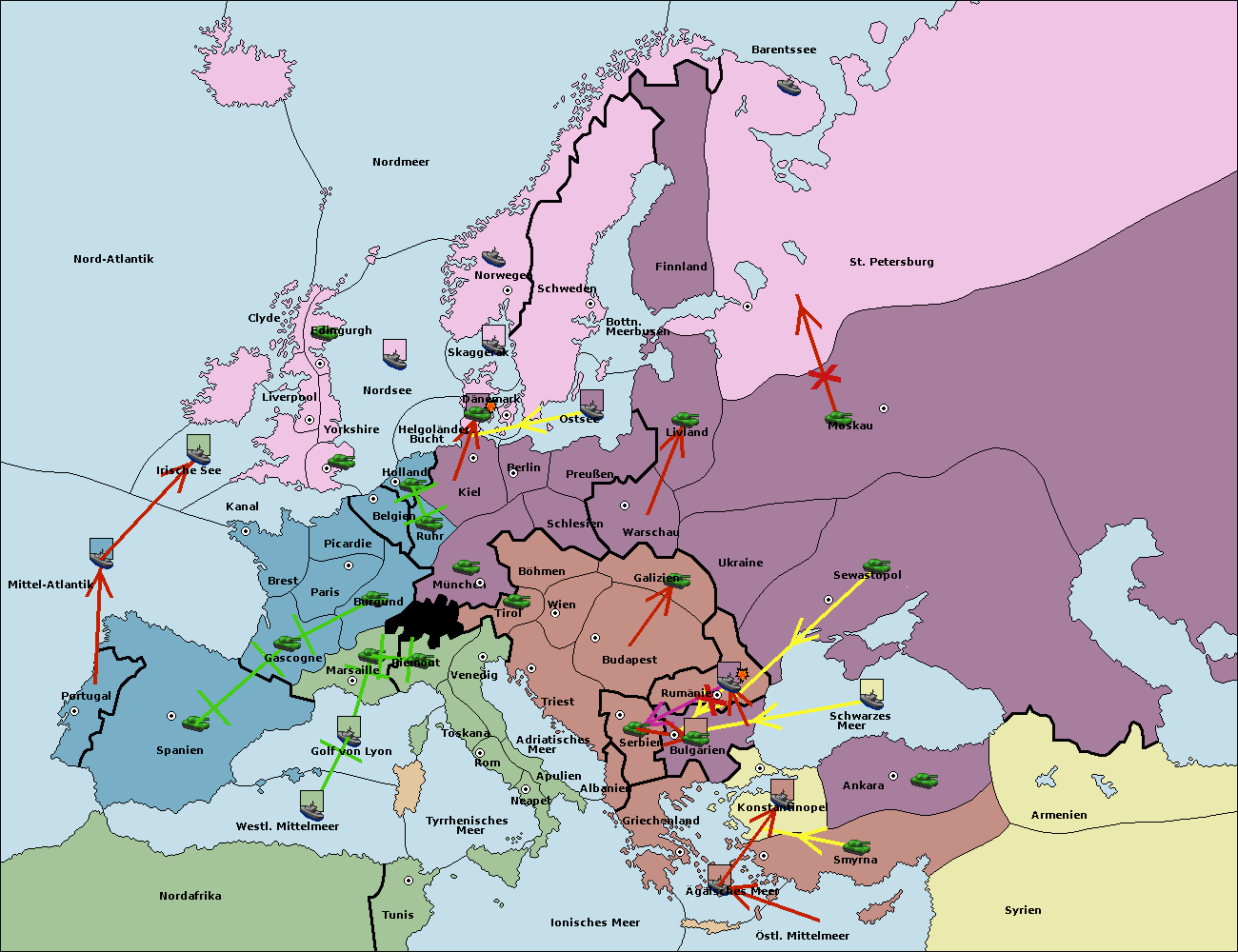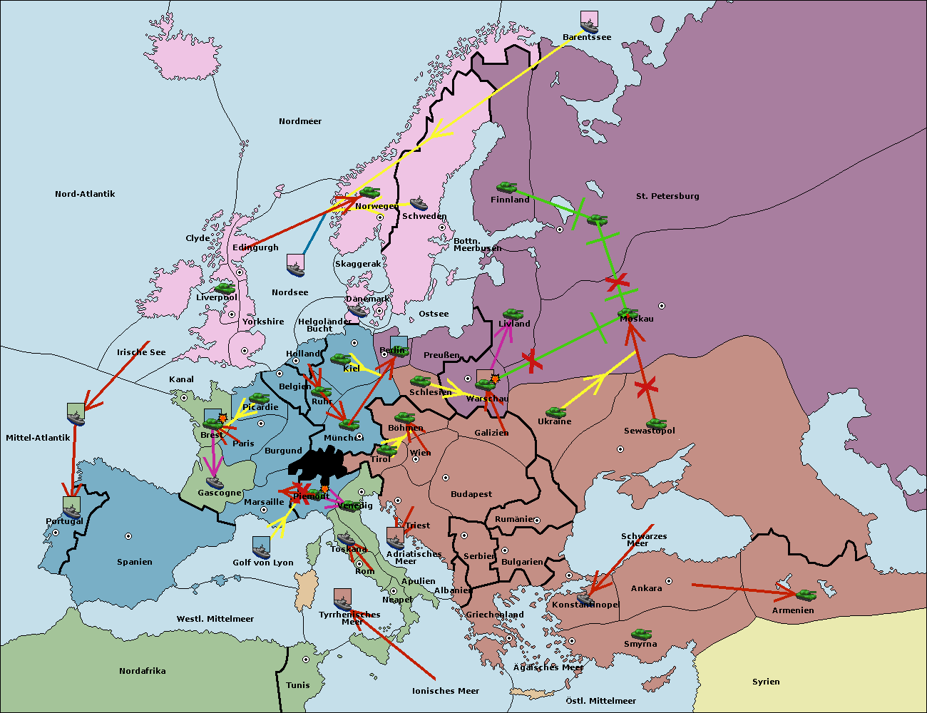 • Die Armee in Warschau support move nach Moskau von Sewastopol.