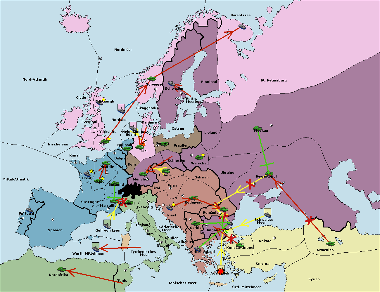 • Die Armee in Bulgarien wird zerstörtFlotte in Bulgarien gebaut.